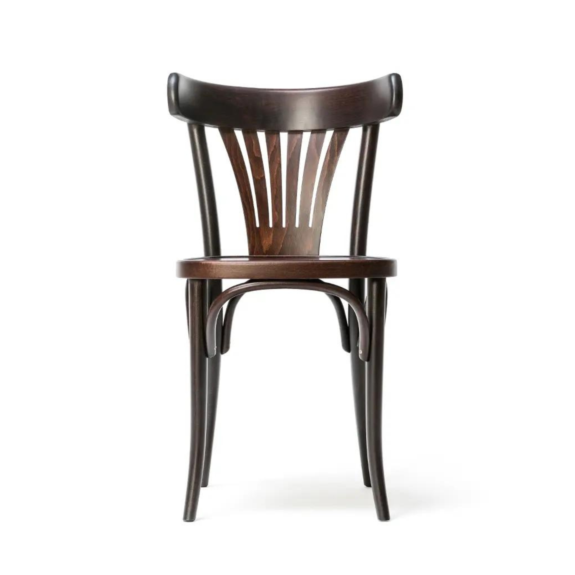 56 Chair by Ton, designed in 1885, is a timeless piece defined by its signature plywood fan backrest.