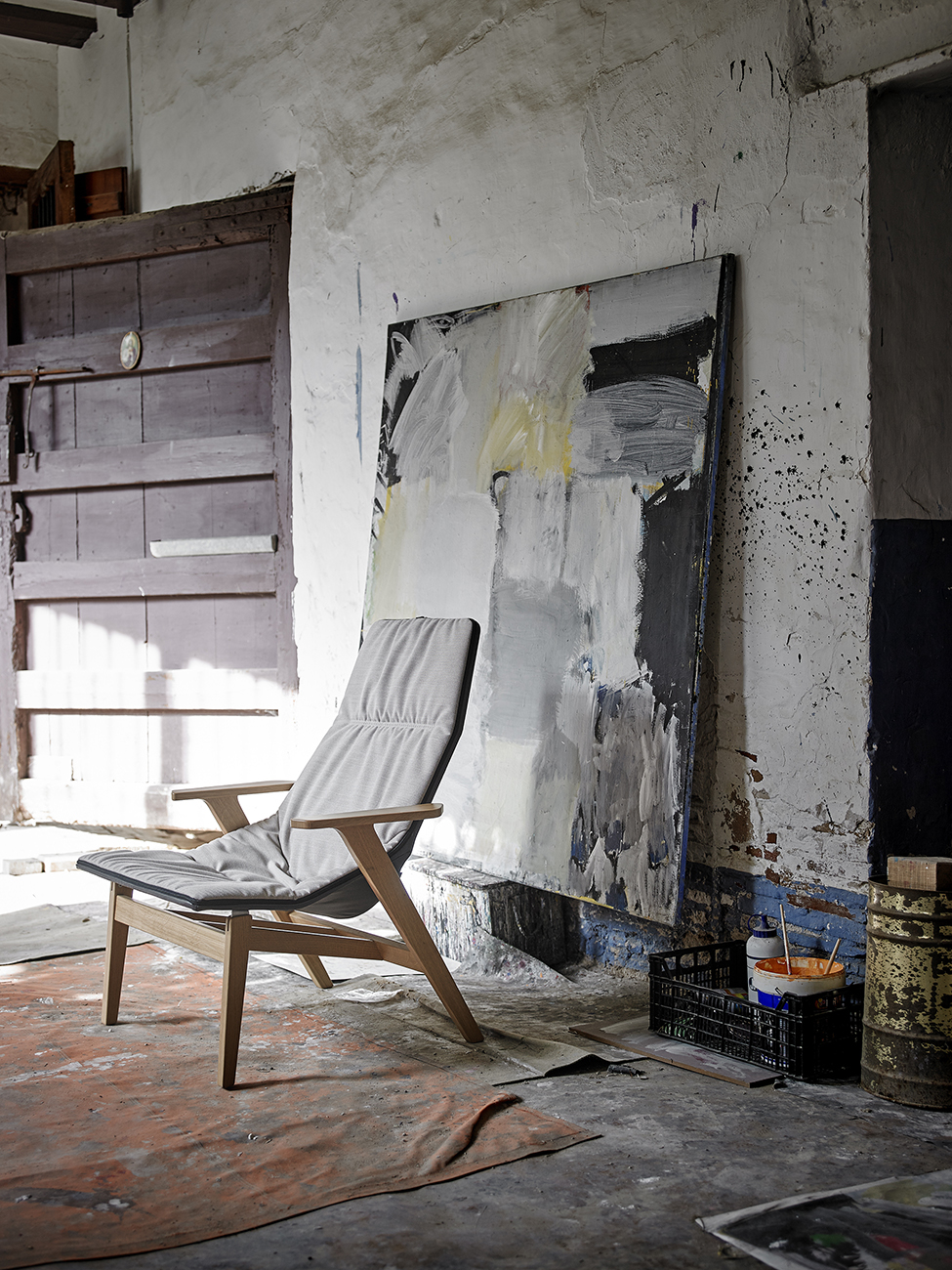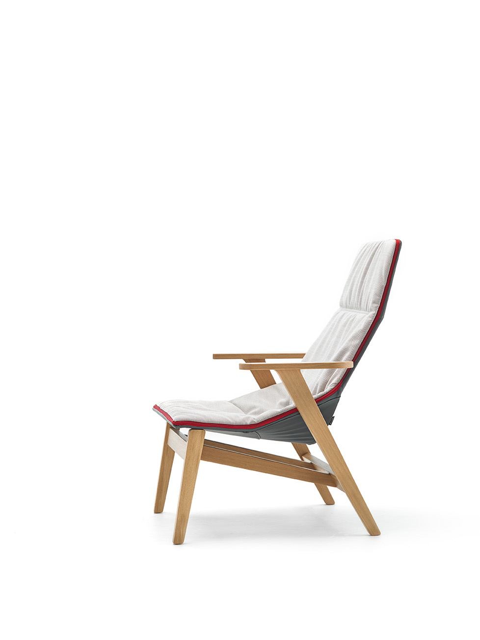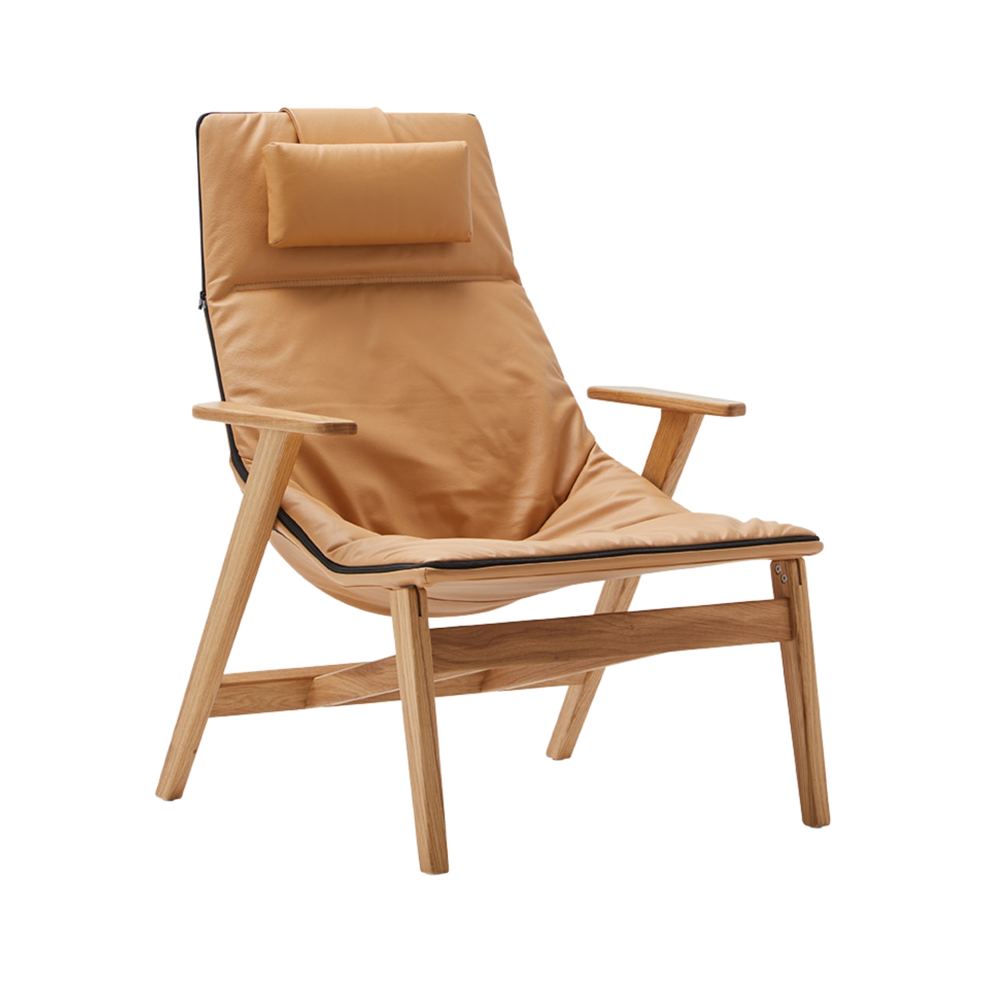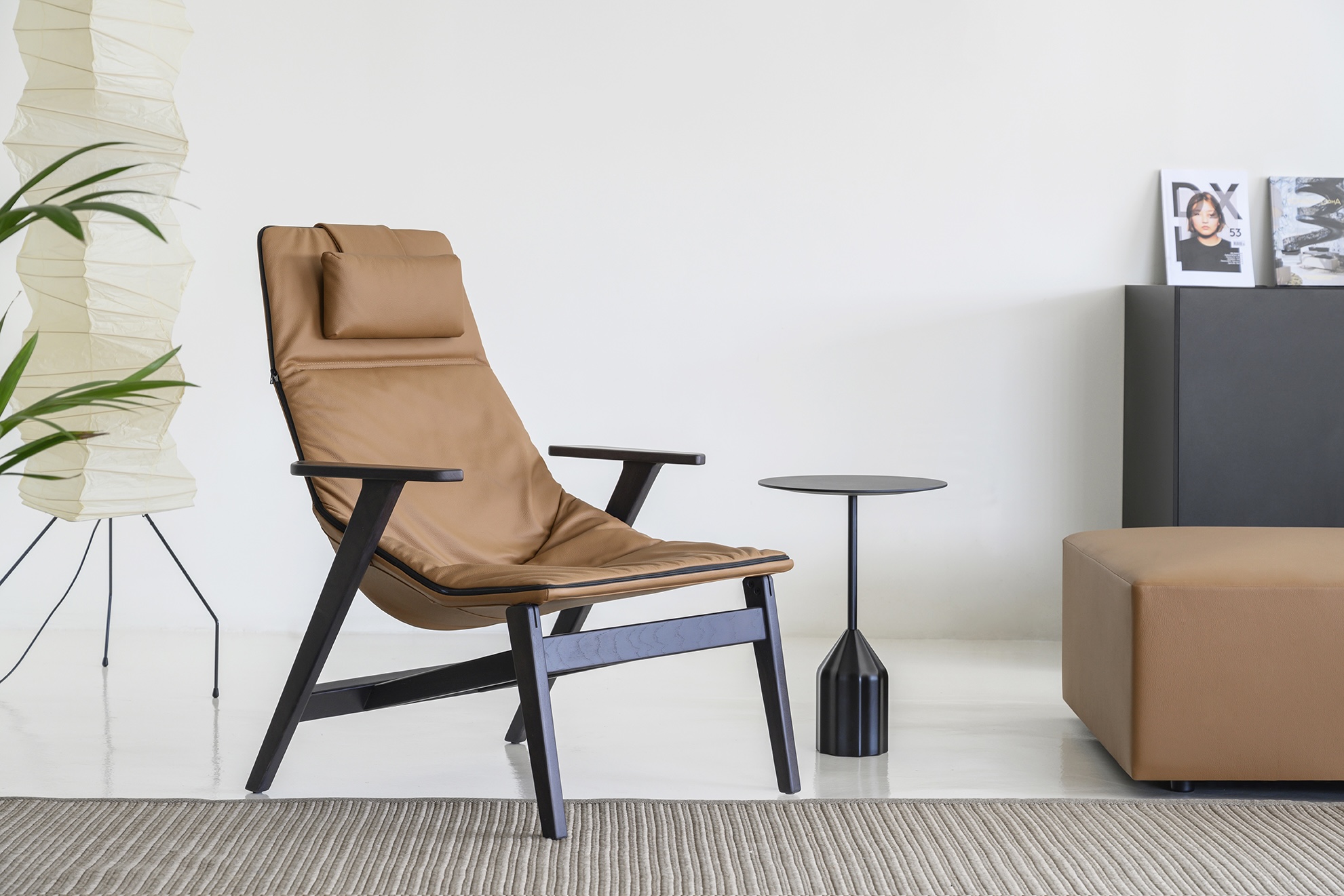 Ace Armchair by Viccarbe is crafted with a solid oak base and a steel-reinforced frame, upholstered in removable fabric or leather. Its sculptural form balances generous comfort with refined durability, inviting quiet moments of repose in residential or hospitality settings.