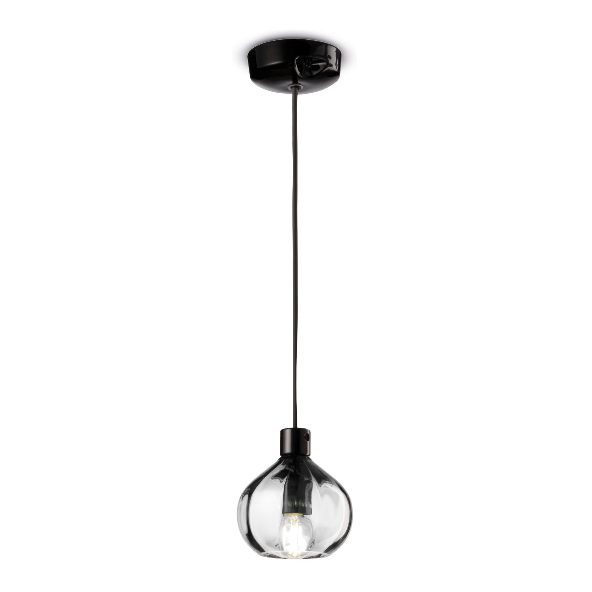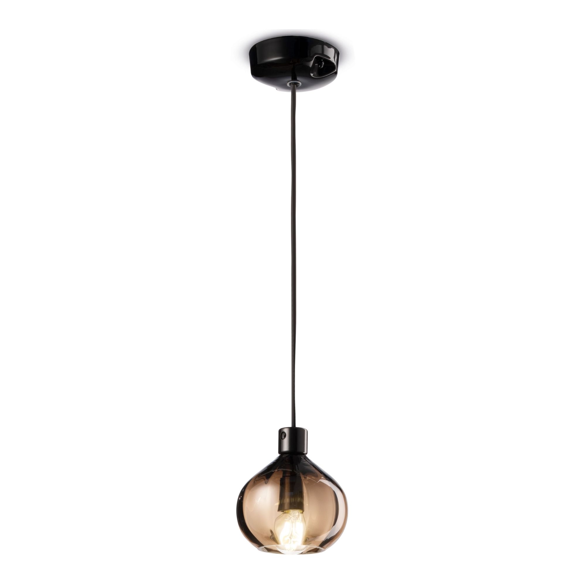 Afoxé Glass Pendant by Ferroluce draws inspiration from the rhythmic vitality of Afro-Brazilian percussion instruments. Its form captures movement and energy, with glossy surfaces and clean cuts creating a striking interplay between enclosure and light. The glass body reveals a luminous core that glows with clarity and refinement, enhancing spaces with both charm and character.