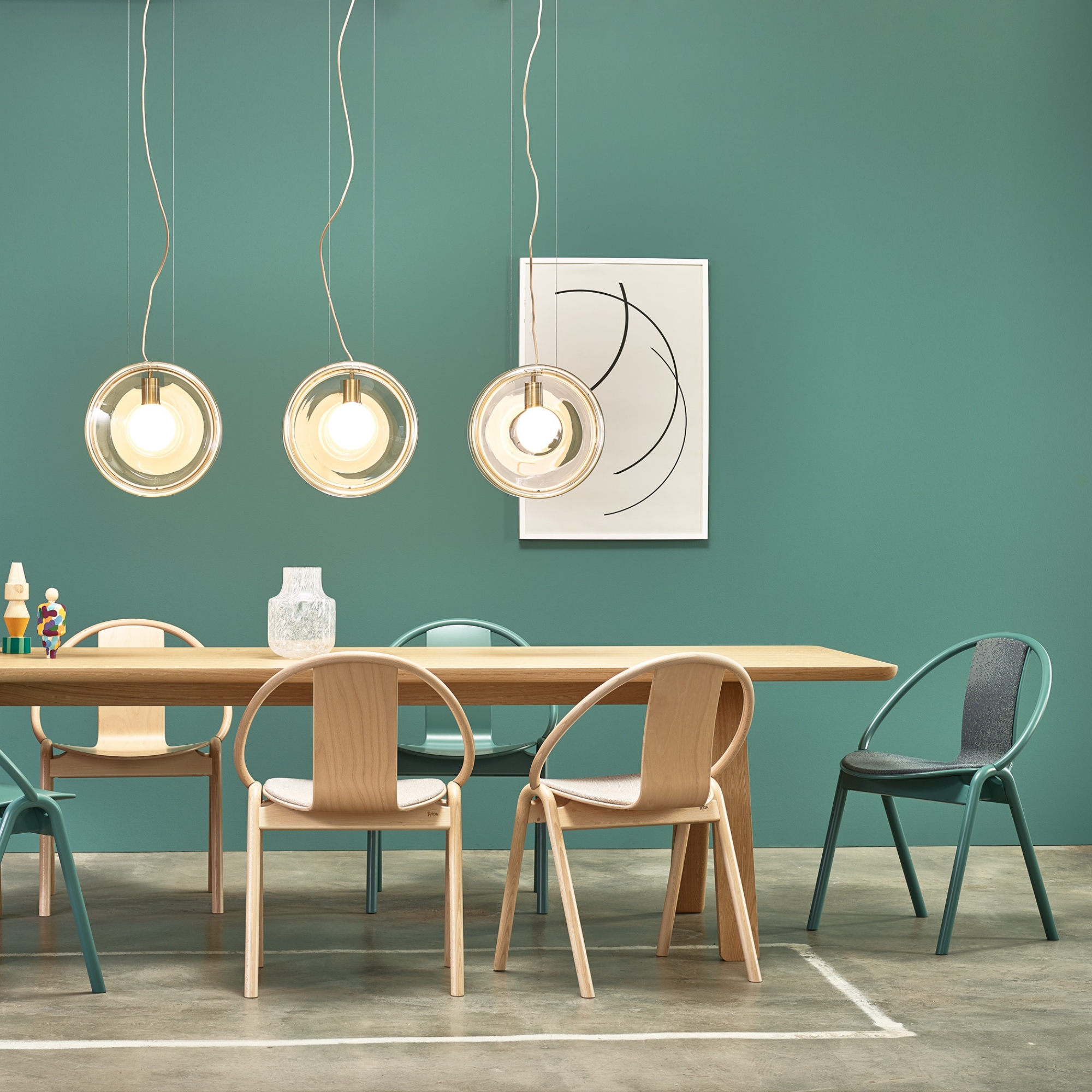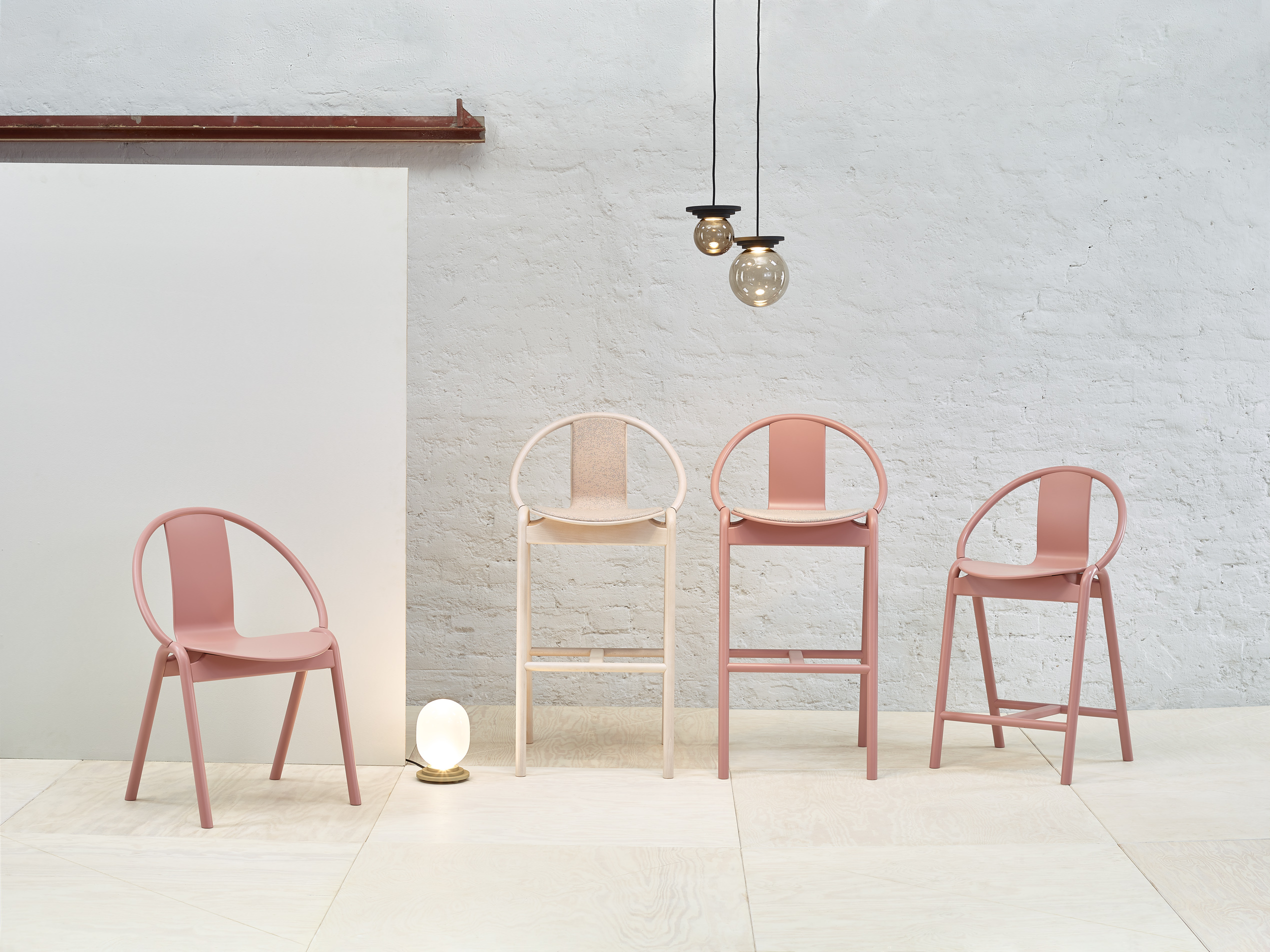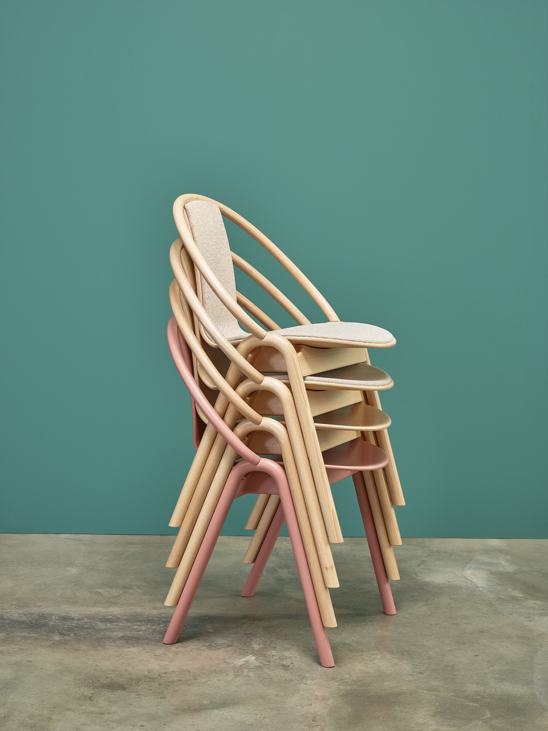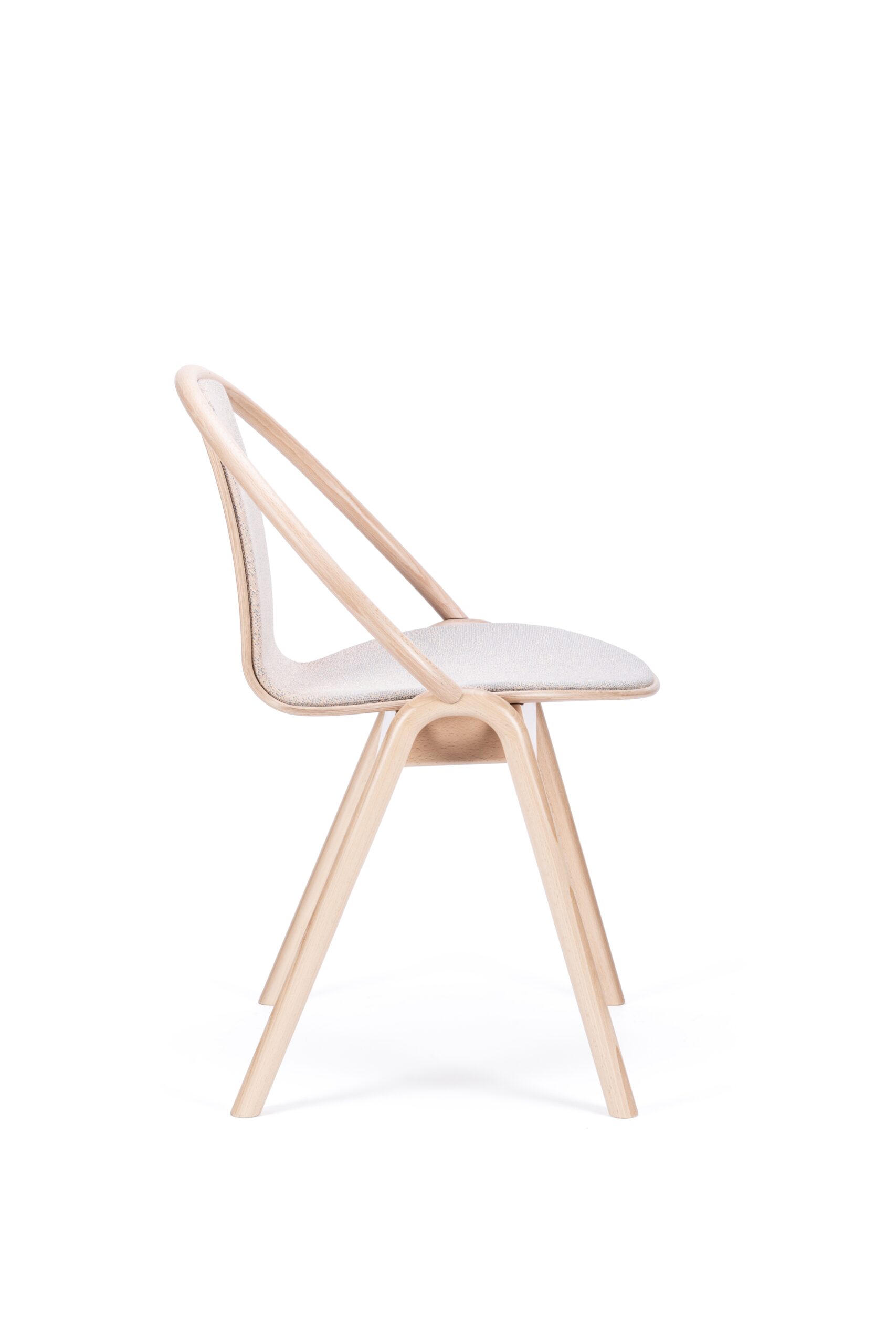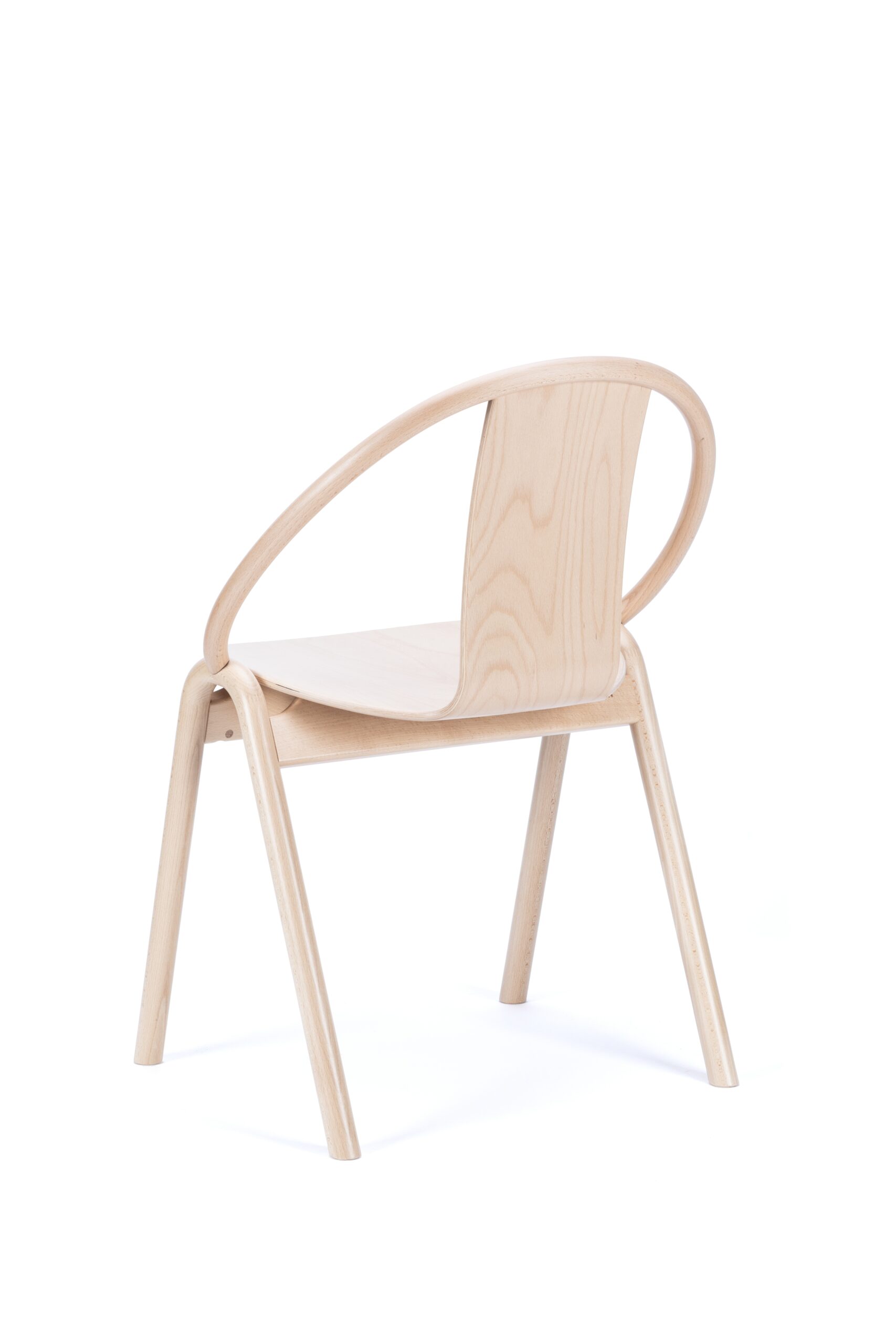 A generous arch crafted from solid beech wood embraces a visually light plywood seat with no visible joins.