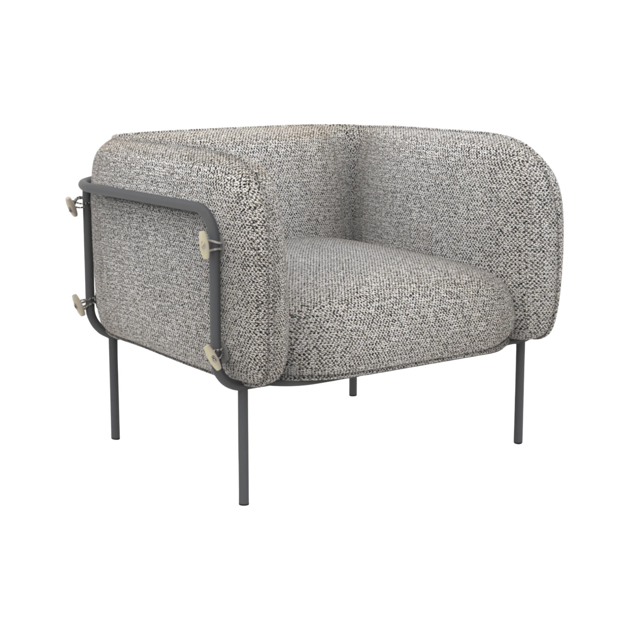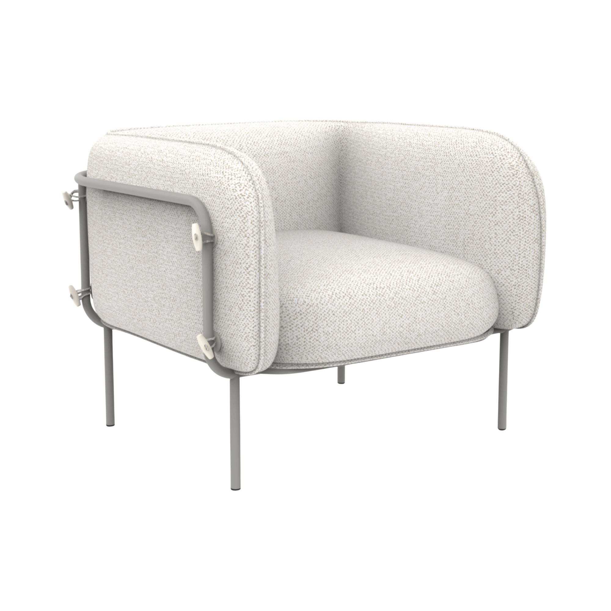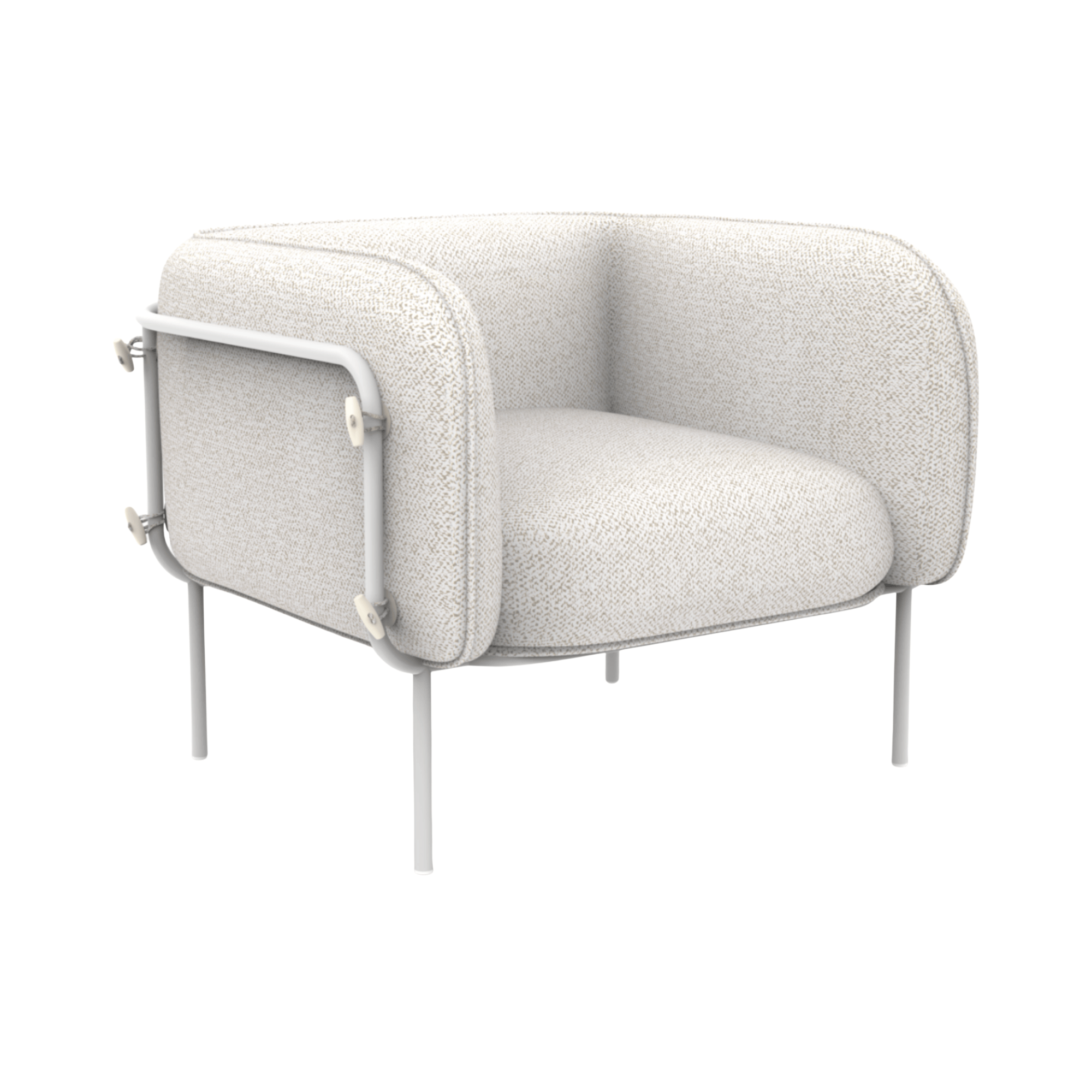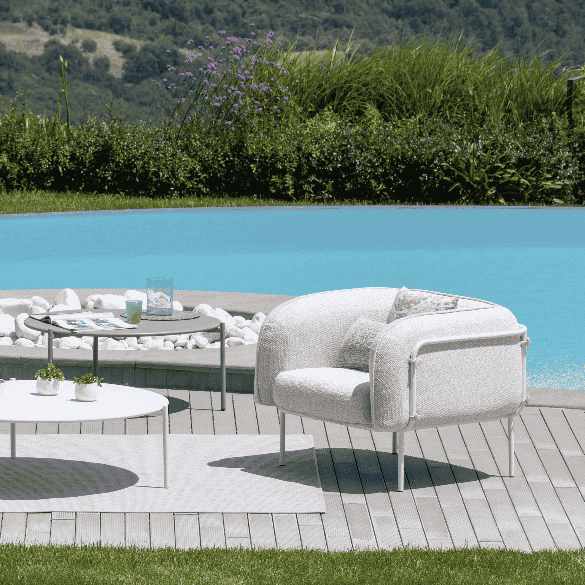 Alamari Lounge Chair by Vermobil merges contemporary comfort with timeless craftsmanship. Wrapped in soft, removable cushions, its rounded silhouette rests within a refined metal frame, creating a dialogue between structure and softness. Perfect for modern terraces, lounges, or hospitality settings, Alamari offers inviting relaxation and a sculptural design presence that defines outdoor sophistication.