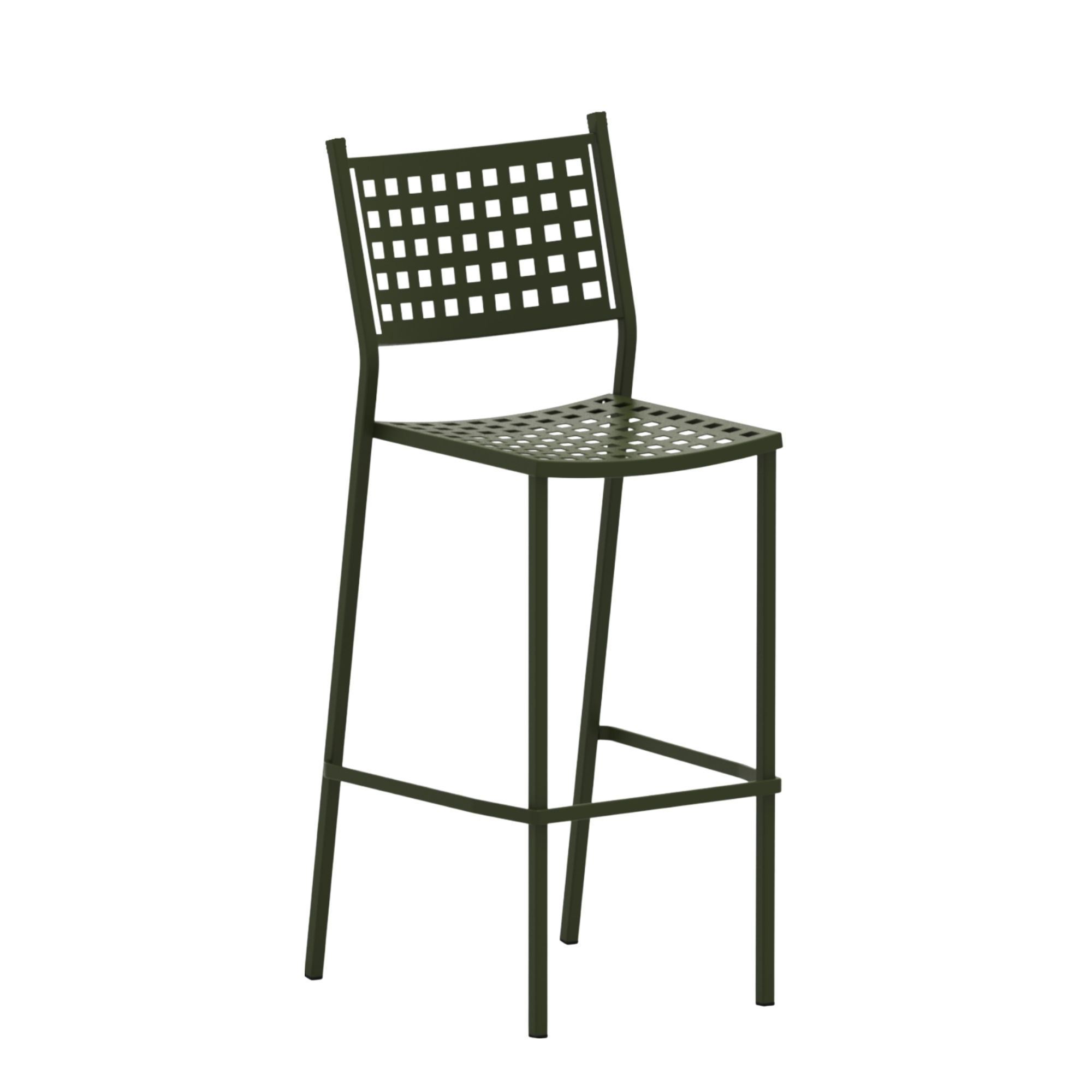 Alice Barstool by Vermobil brings a contemporary twist to classic outdoor seating. With its signature perforated square seat and backrest, this stool combines elegance with practicality. Built from powdercoated metal for superior durability, it’s ideal for bars, terraces, and high dining settings.