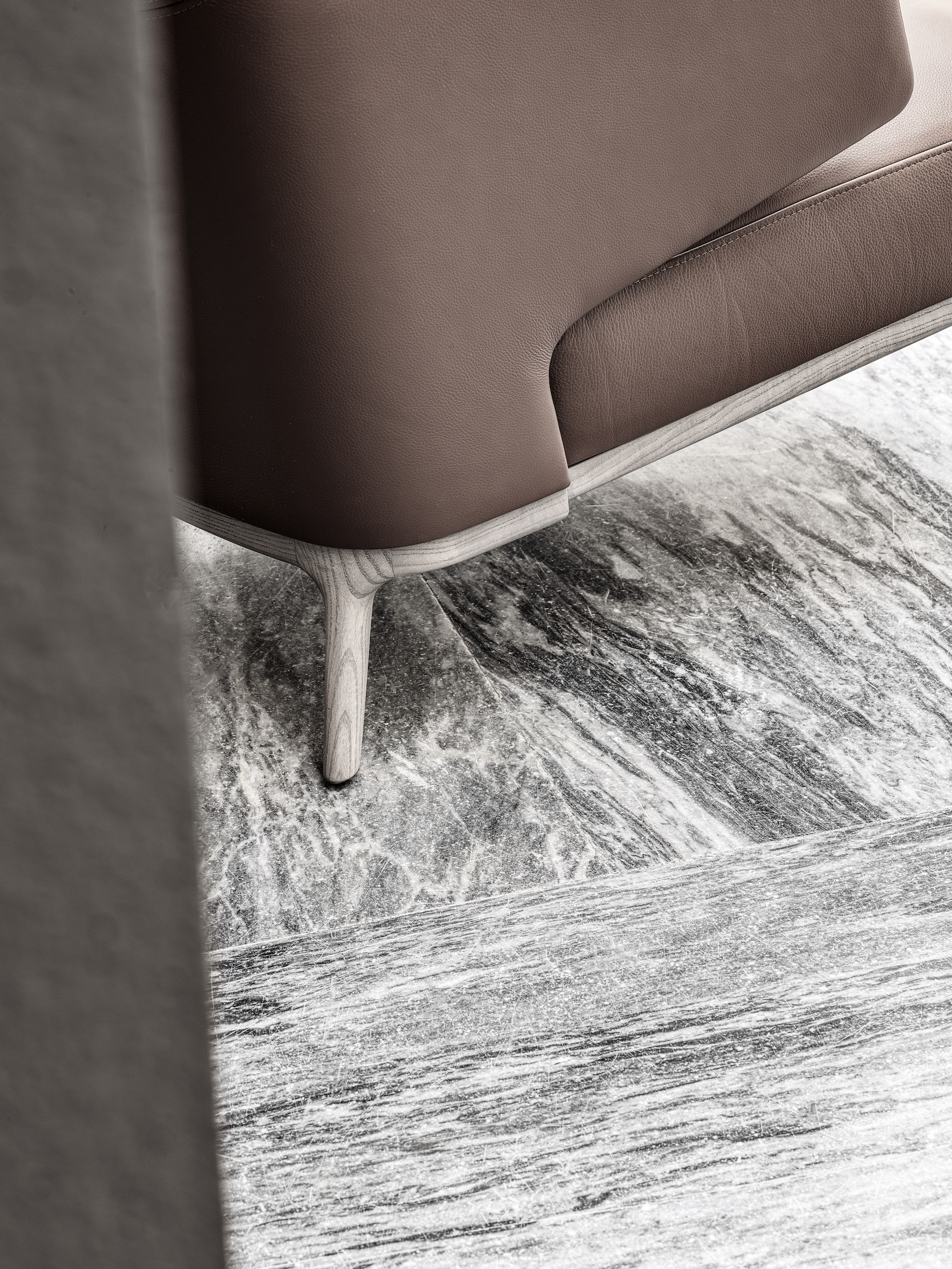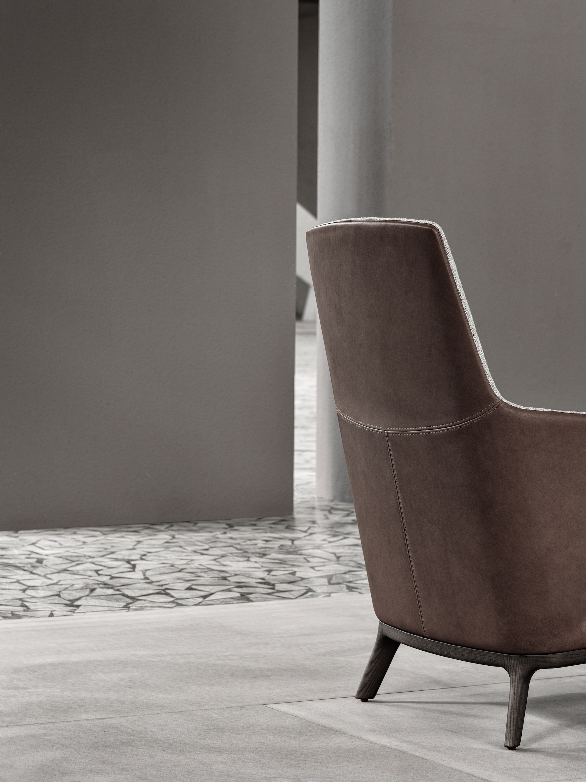 Amanda Armchair by Frigerio is contemporary design with a vintage spirit, the suspended enveloping armrest extend directly from the backrest, to ensure the right balance between aesthetics and maximum comfort. The Amanda Armchair and wider Amanda collection’s meticulous upholstery and solid wood base are a monument to Frigerio’s celebration of high quality materials and 85+ years of expert craftsmanship. in particular, the workmanship of the backrest covering with its stitching at mid-height truly highlights the sartorial attention of Frigerio, and reaches its maximum expression in the contrast upholstery or full leather with tone-on-tone stitching.