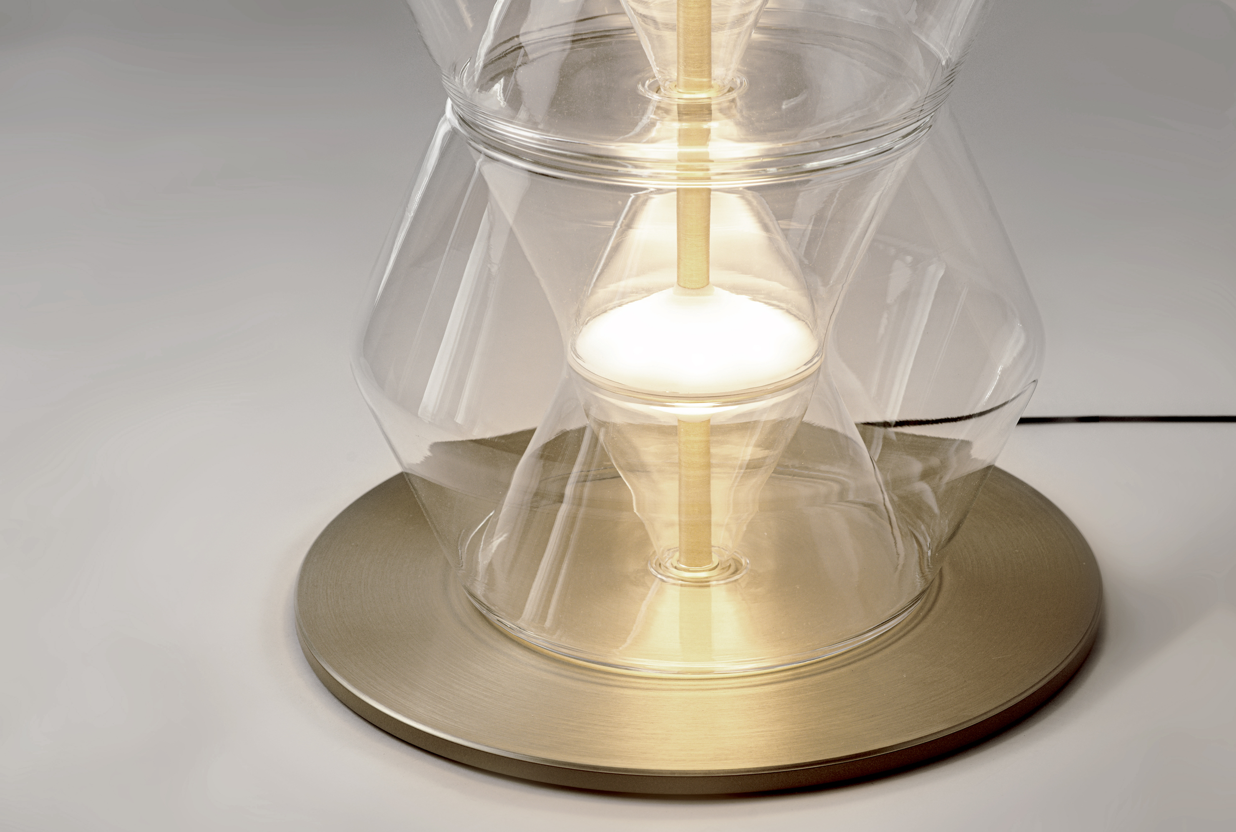 Interpreted through the medium of glass, the Argyle collection reveals interlocking diamond forms, composed in colourless or subtly coloured layers.