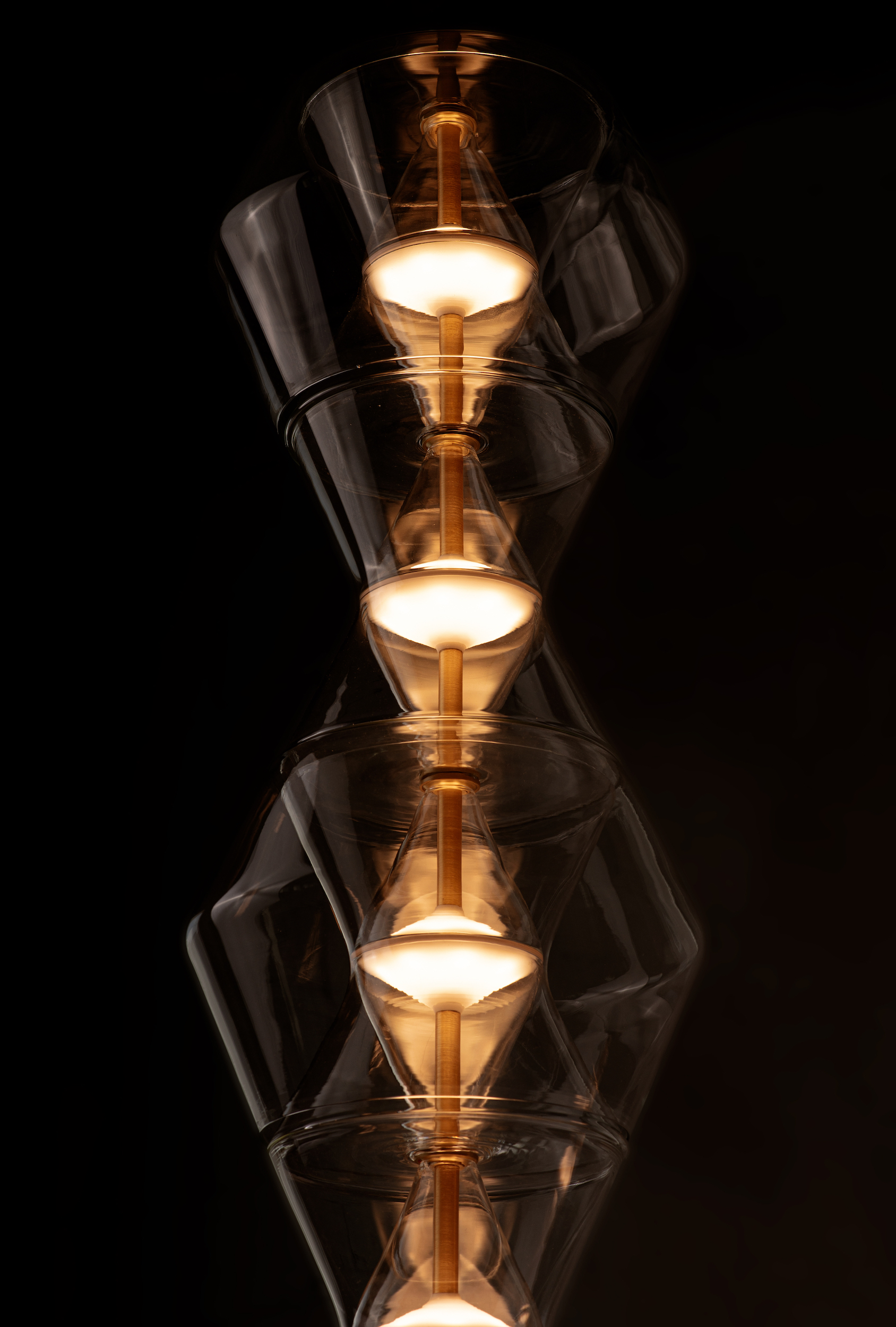 Also presenting as a pendant and table lamp, Argyle spans a multitude of applications; singular gem-like units hanging above tables, tessellating screens forming a tapestry of light across open spaces, and grand chandelier compositions in luxurious foyers.