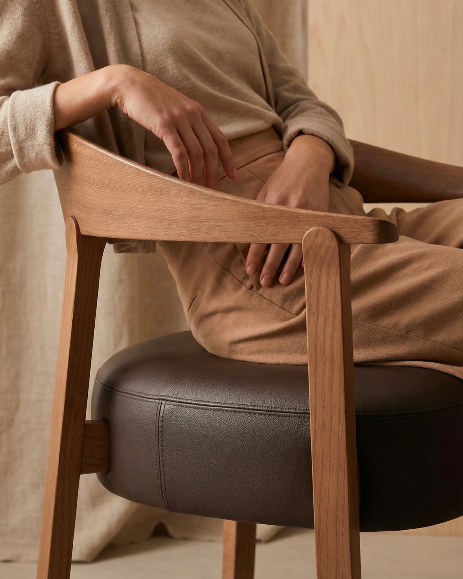 Aurea Chair by Cizeta is an armchair that goes beyond pure functionality, becoming an integral part of a refined atmosphere. Designed for hospitality and convivial settings, it features a wide, handcrafted backrest that enhances the natural grain of solid ash wood, transforming each piece into a story of texture and sophisticated detail. The design balances comfort and elegance, offering a welcoming yet distinctive presence in both residential and contract interiors.