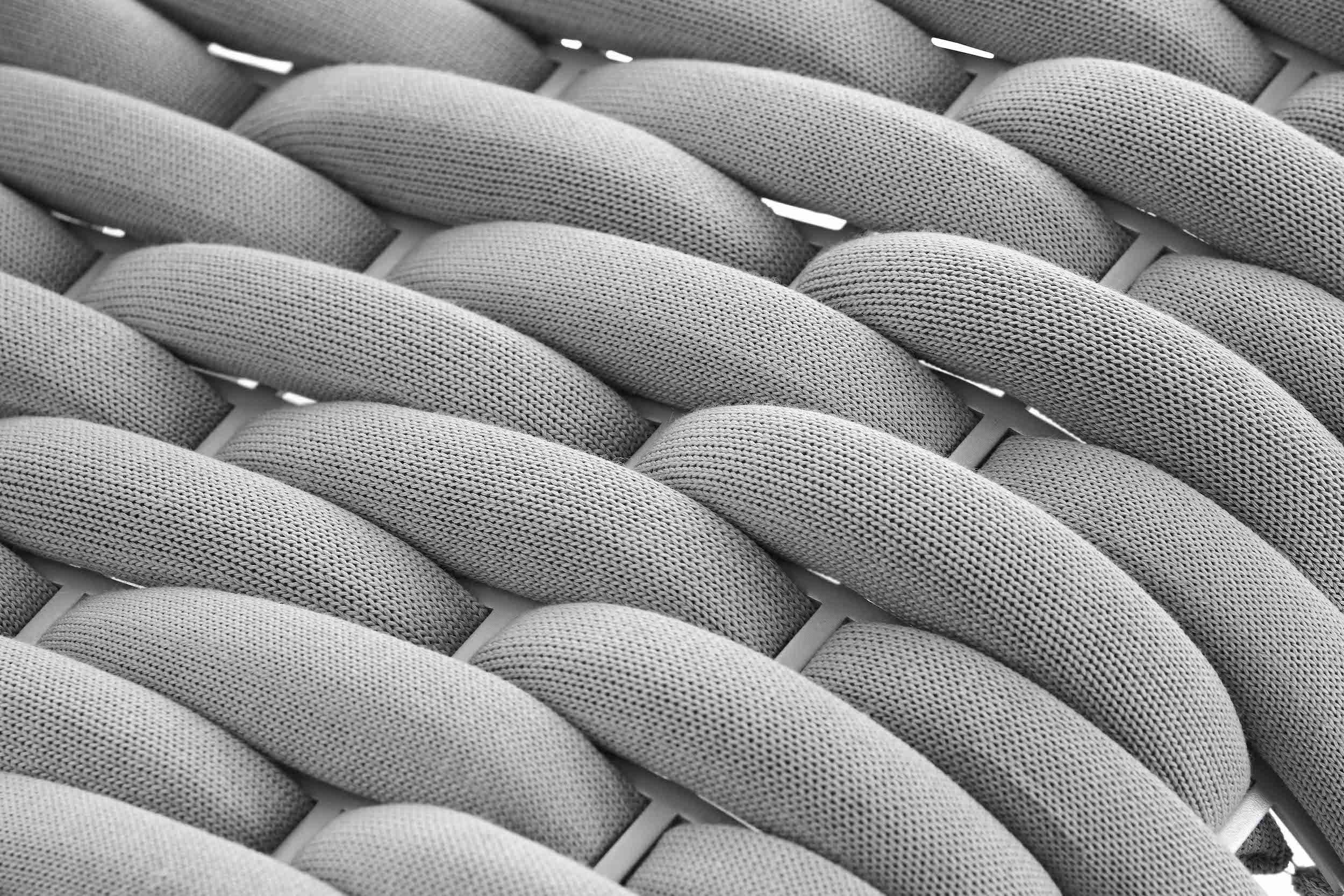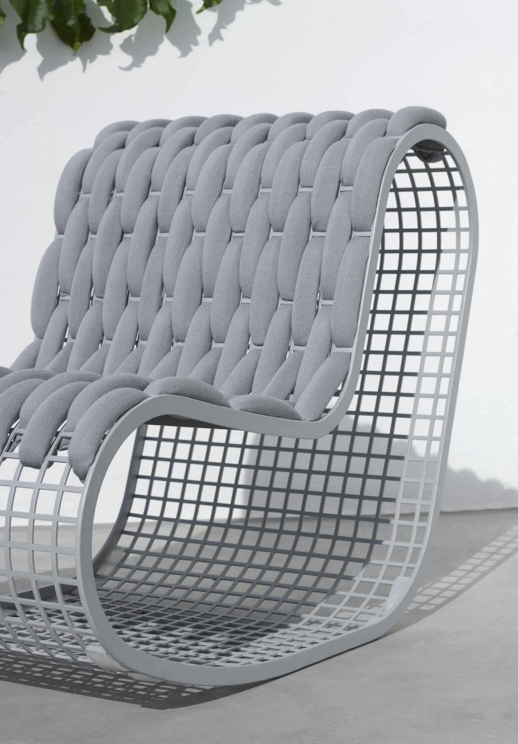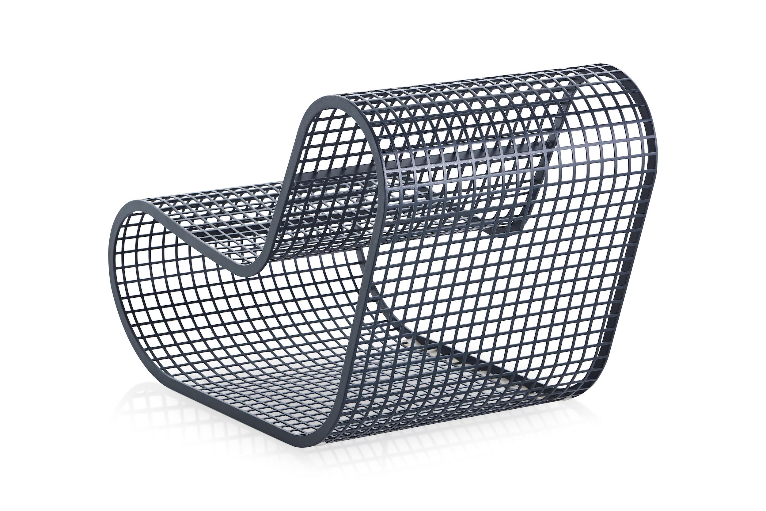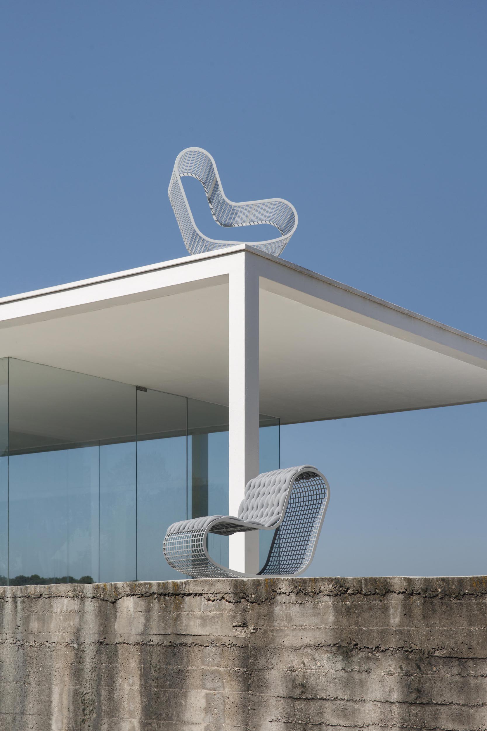 Buit Club Chair by Gandiablasco is handcrafted with powder-coated aluminium mesh, braided with 100% trevira cs. fabric.