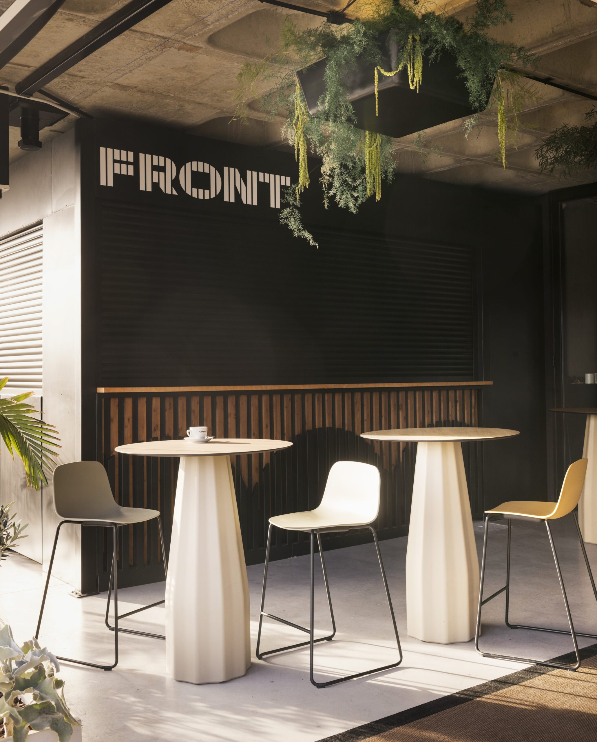 Burin Outdoor Bar Table by Viccarbe is a refined composition that balances robust durability with elegant minimalism. Crafted for outdoor use, its compact laminated top and roto-moulded polyethylene base offer resilience against the elements while maintaining a light, sculptural presence. This design invites conviviality and effortless style, enhancing outdoor environments with a contemporary architectural sensibility.