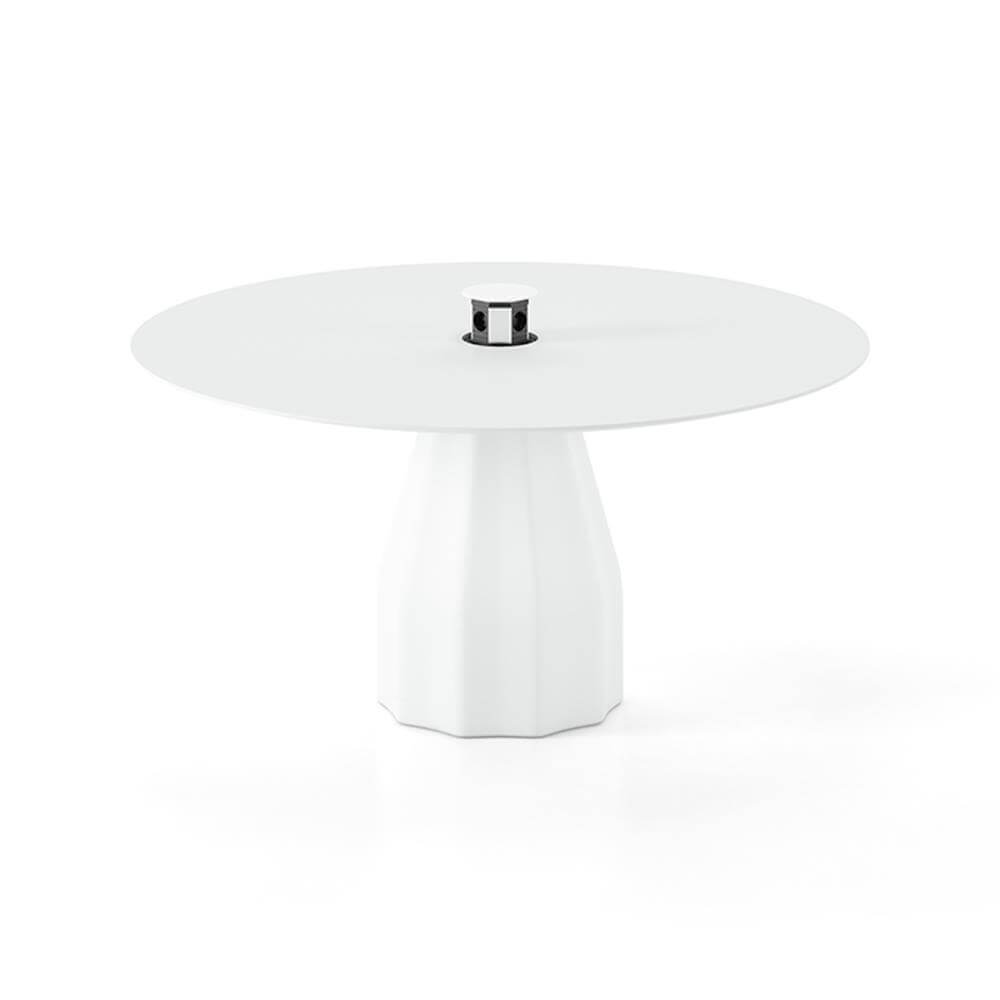 The unmistakeable silhouette of the base runs through this extension of the collection to include a new table with a central base, available in different heights and a double version for large surface areas.