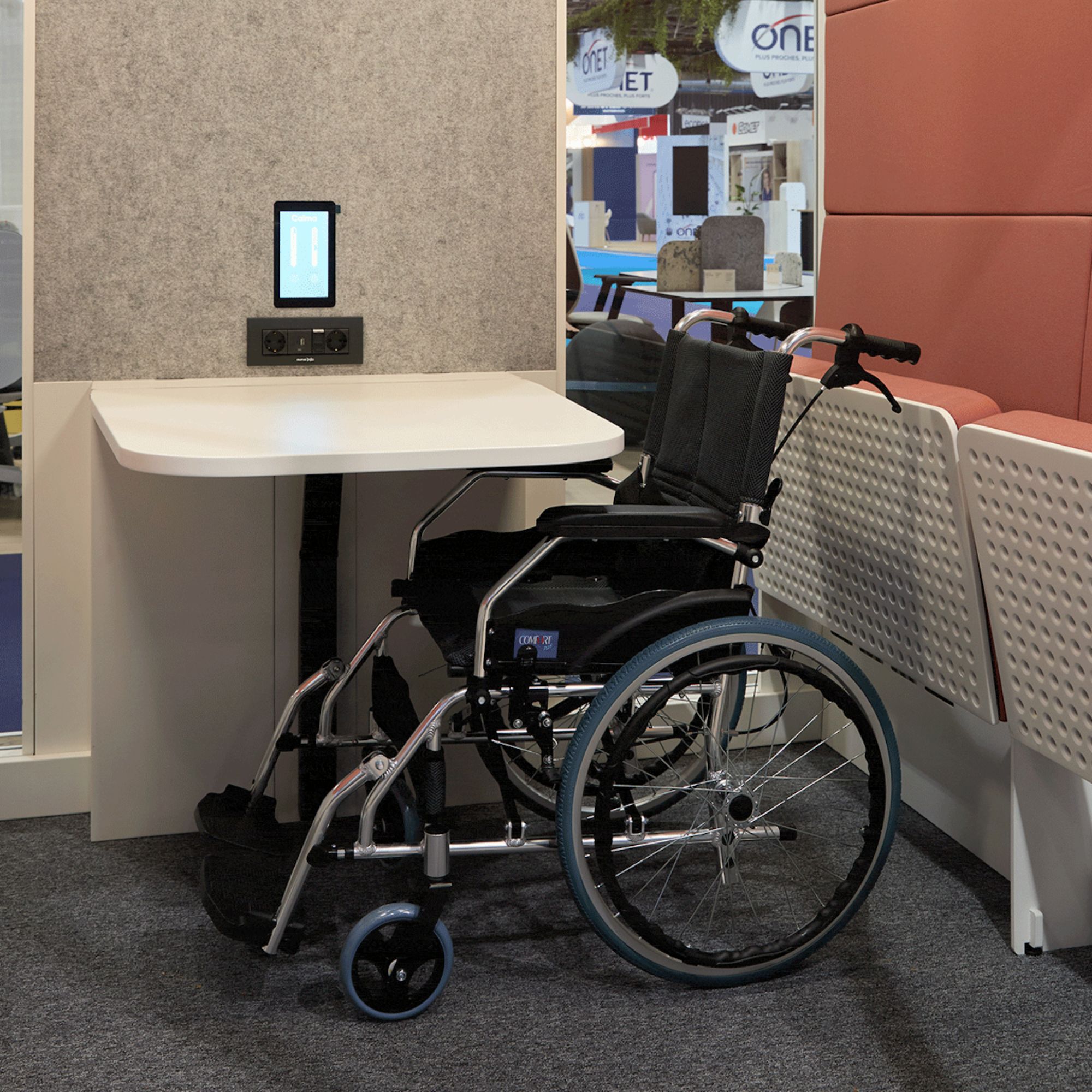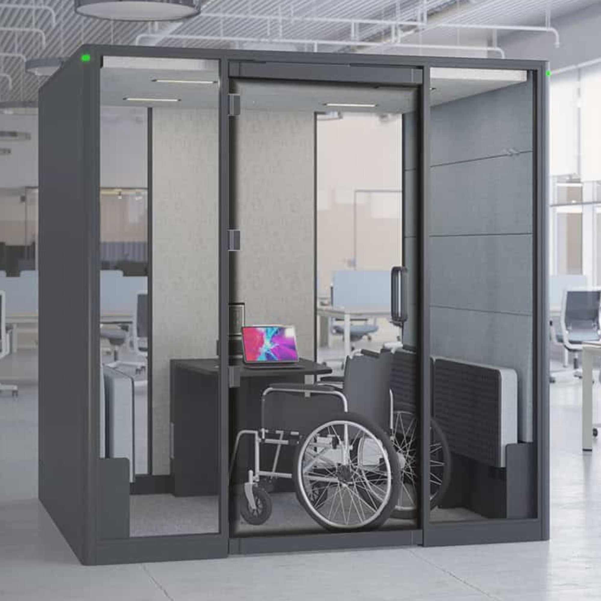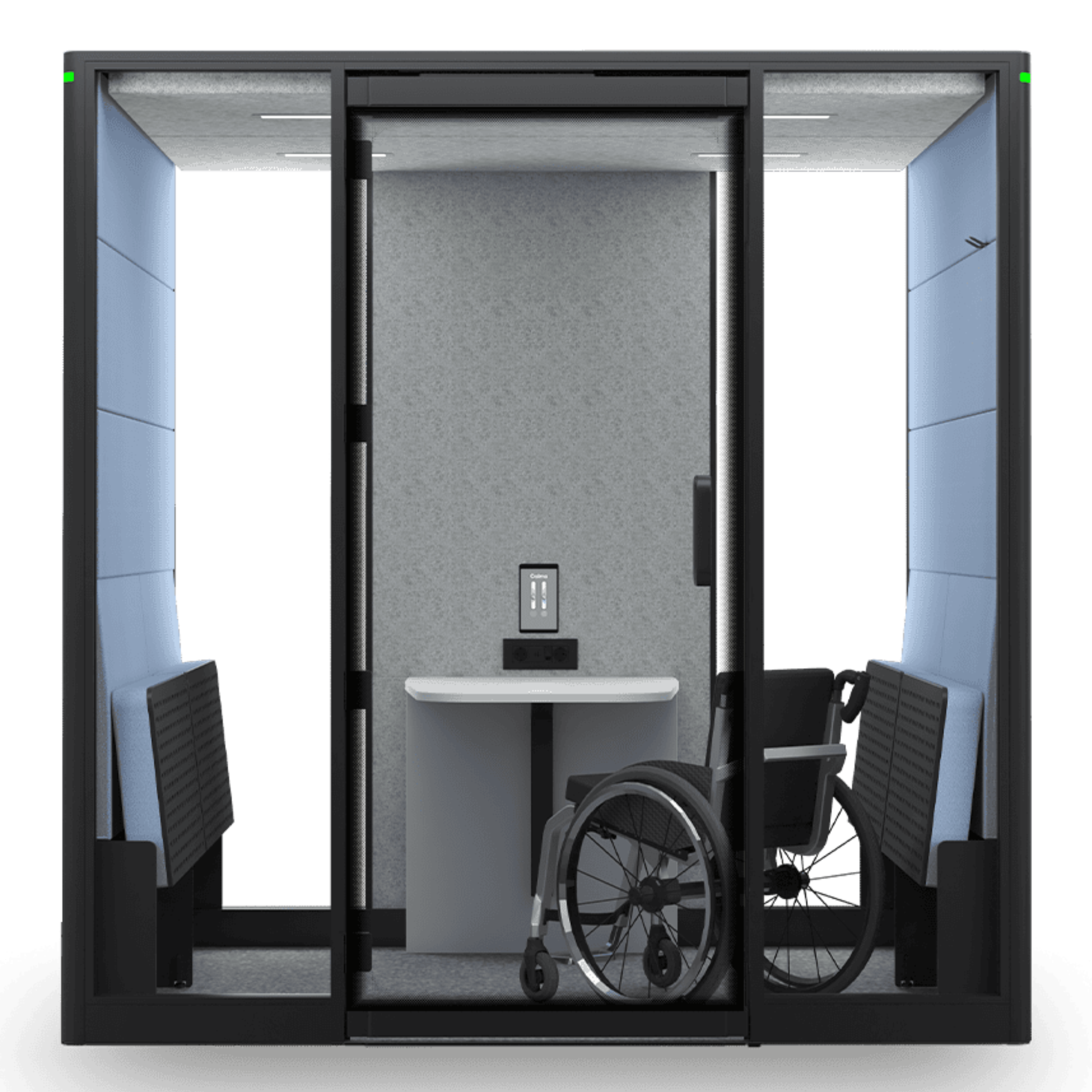 Calma For All by Nurus is a thoughtfully engineered workspace pod designed for focus, collaboration, and accessibility. Its innovative features balance sound insulation, airflow, ergonomic design, and adaptability, creating a healthier and more productive work environment. A collaborative collective with wheelchair-friendly design and interative tools, this version ensures everyone has a seat at the table.