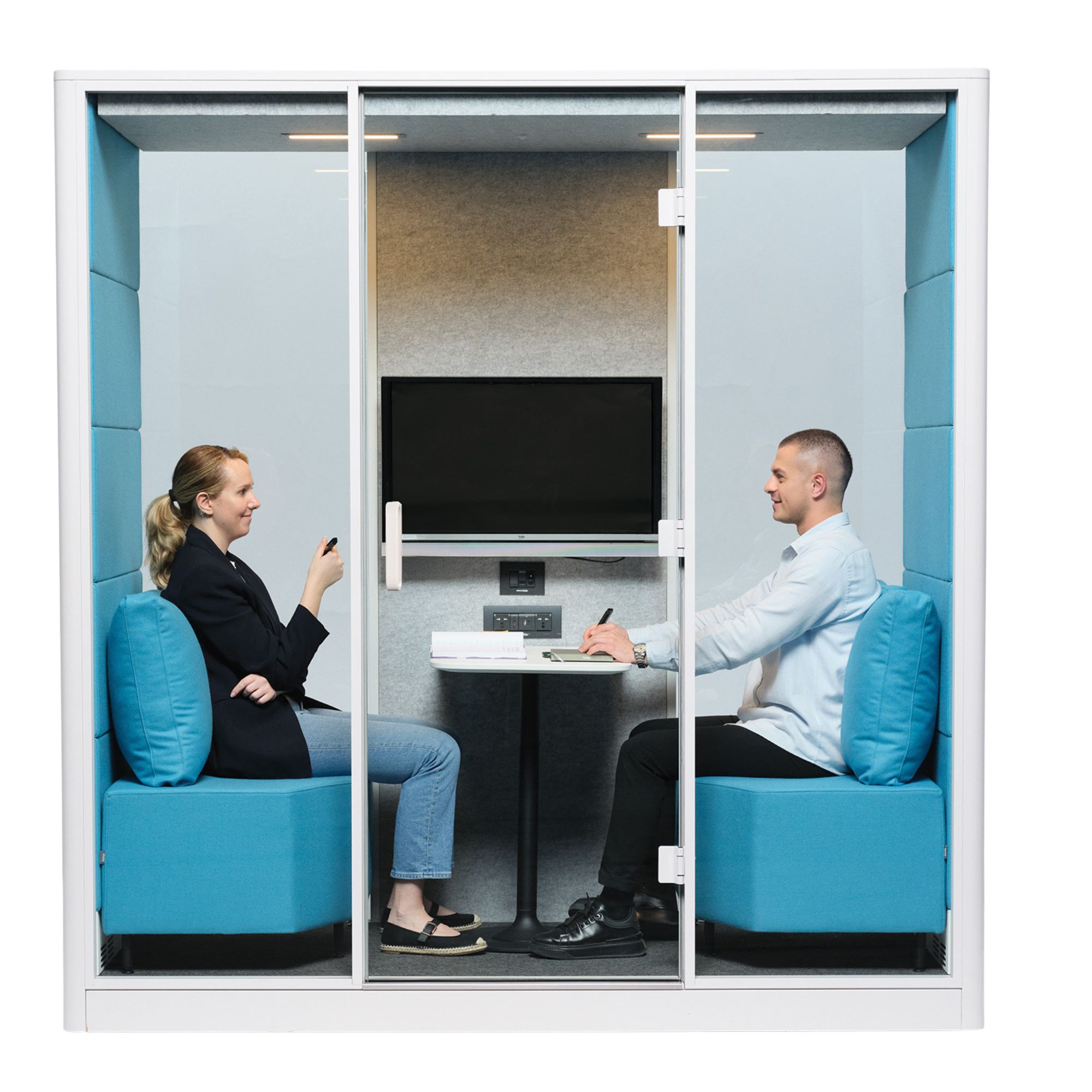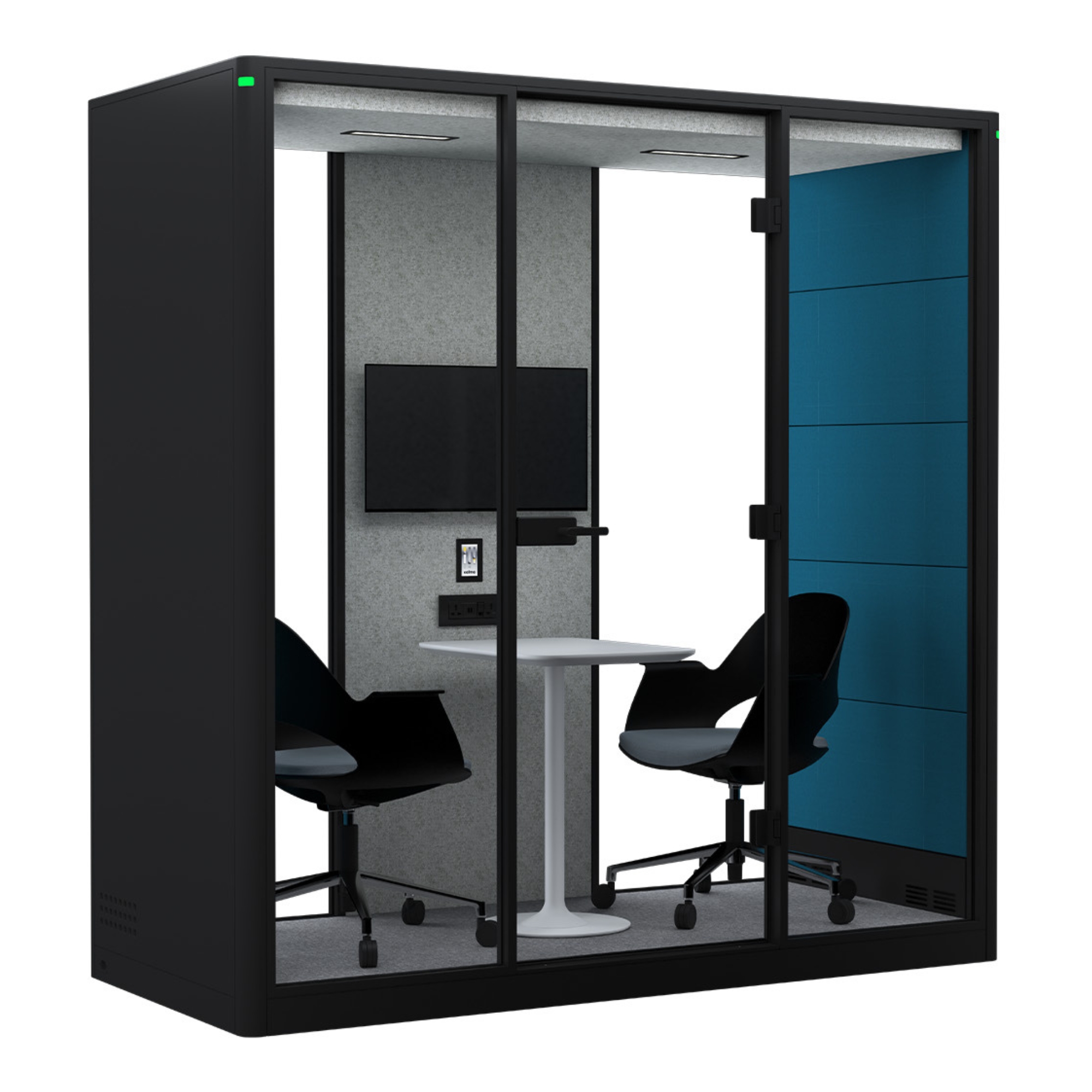 Calma Medium by Nurus is a thoughtfully engineered workspace pod designed to comfortable sit two. Combining advanced sound insulation, optimal airflow, and ergonomic comfort, it provides a healthier, more productive environment for meetings or individual work.