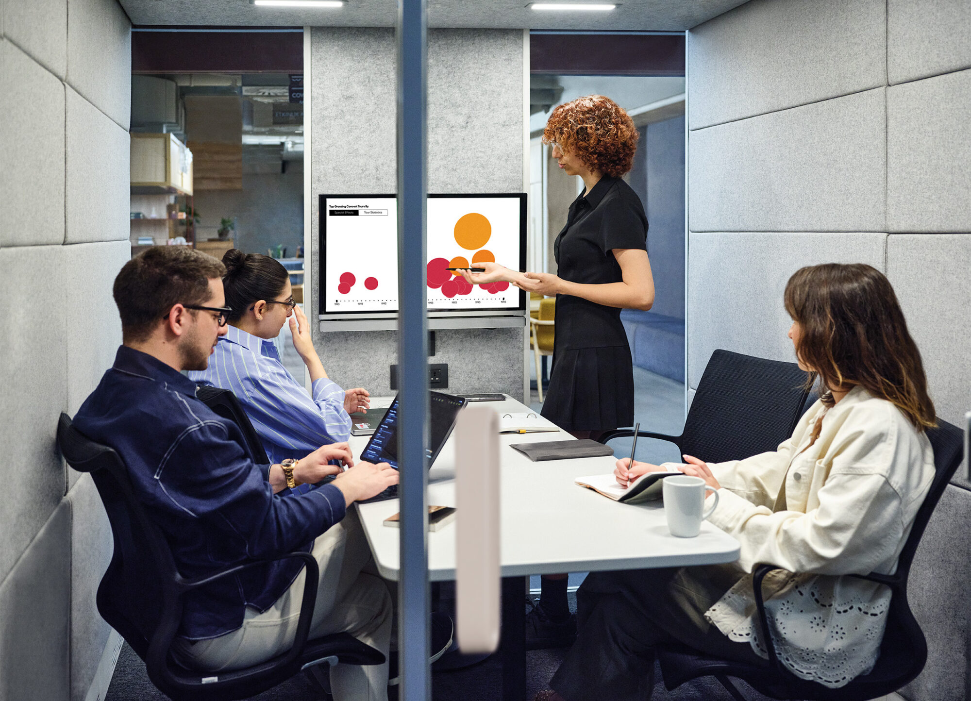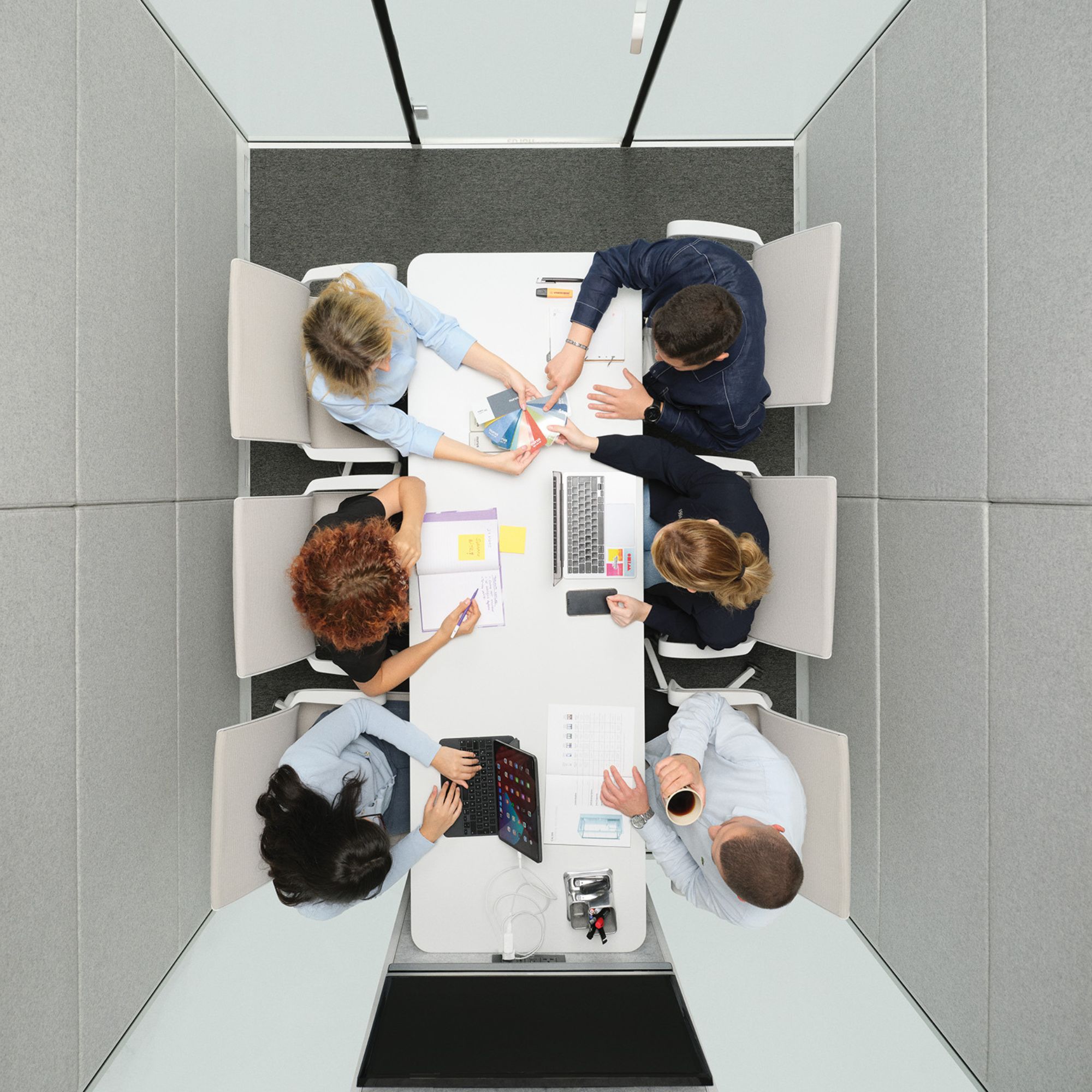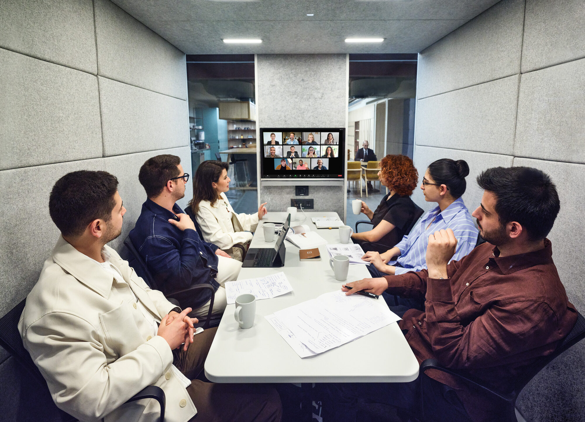 Engineered with advanced acoustic insulation, optimized airflow, and ergonomic design, Calma XXL delivers a spacious, distraction-free environment perfect for extended meetings, brainstorming sessions, and hybrid collaboration. Its integrated media wall enhances digital communication with Links modules and broadcast lighting, ensuring stable connectivity and professional-quality video calls.