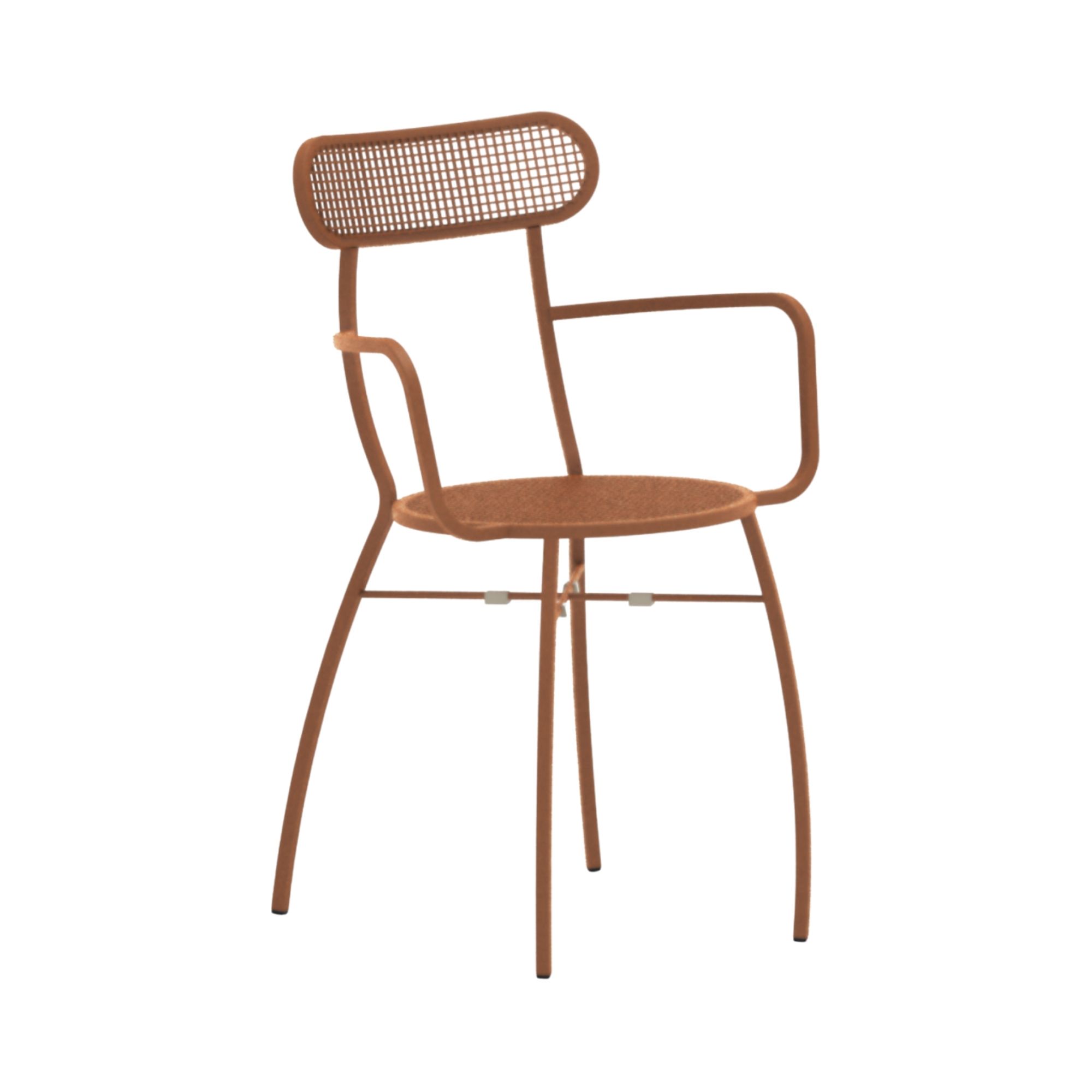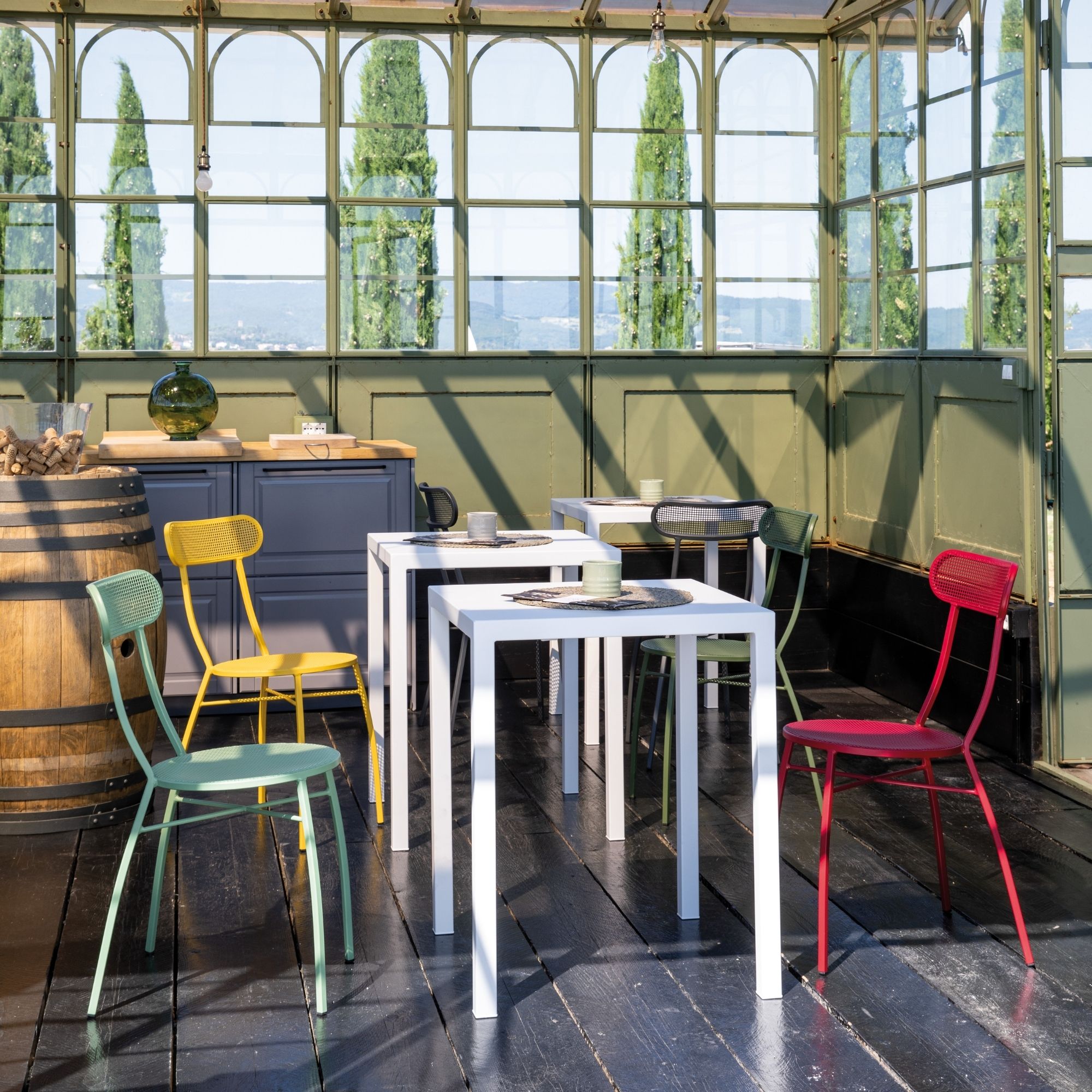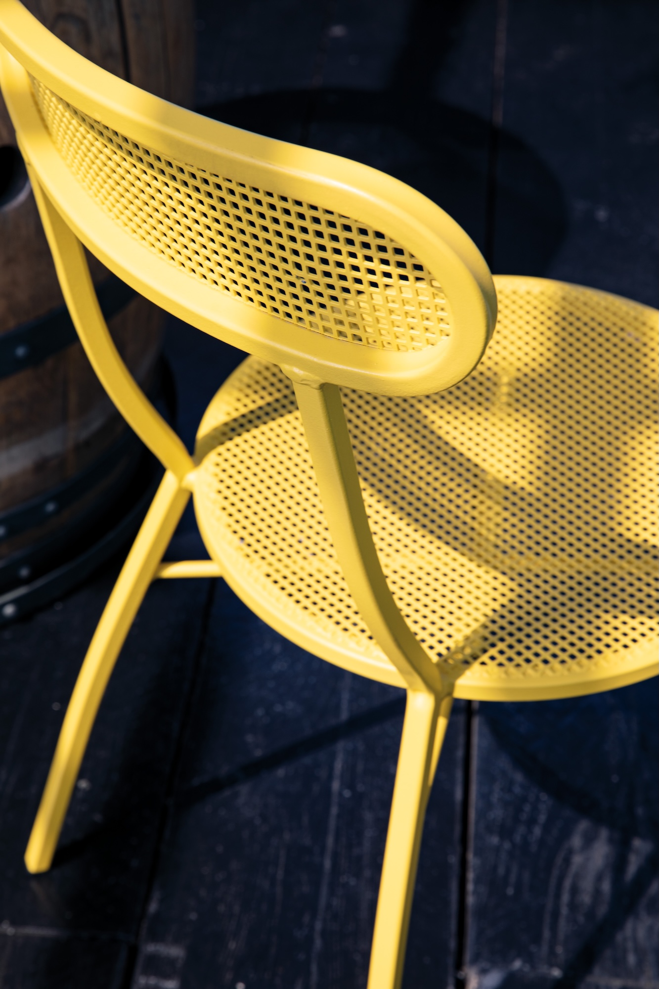 Ciao Chair by Vermobil captures the essence of Italian outdoor living with its lightweight form and timeless design. Crafted from high-quality steel, the chair combines a rounded mesh seat and backrest with gently curved legs and subtle cross bracing for strength and stability. Stackable and durable, Ciao is ideal for cafés, patios, and elegant outdoor dining settings.