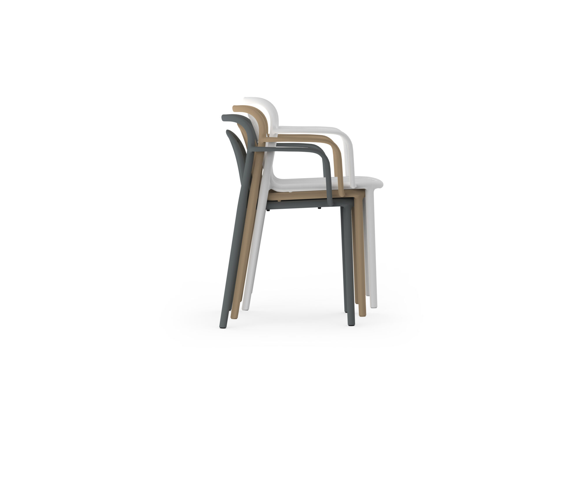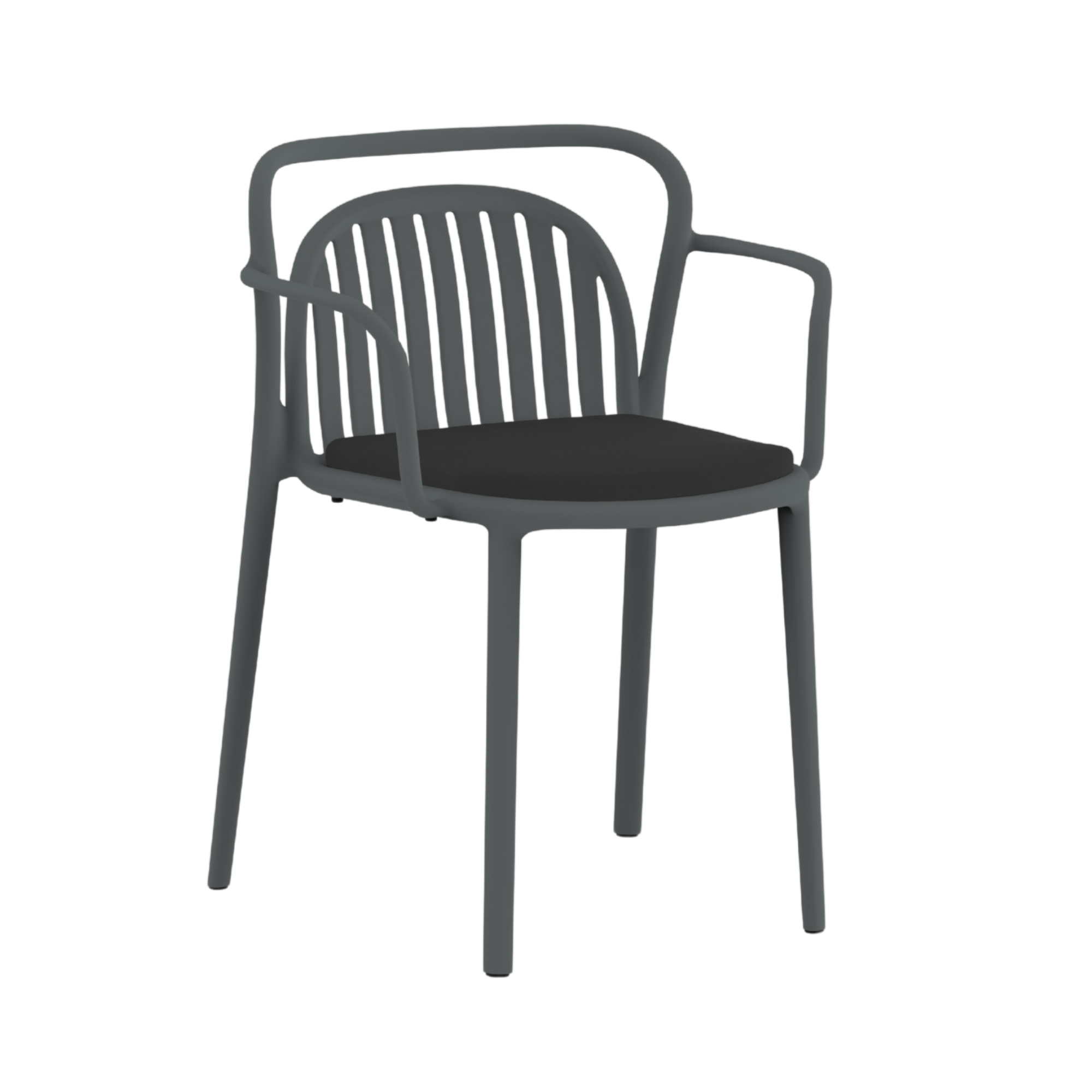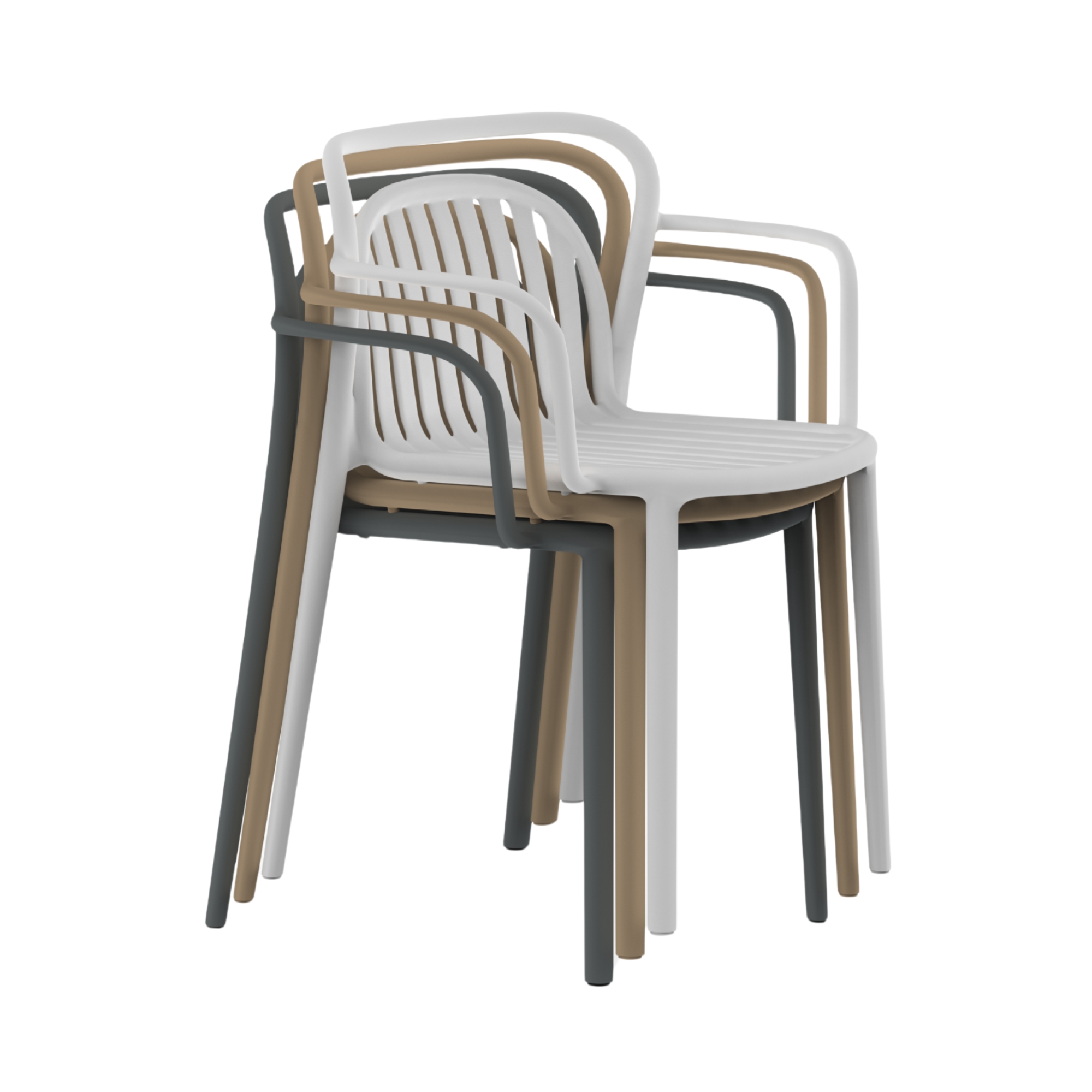 This chair stands out for the delicacy of its fluid forms, especially in the organic armrests that evoke modernist cabinetmaking. It is manufactured using innovative monoblock injection of reinforced polypropylene, resulting in an outdoor armchair that is robust, lightweight, and highly resistant for intensive use, thus complying with Diabla’s philosophy of functional design.