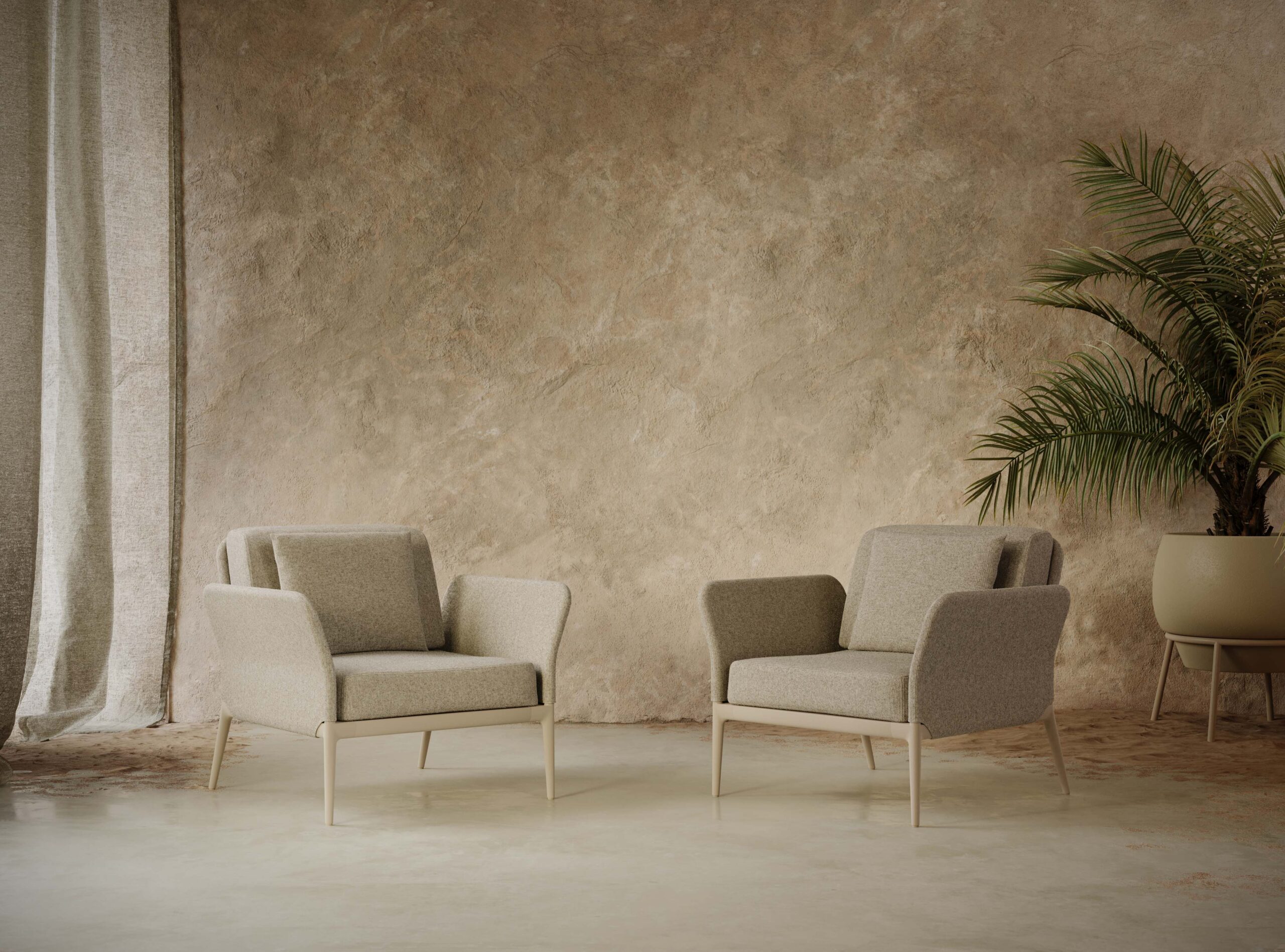 Cover Lounge Armchair by Diabla, transfers the comfort and formal sophistication of living room furniture to open-air environments. The piece uses technical fabrics and quick-drying polyurethane foam fillings, making it fully suitable for continuous outdoor placement.