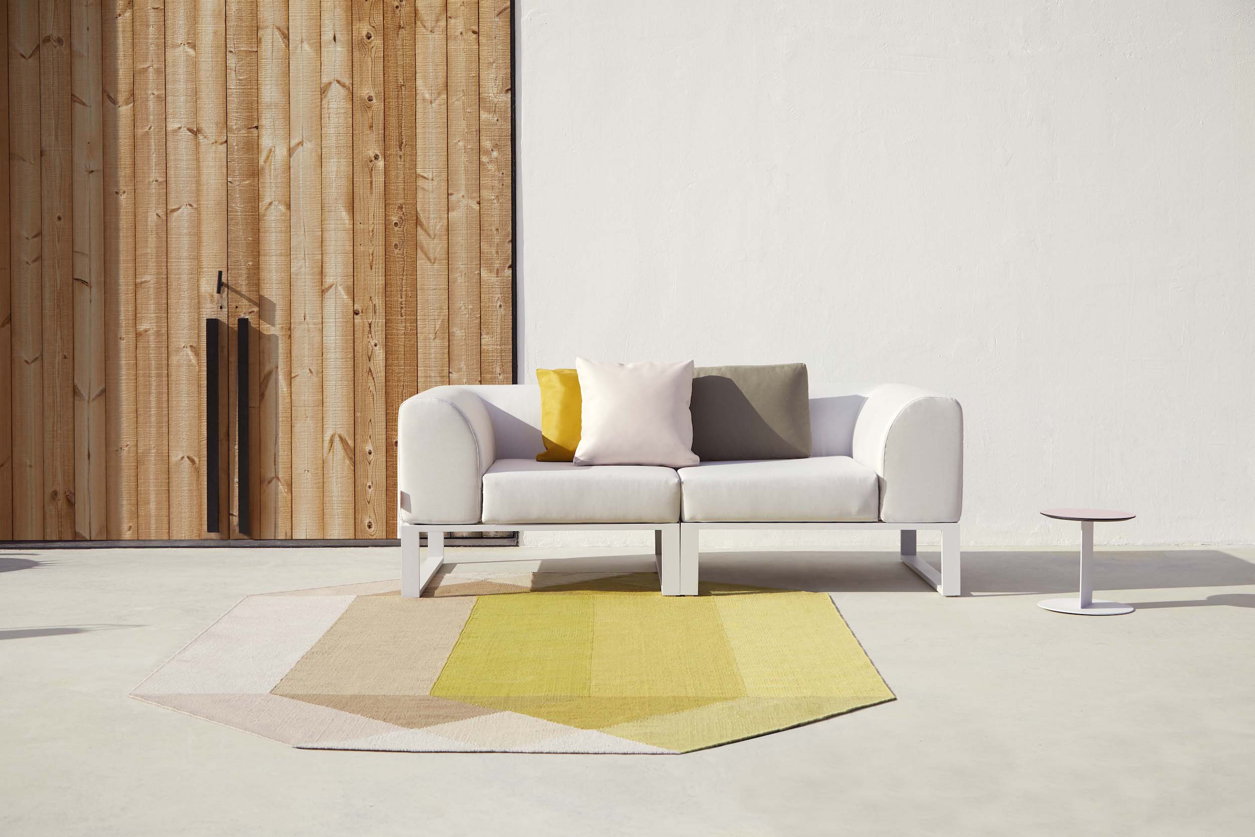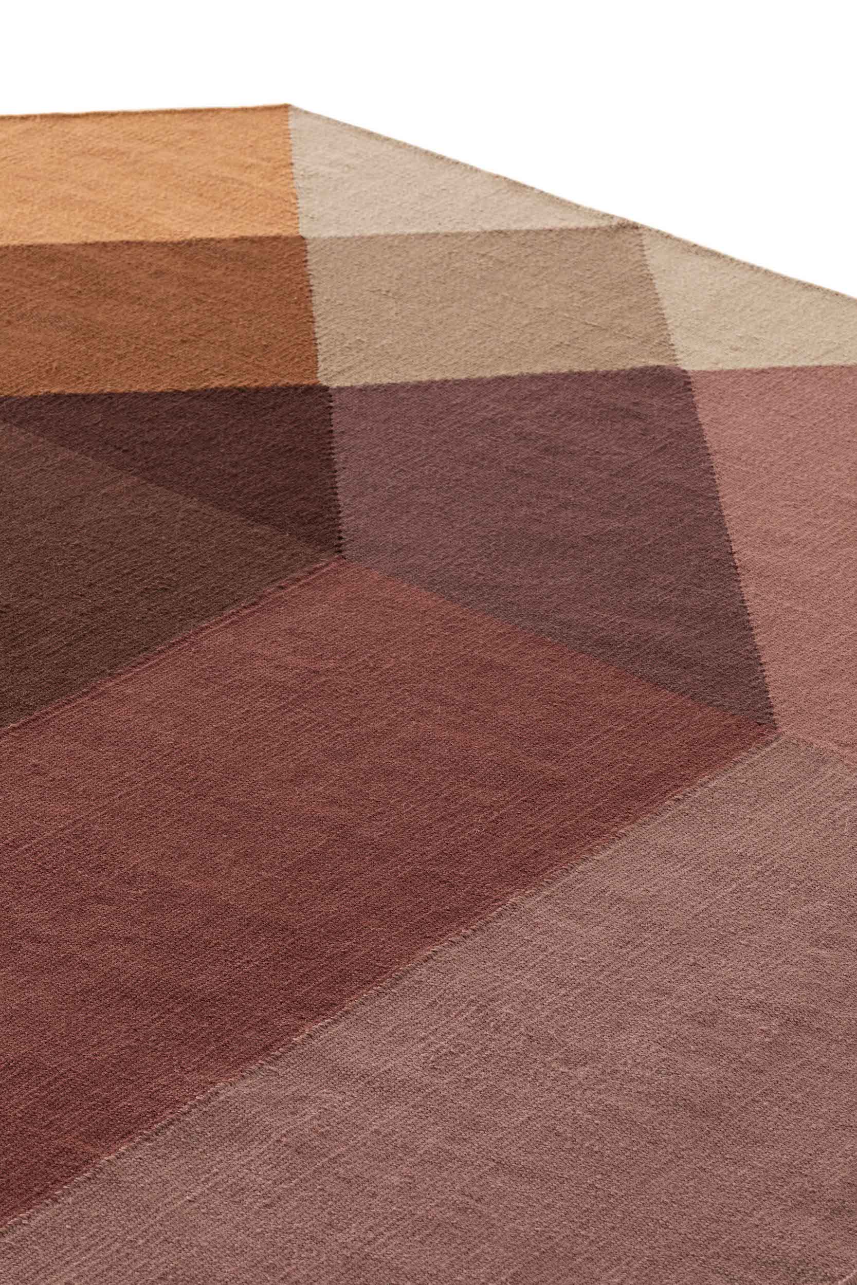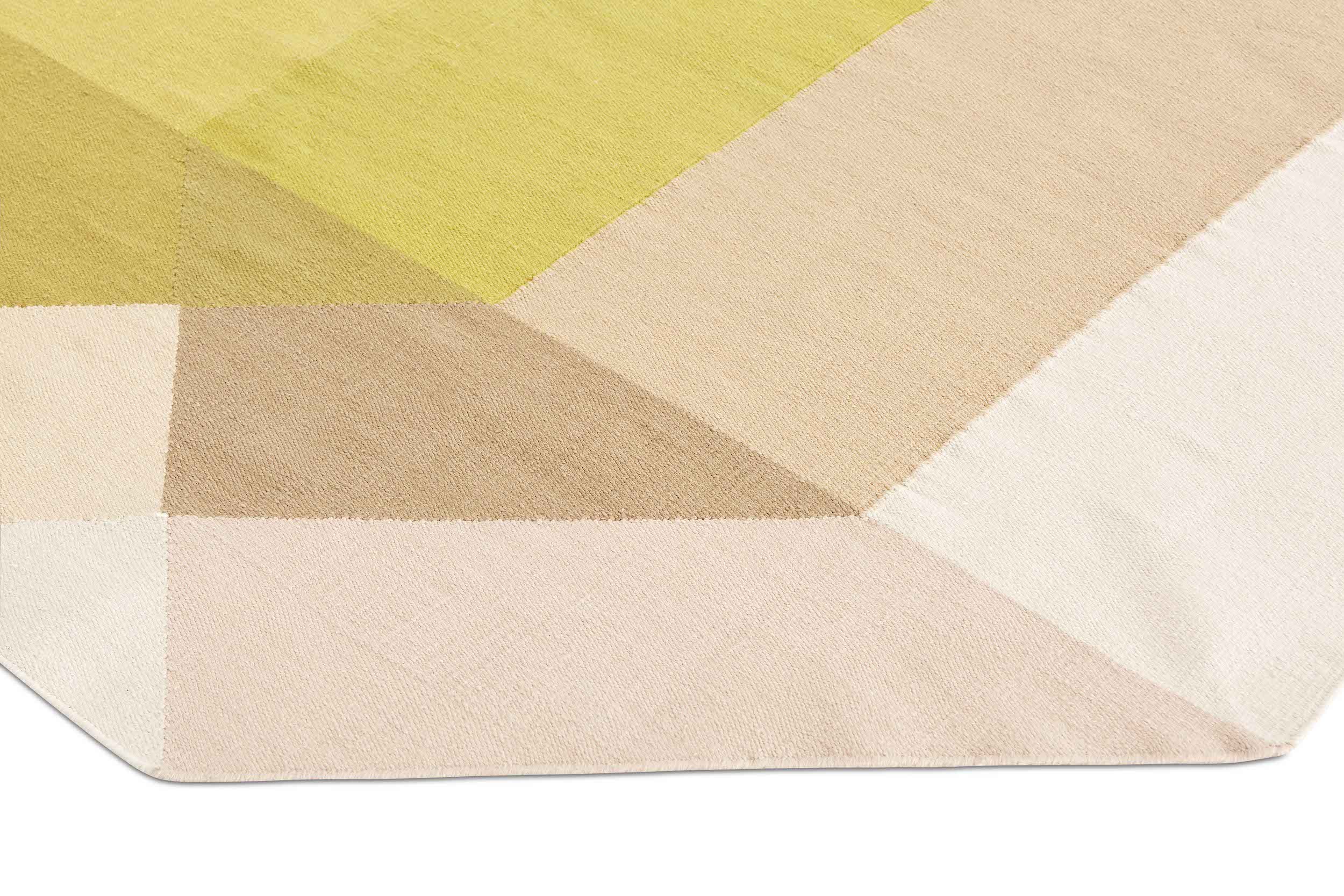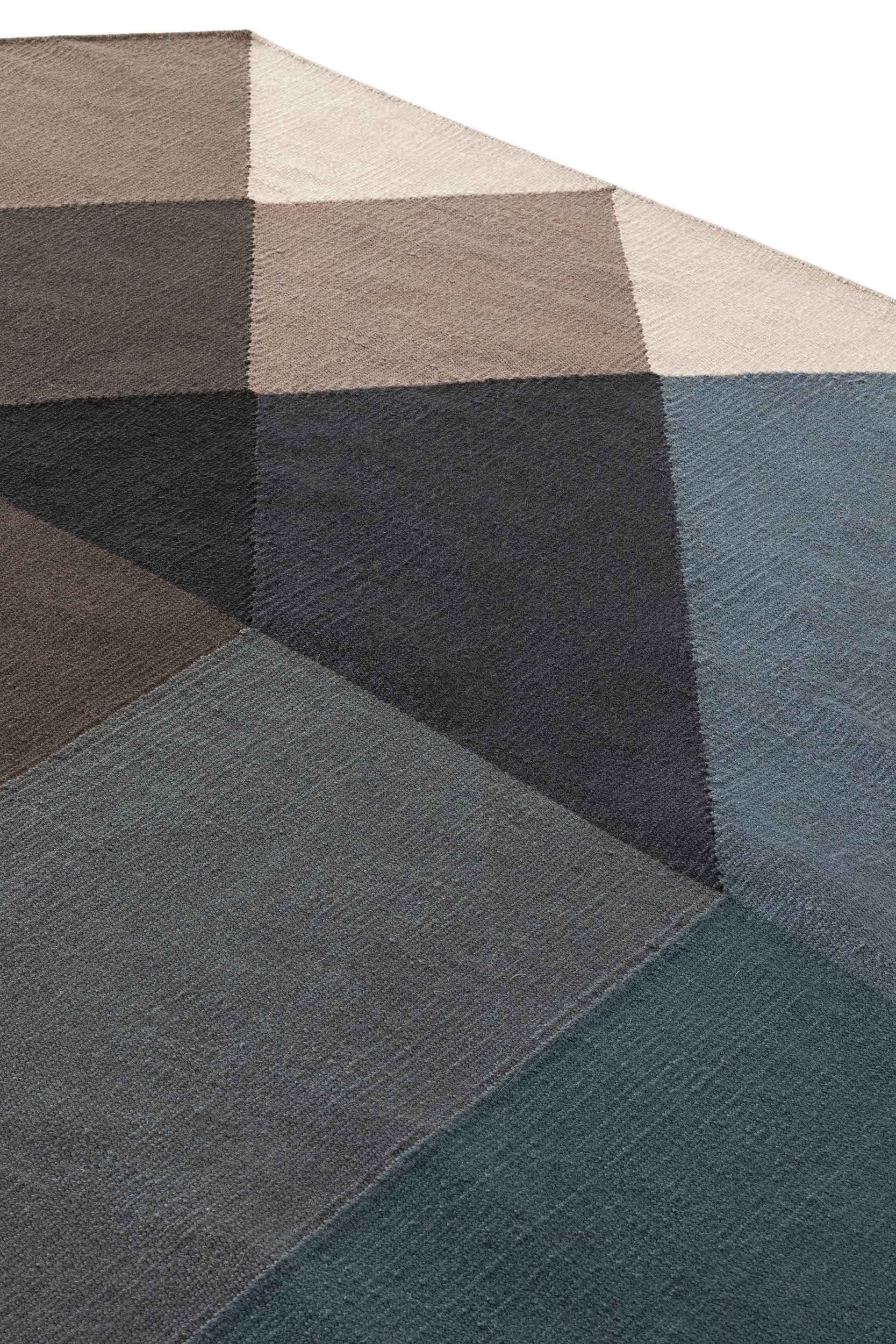 Diamond Outdoors by GAN Rugs displays a multifaceted coloured diamond, obtained by superimposing different translucent geometric figures.