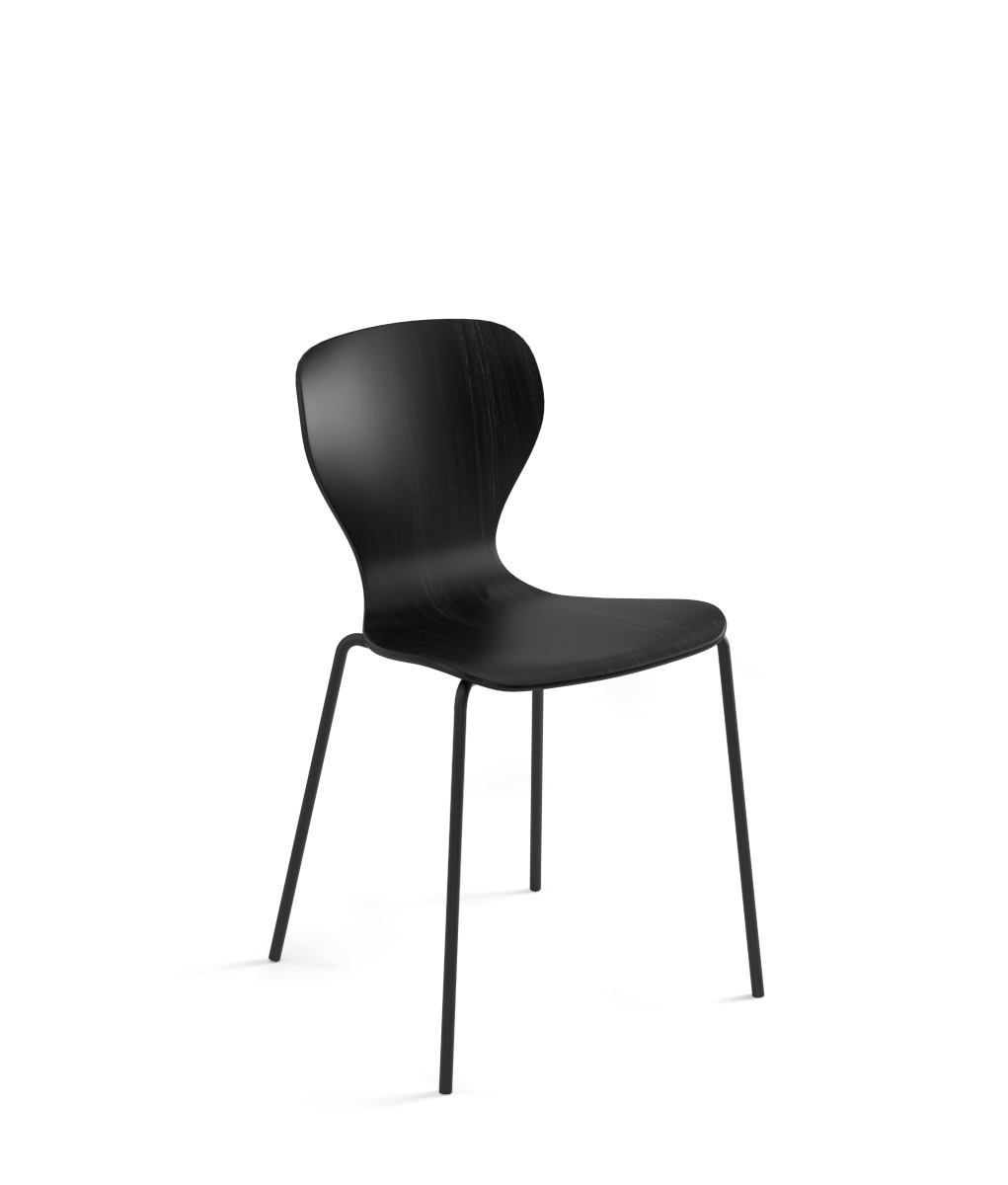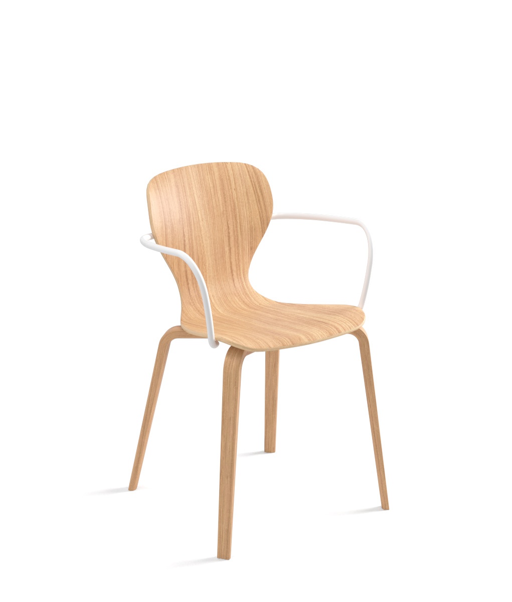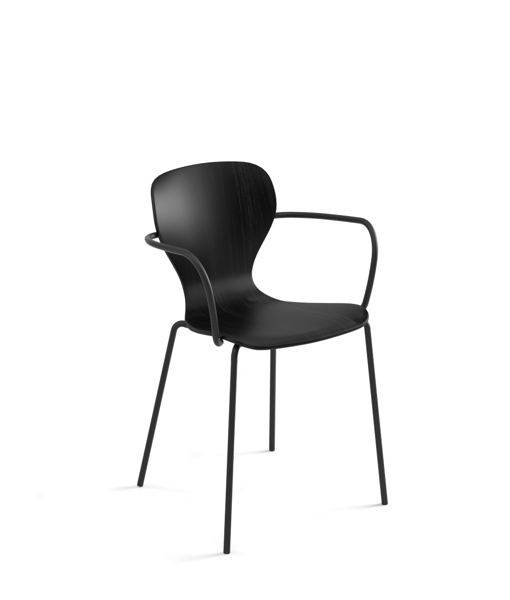 With or without armrests – Powder-coated steel, stained wood, upholstered leather or ecoleather