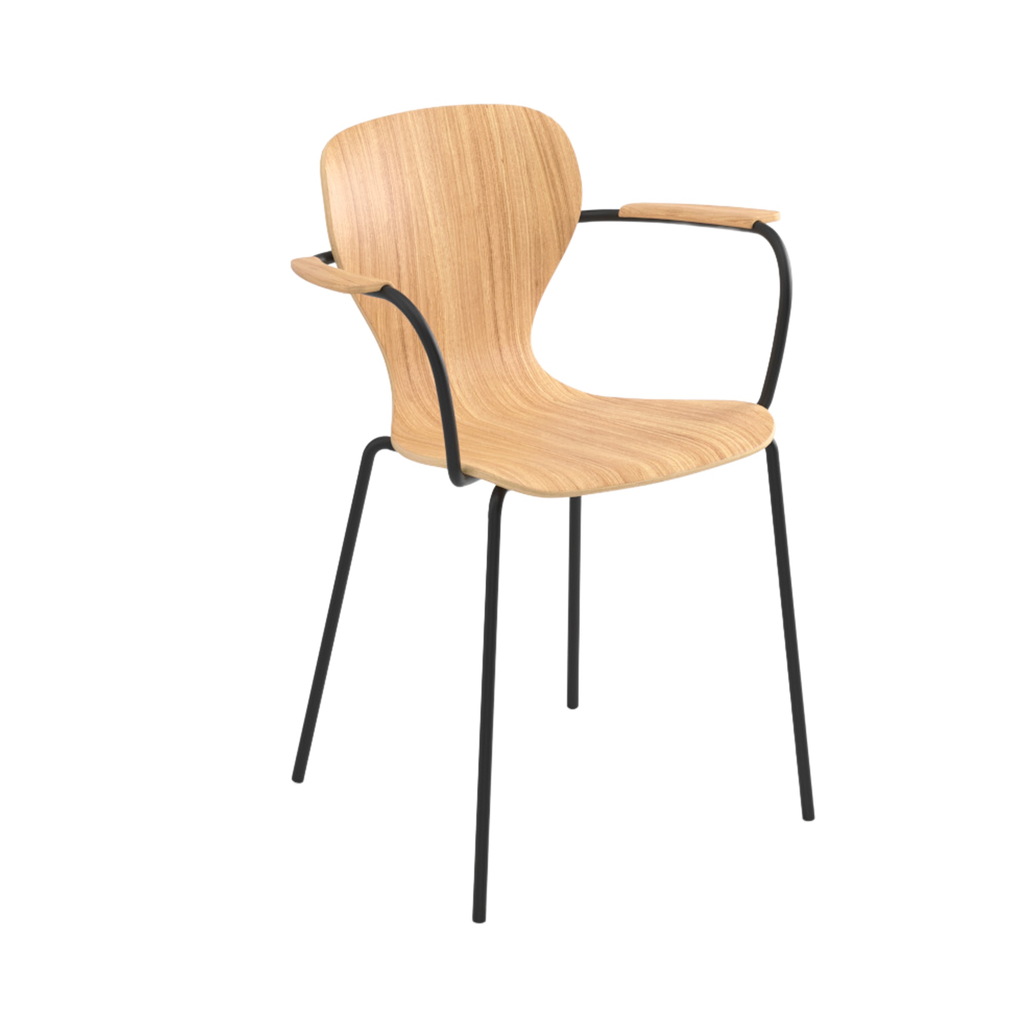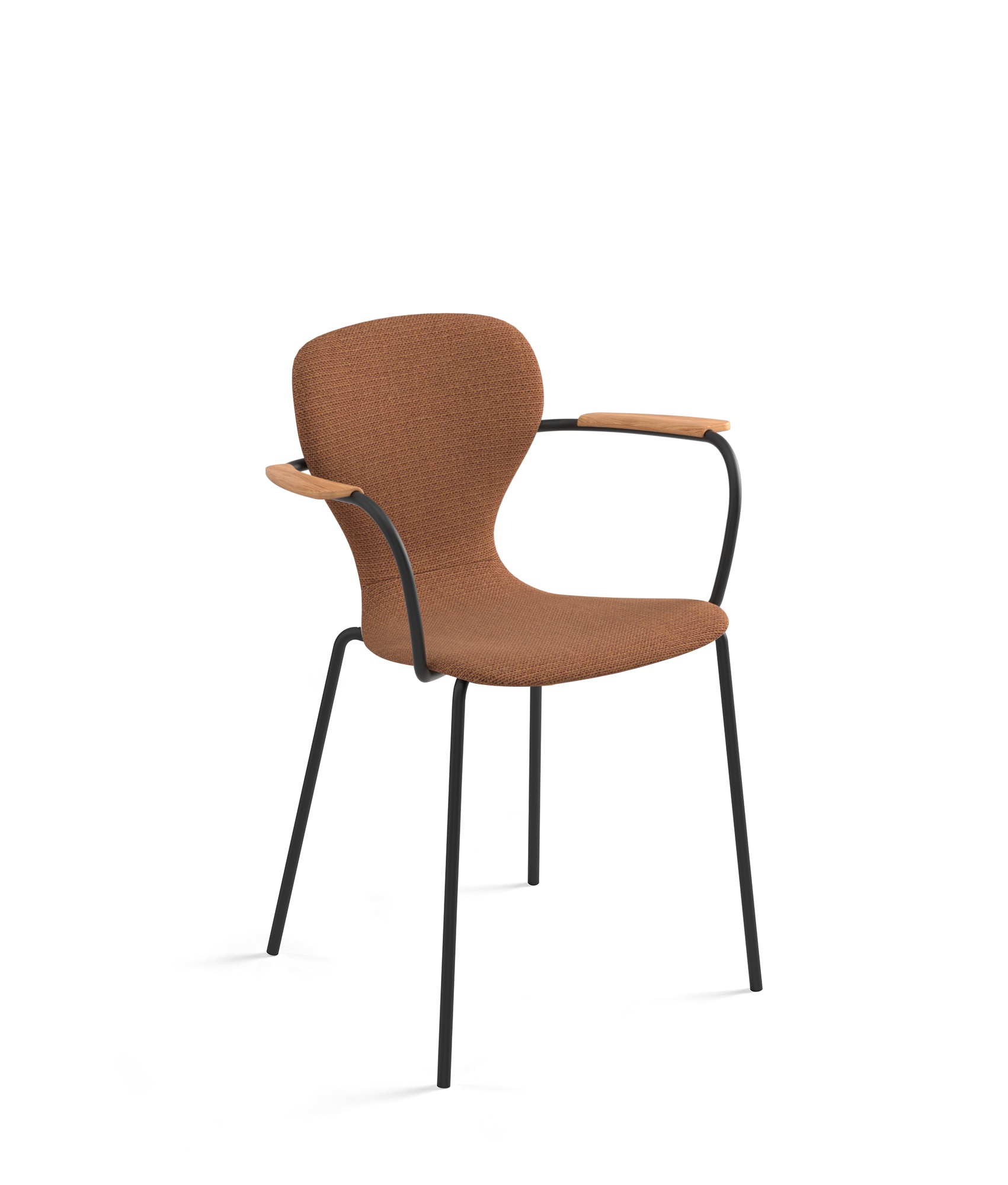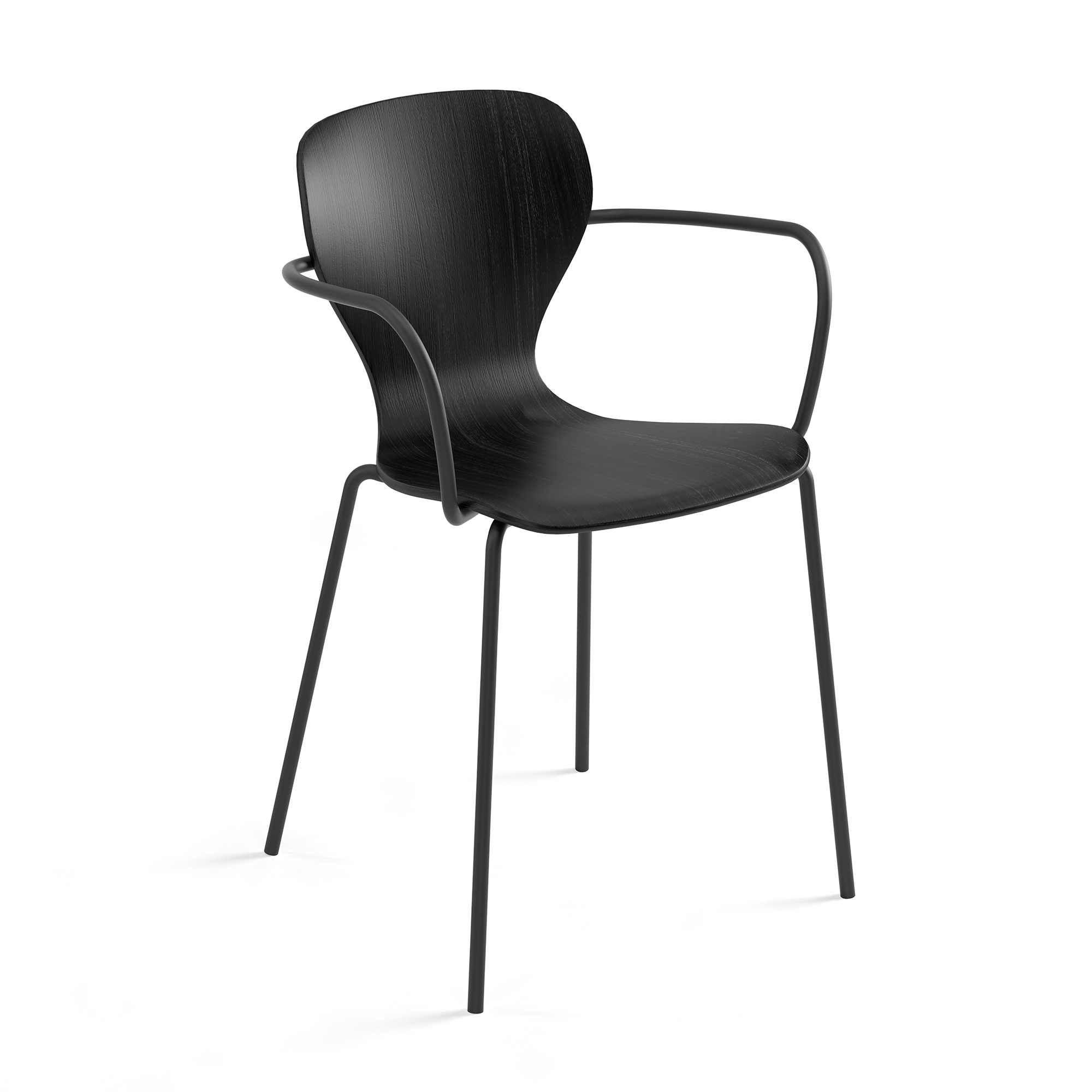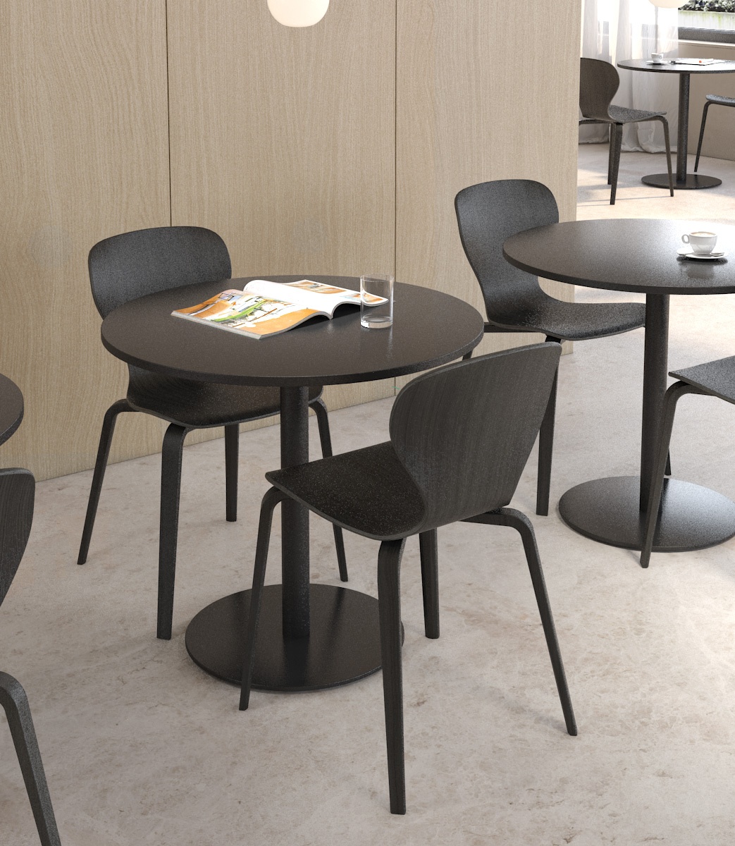 With or without armrests – Powder-coated steel, stained wood, upholstered leather or ecoleather