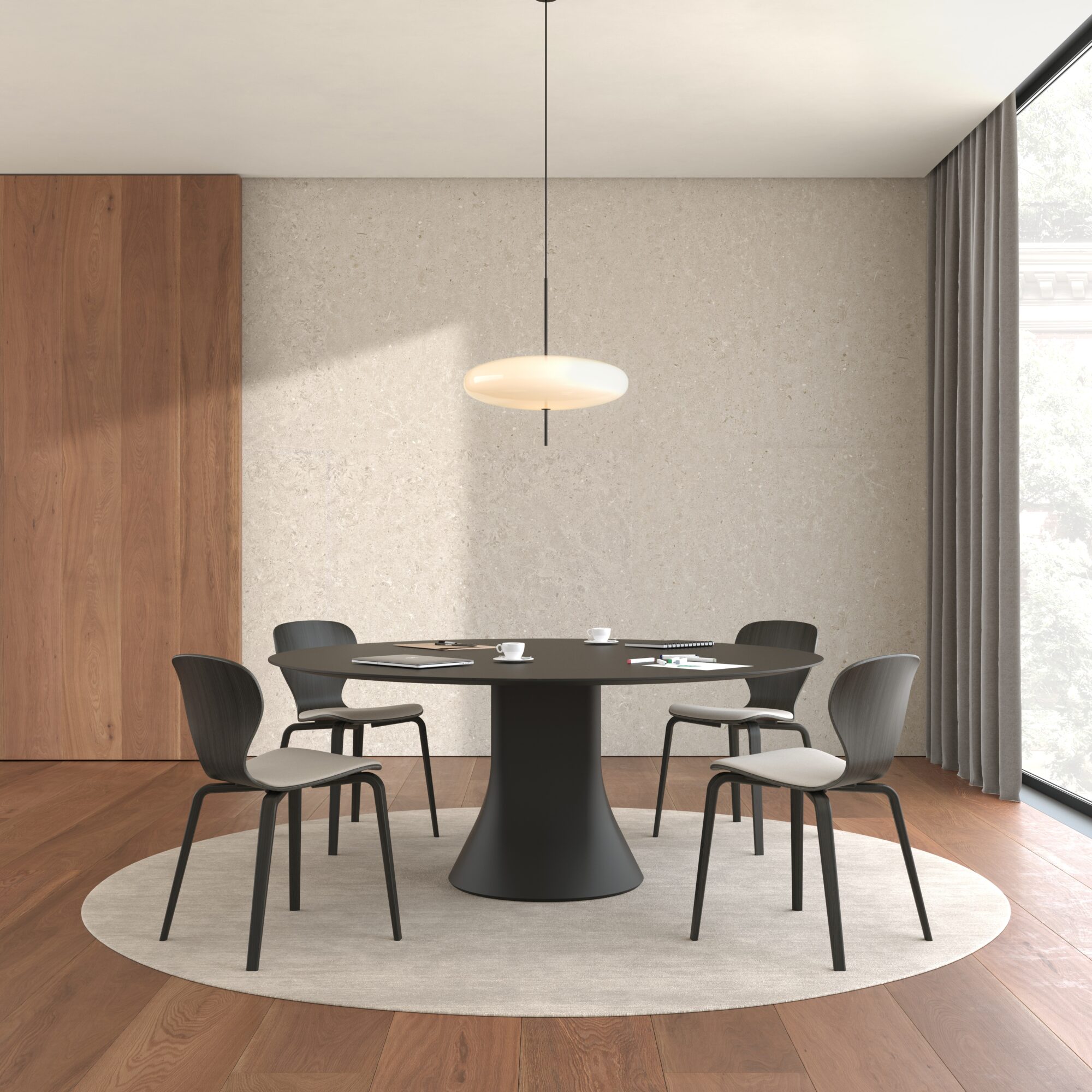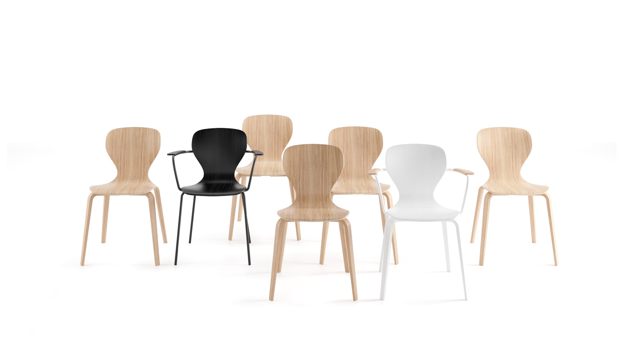 Ears Chair by Viccarbe is crafted with a curved plywood seat available in stained oak or smooth upholstery, offering a refined balance of comfort and sculptural form. Its versatile base options, including metal and wooden frames, complement the chair’s architectural presence while ensuring durability and ease of use.