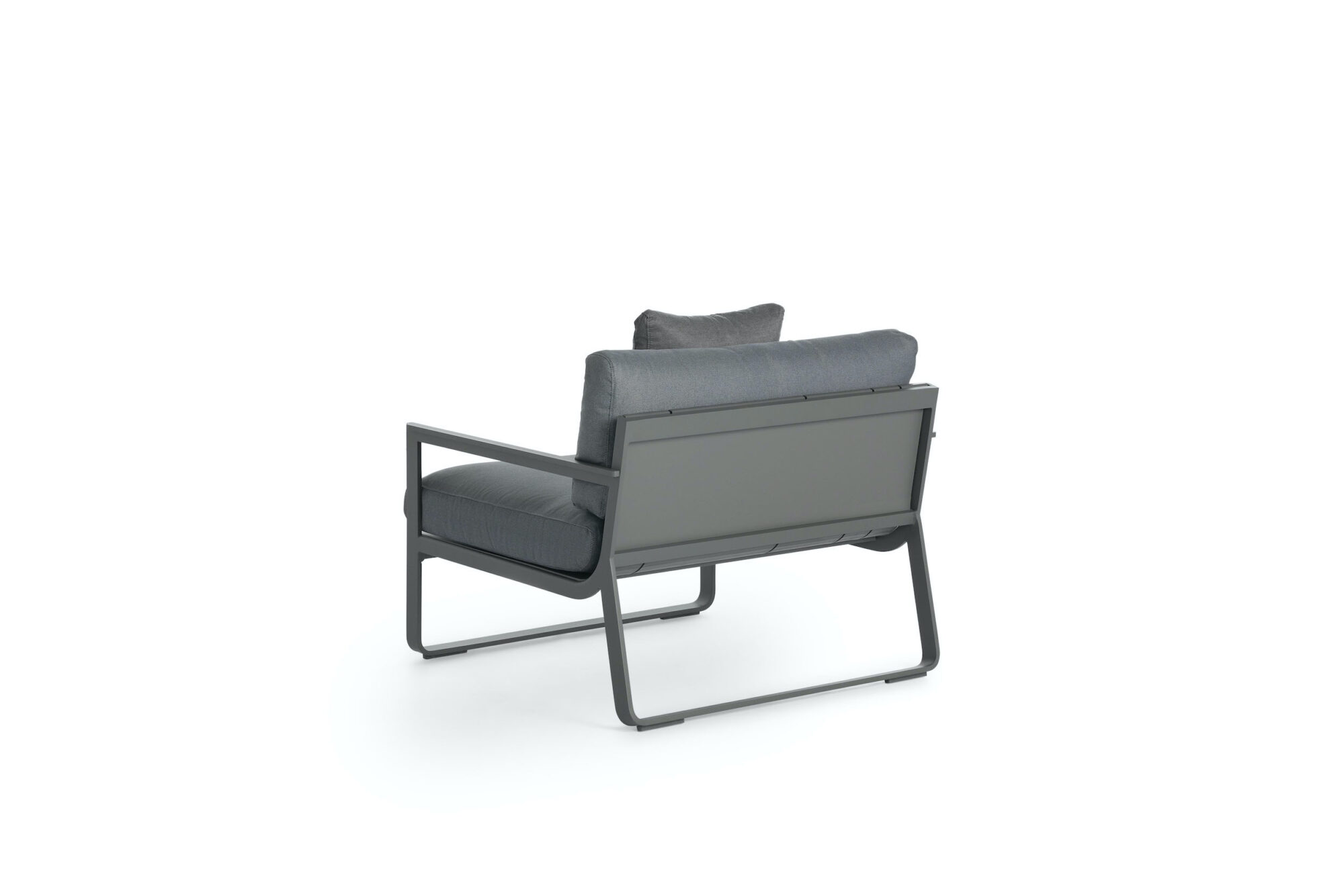 Comfort is provided by the polyurethane foam cushions covered with water-repellent fabric that you can personalise, choosing the textures and colours you prefer: from sober ranges such as white, sand, natural, black, grey… to more daring colours, emerald green, dark pink , earth orange… to your liking.