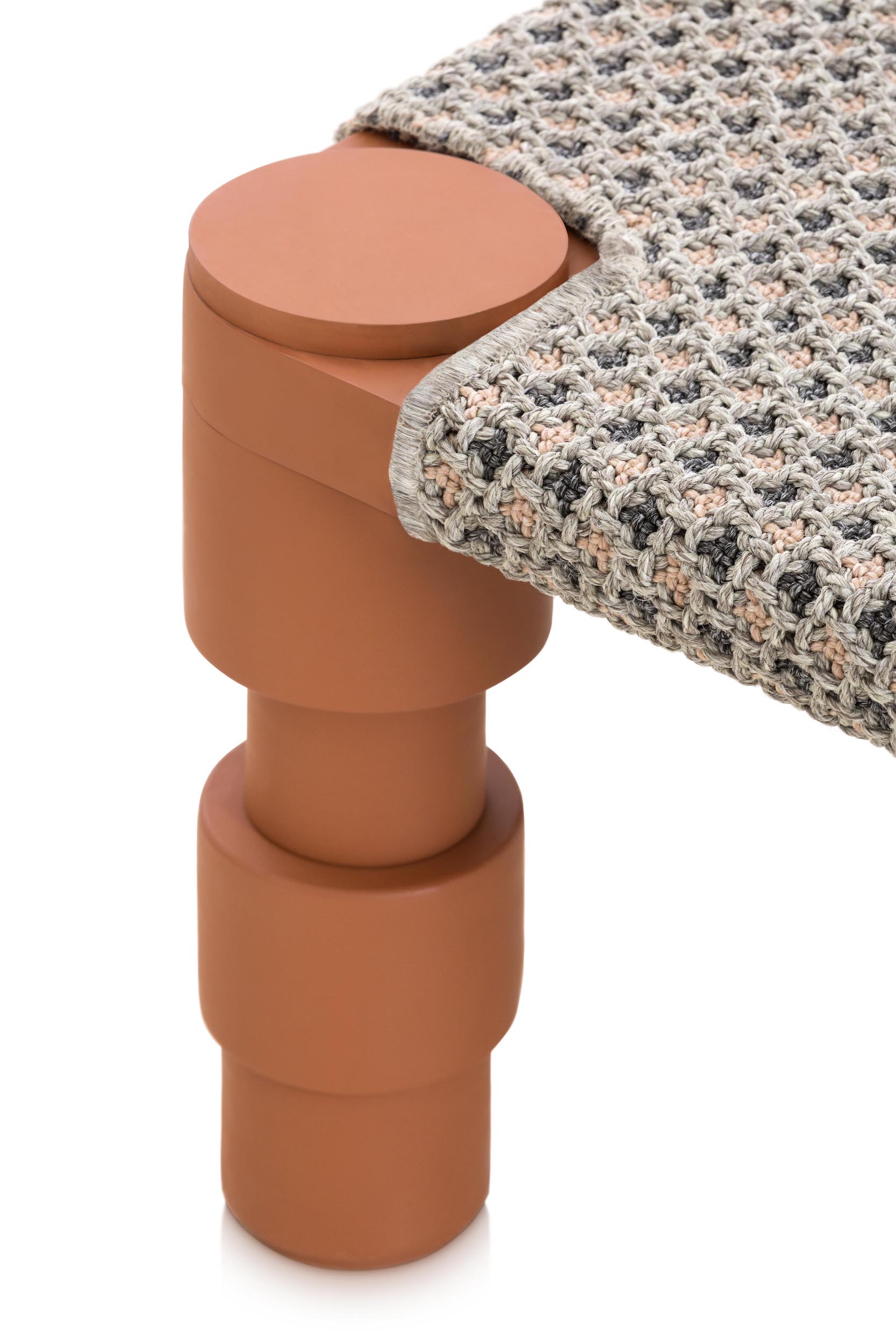 Its innovative fabrics and fillings are specifically designed for outdoor use, while maintaining the typical comfort of indoor spaces.