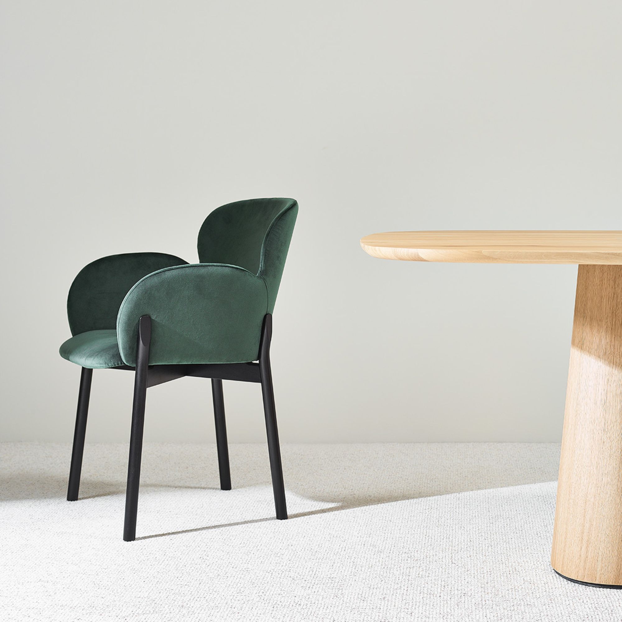 The compact Ginger armchair blends gentle contours with a comfortable, contemporary design.Inspired by the bulbous stem of the medicinal ginger plant, the upholstered armchair is solidly built without appearing heavy.