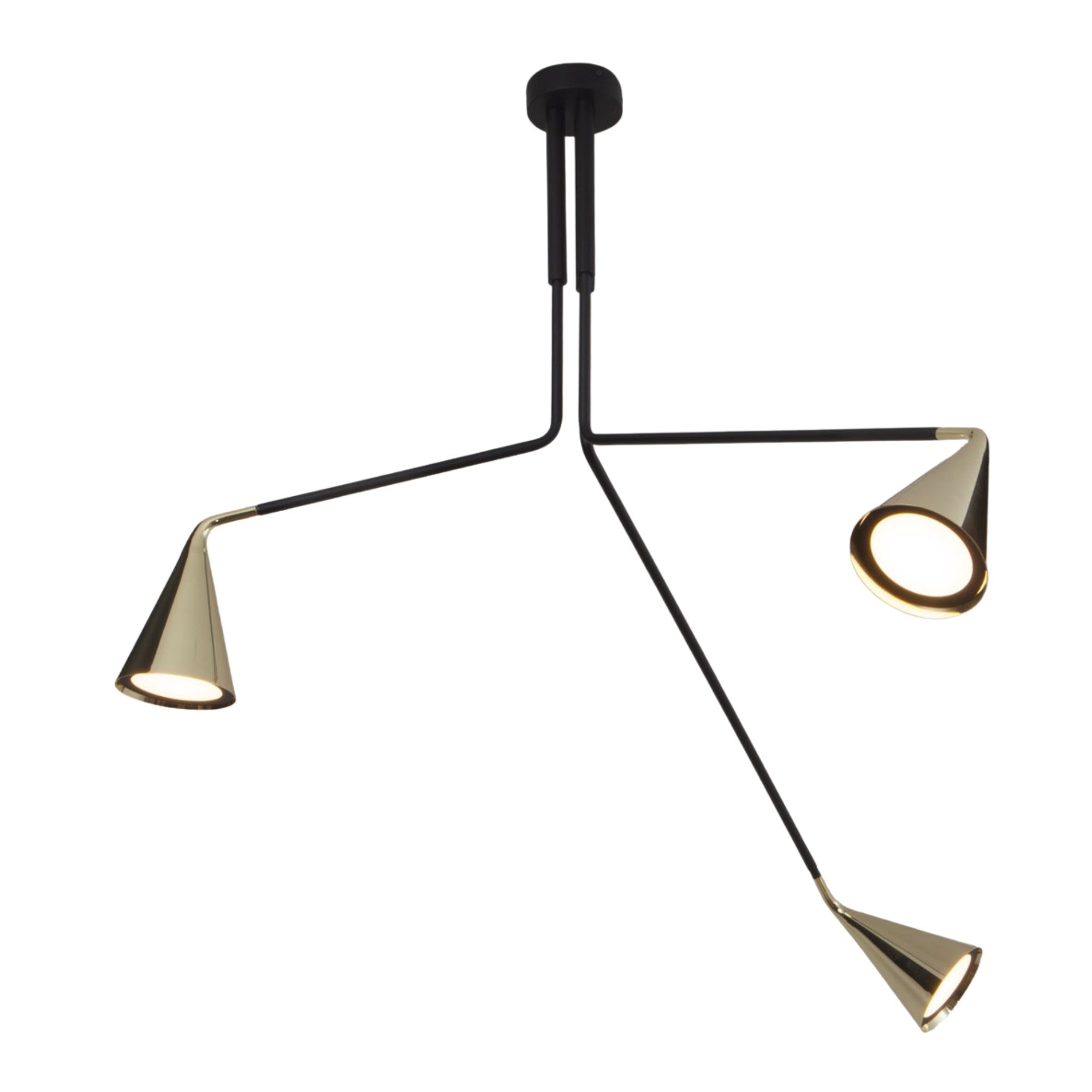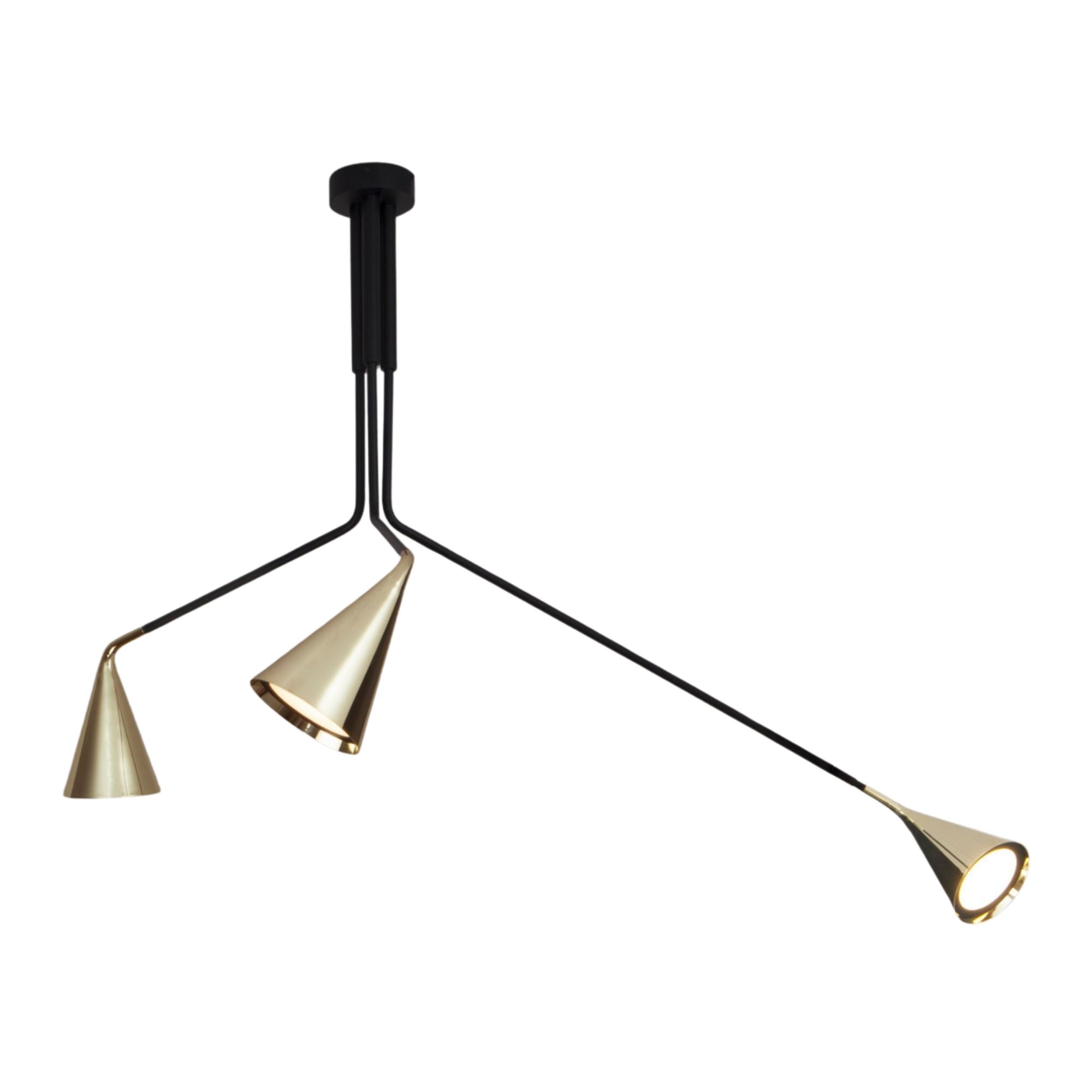 Gordon Chandelier by TOOY presents a contemporary reinterpretation of the classic conical diffuser, defined by refined metallic finishes and a bold, architectural silhouette. Its articulated arms and rotating light heads are 270 degree adjustable and allow for directional illumination, making it suitable for both residential and commercial environments.