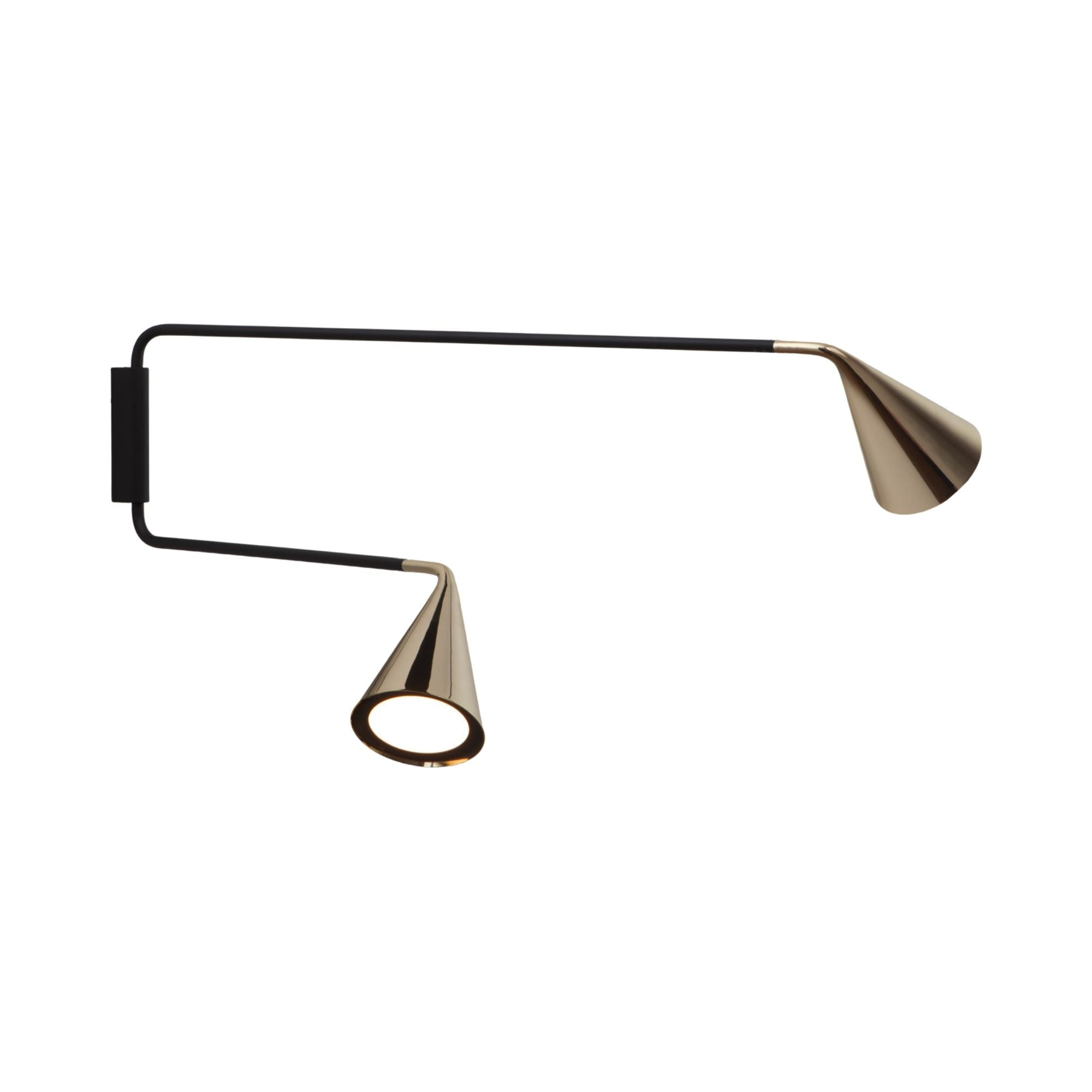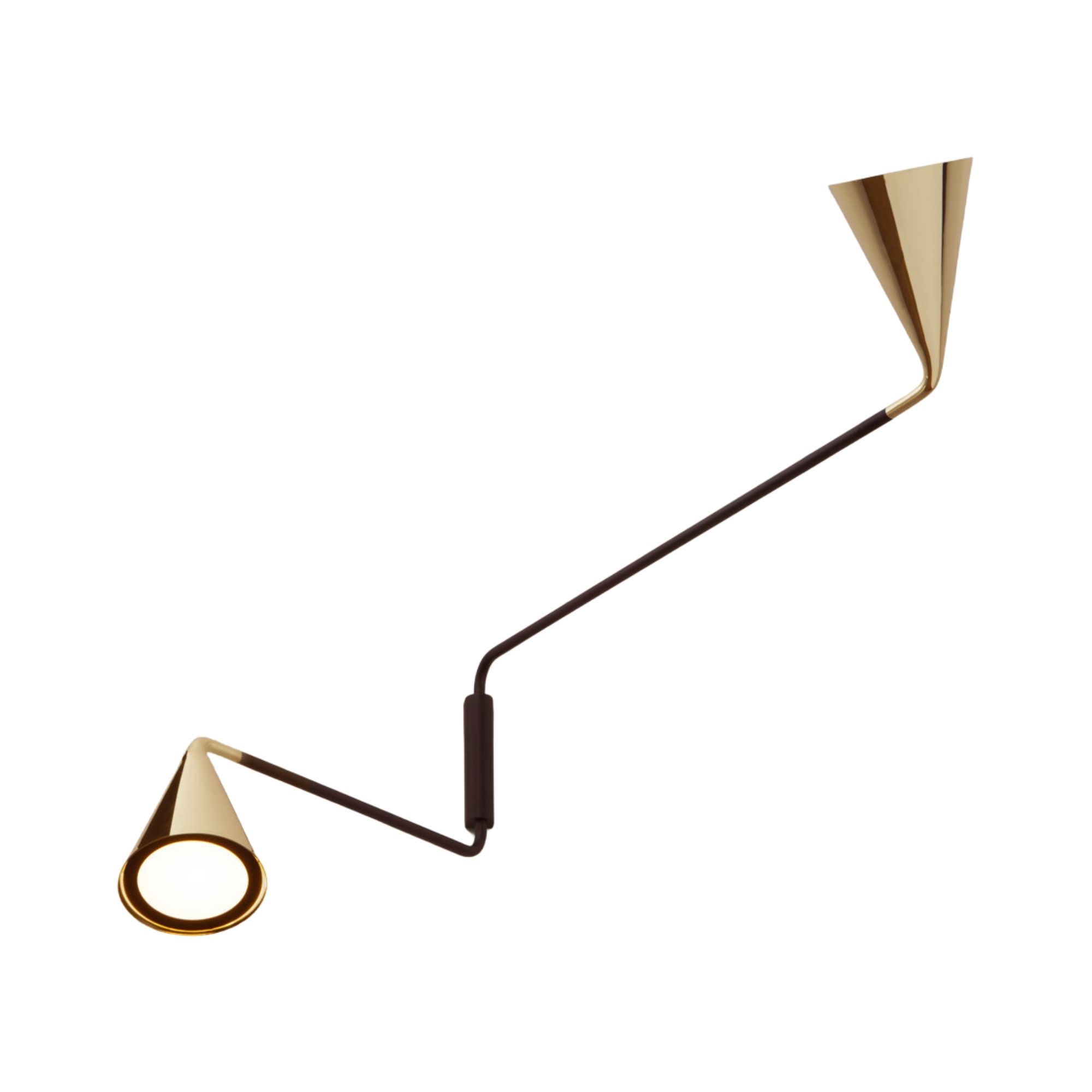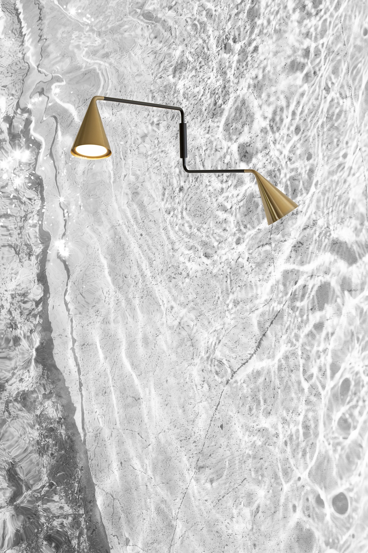 Gordon Double Wall Sconce by TOOY features the collection’s signature conical diffusers and refined brass detailing. The dual arm structure allows for adjustable directional lighting along two axes, offering both sculptural presence and practical illumination for residential or commercial spaces. This sculptural fixture is also the holder of a Gold German Design Award.