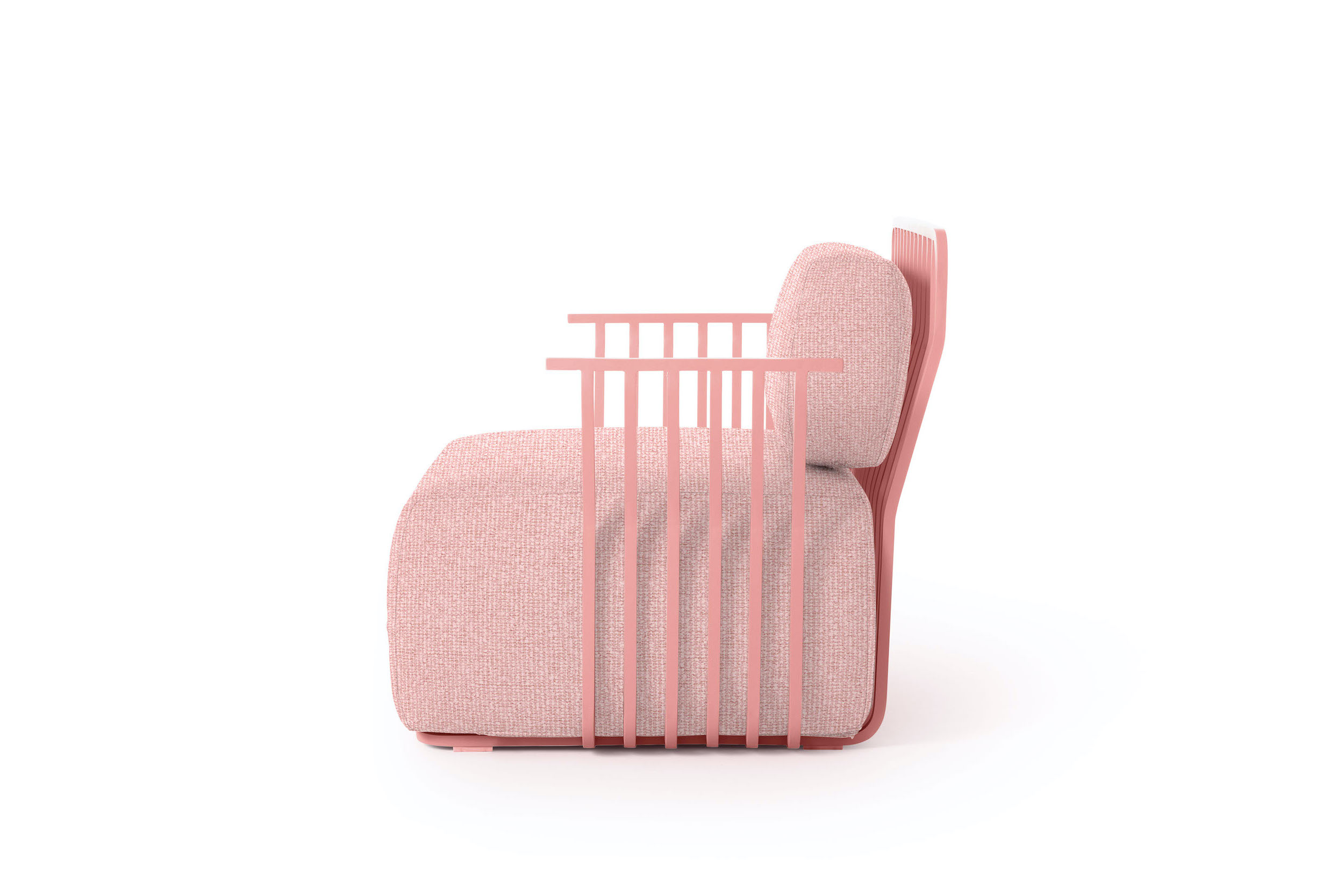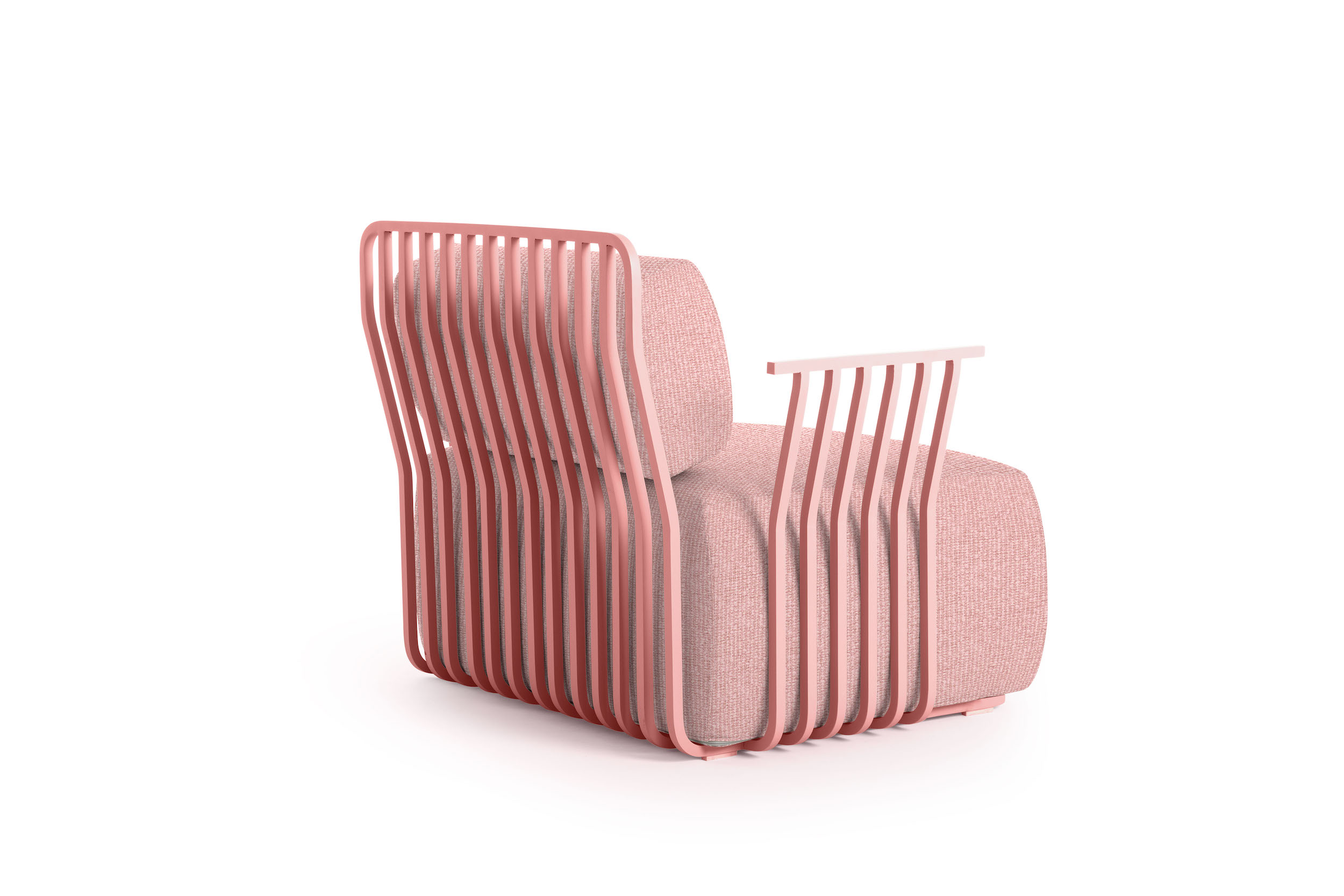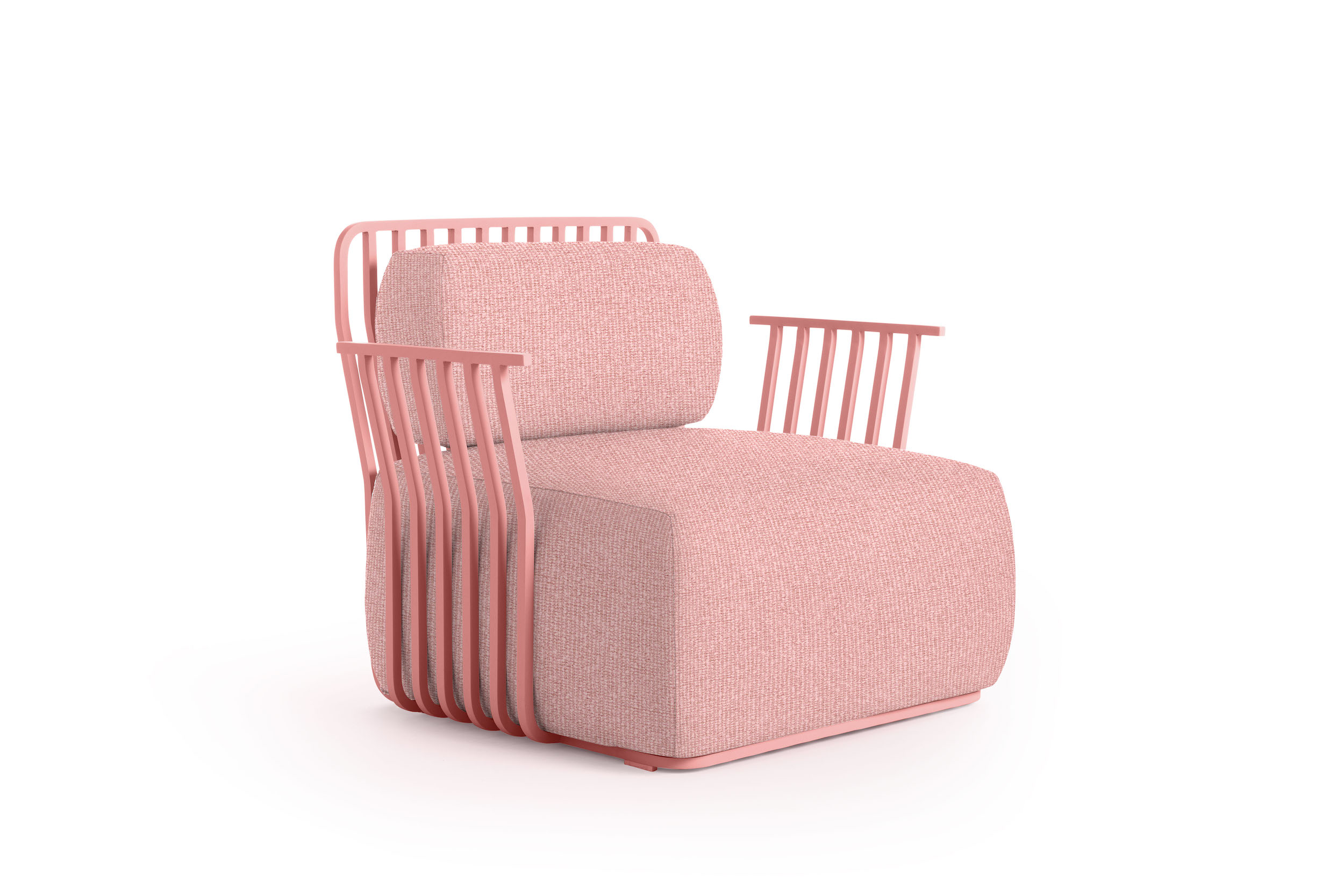 The lightness of the aluminium structure of the Grill armchair with armrests makes it an easy-to-transport outdoor furniture, perfect for spaces that need to be reconfigured regularly, such as hotels, restaurants, beach clubs and other contract areas.