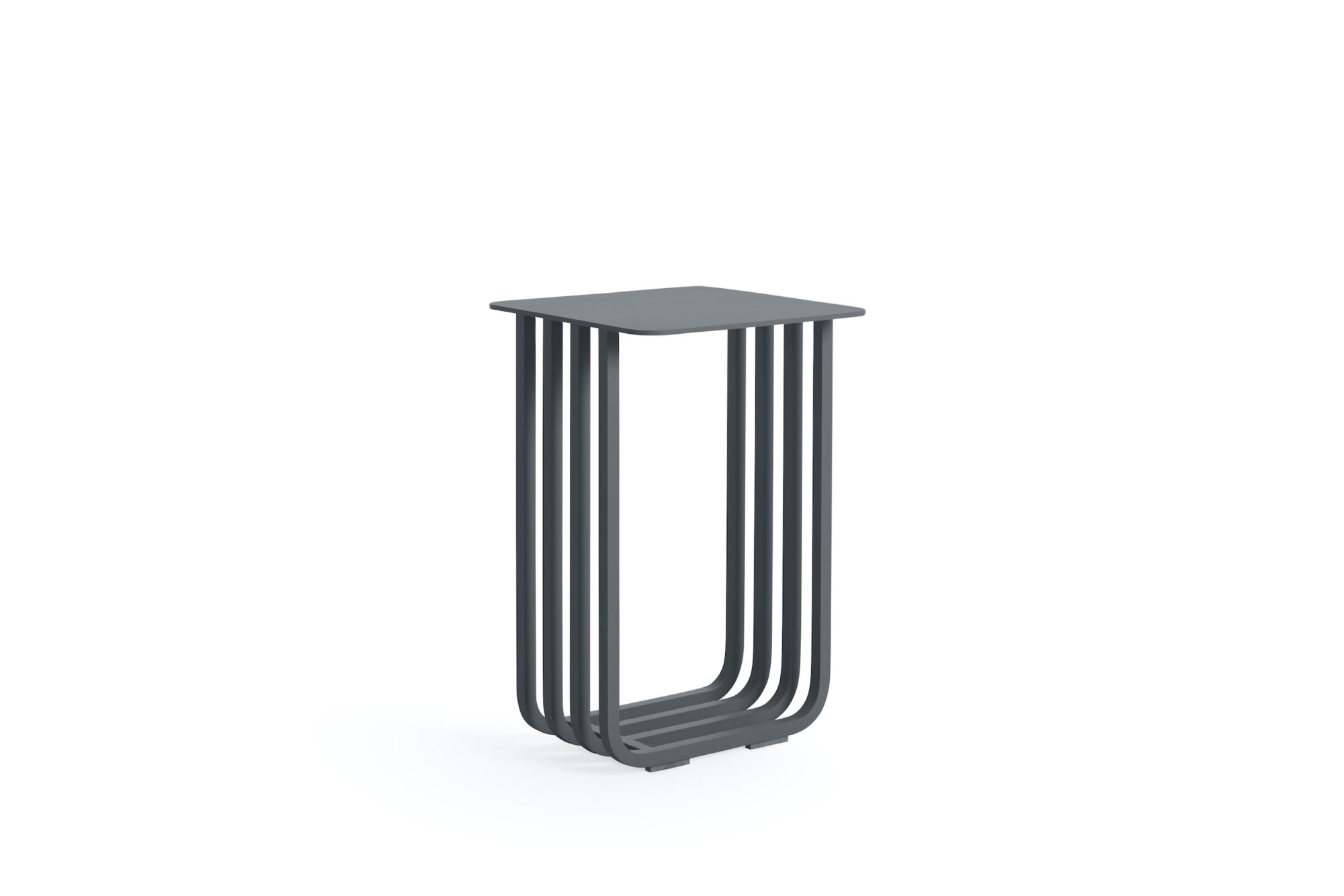 The Grill side table has an original aluminium structure with a square section, thermo-lacquered and textured to avoid fingerprints and scratches.