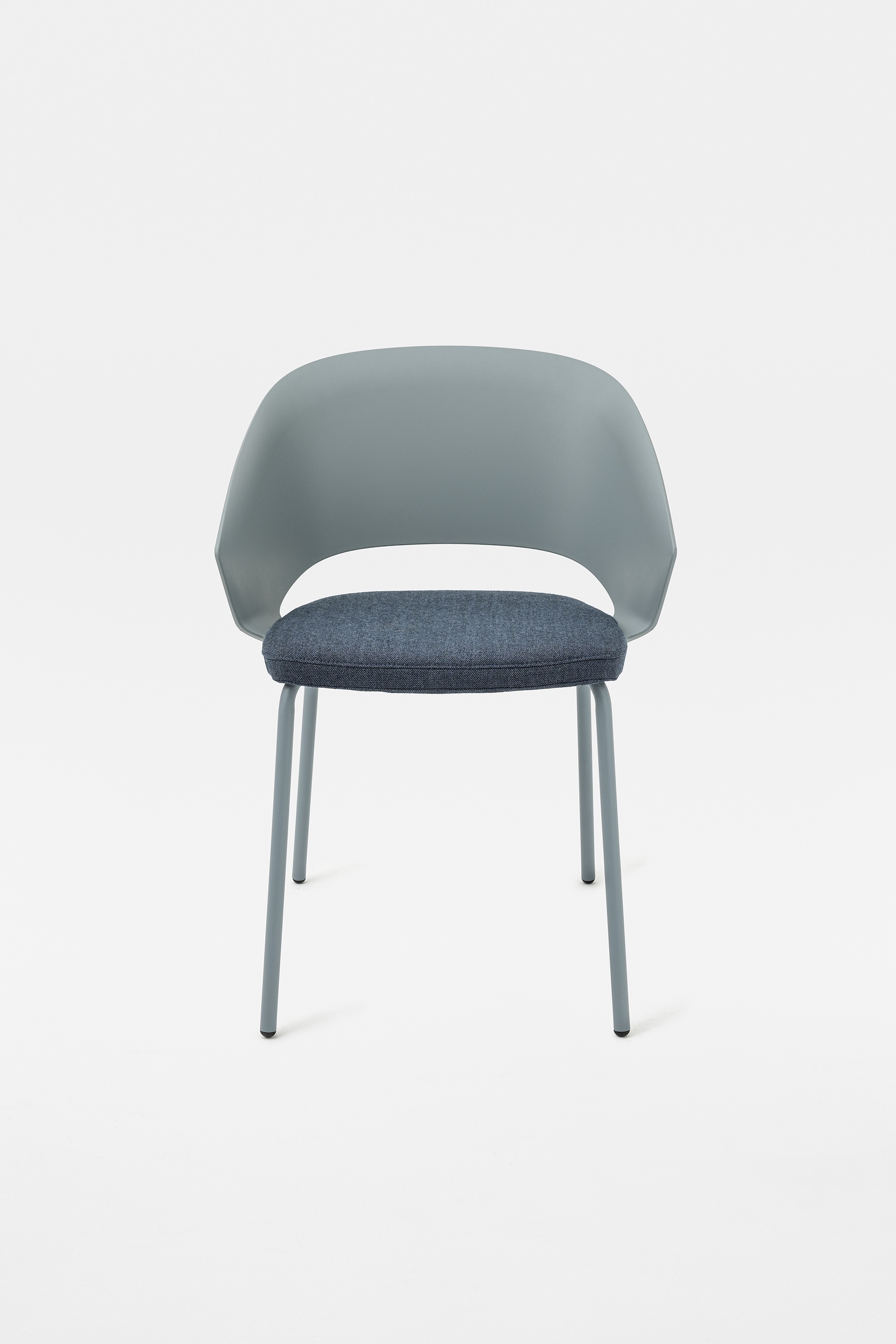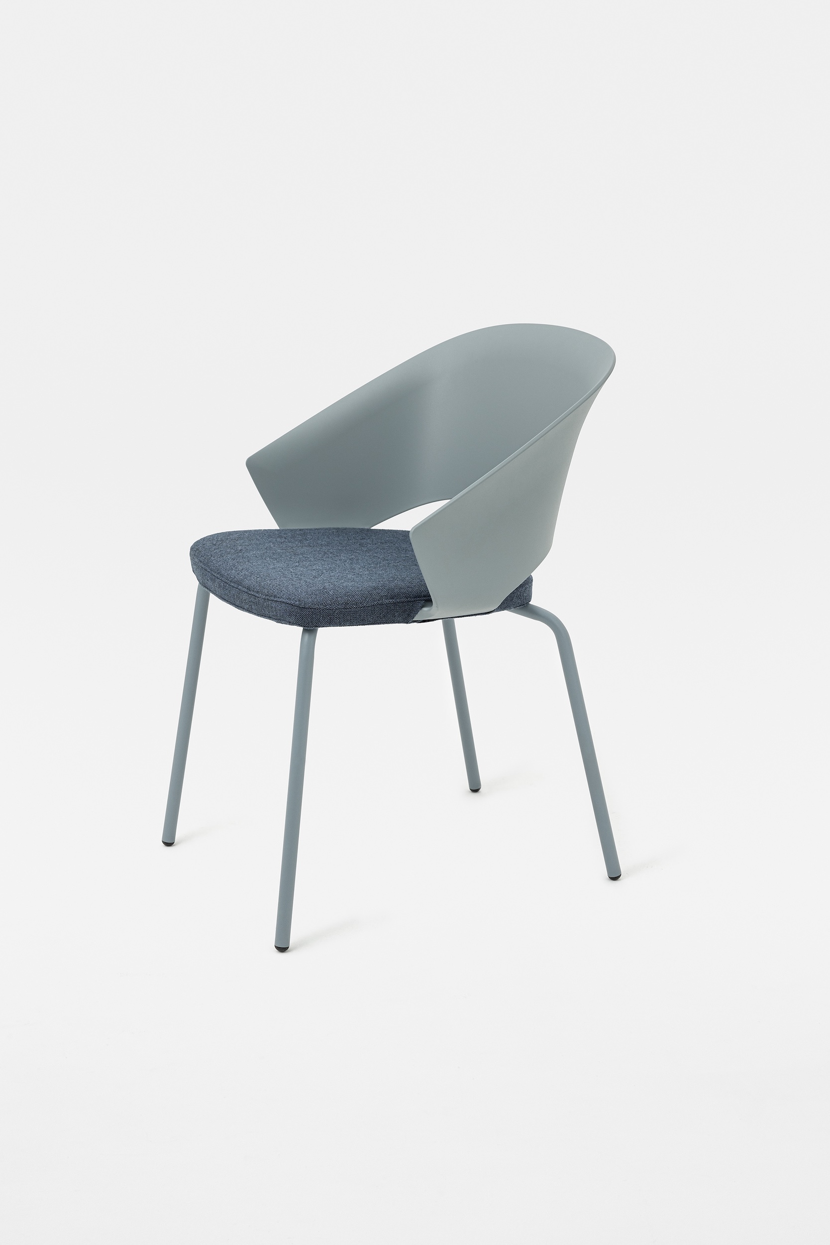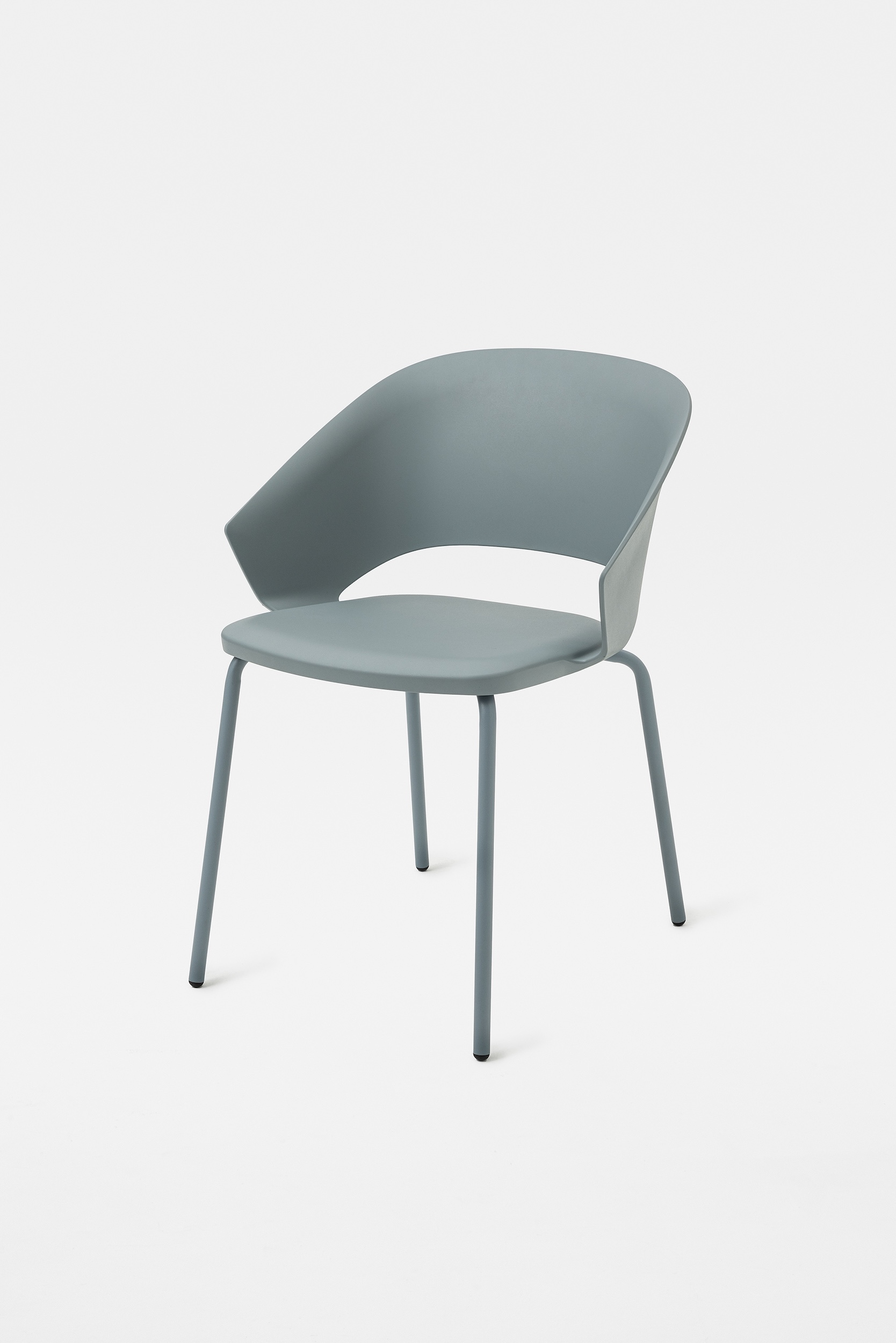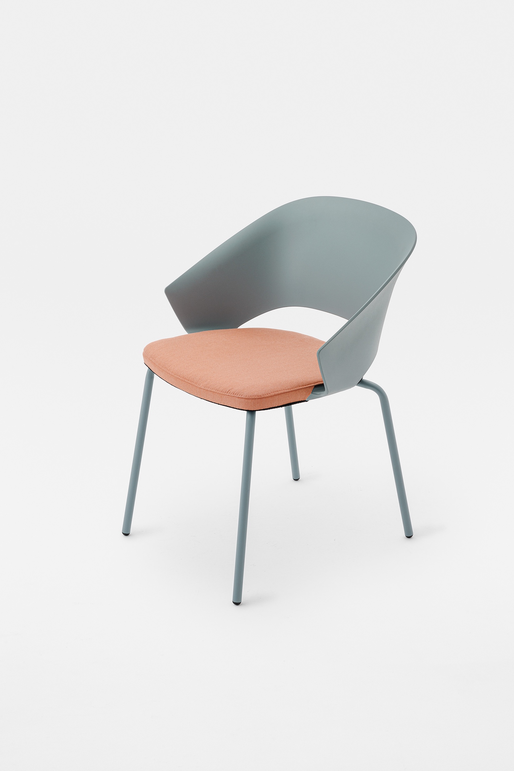 The detail of the inclined backrest is taken up from the original model to form the armrests, culminating in a moulding that literally embraces the seat. Echoing the armchair, the search for the same ergonomics is concealed in the controlled movement that supports the posture and enhances the comfort of the chair.