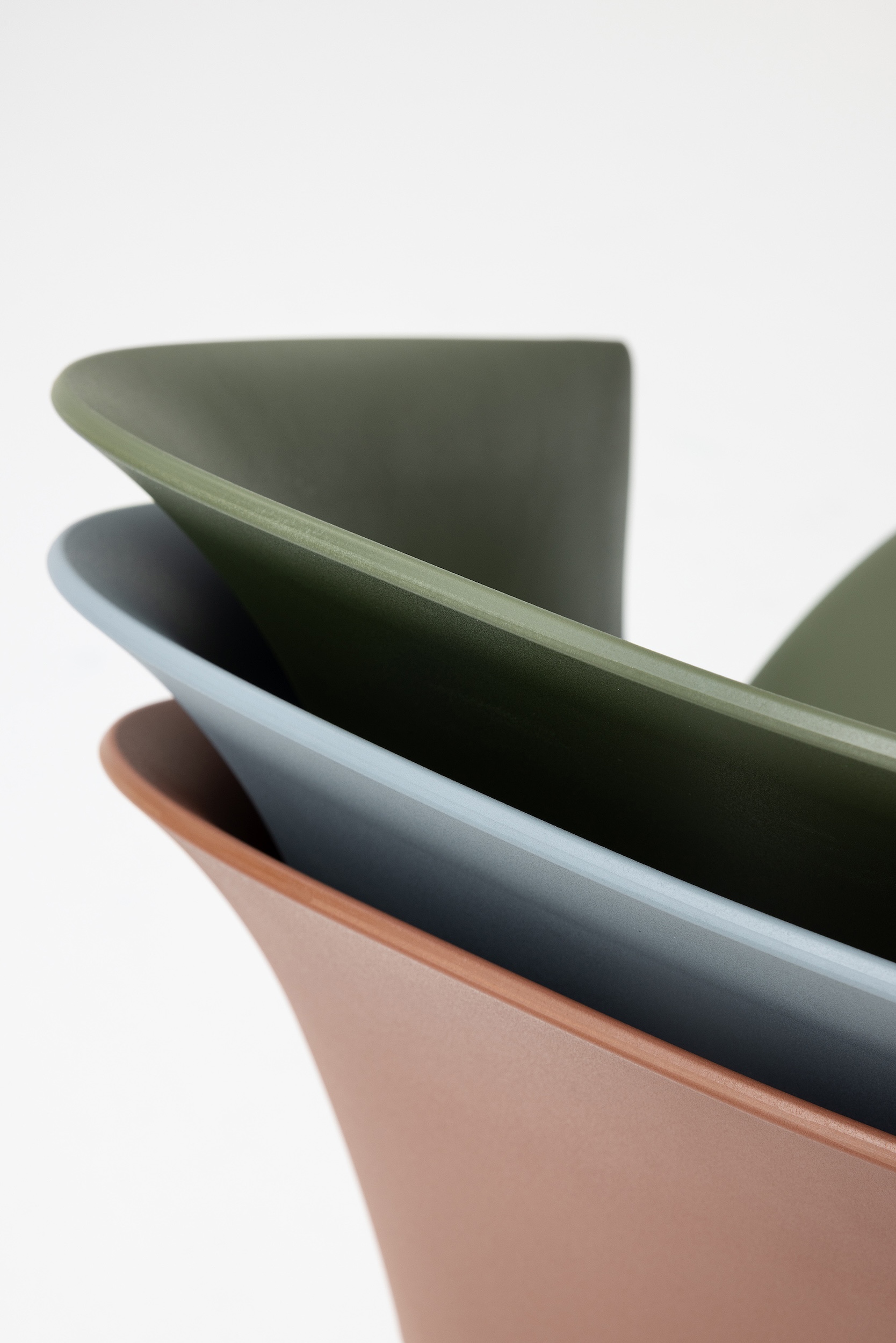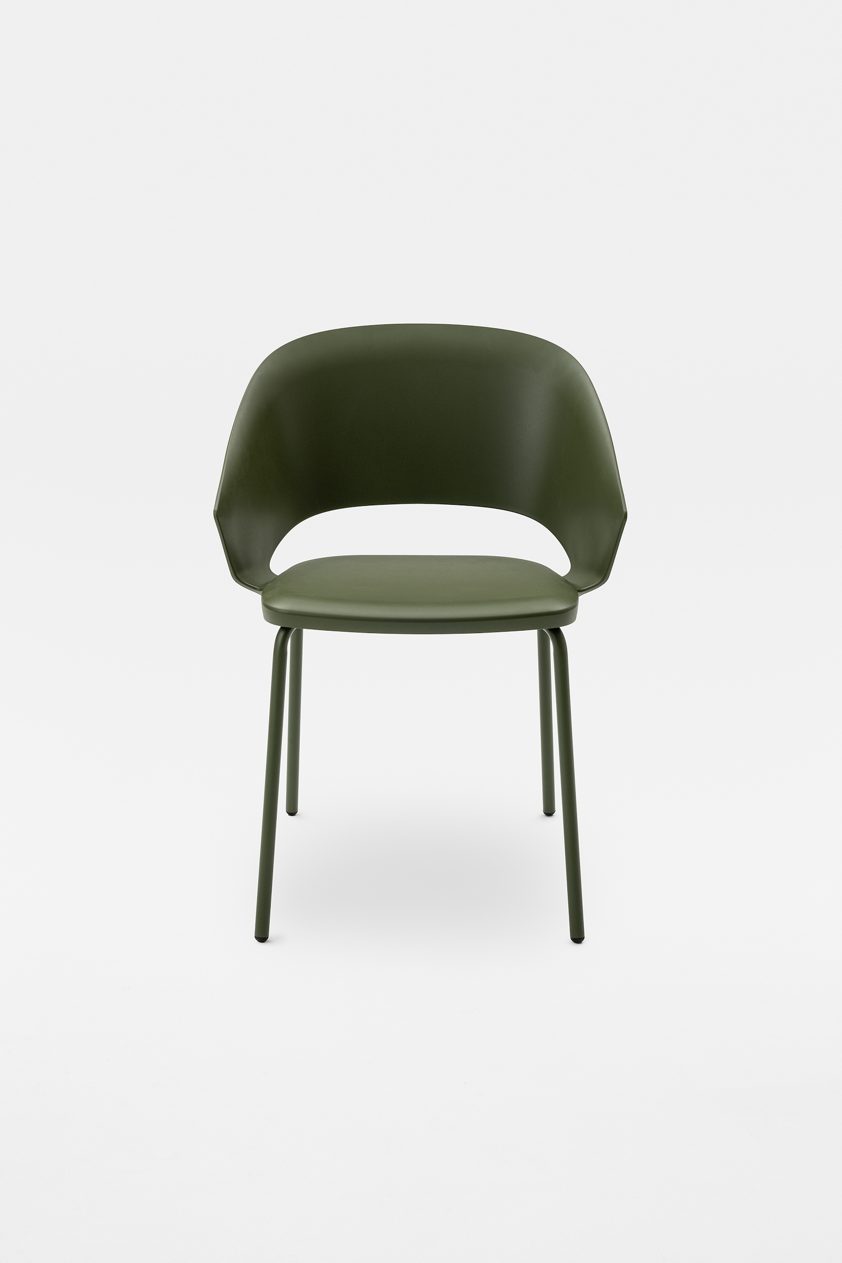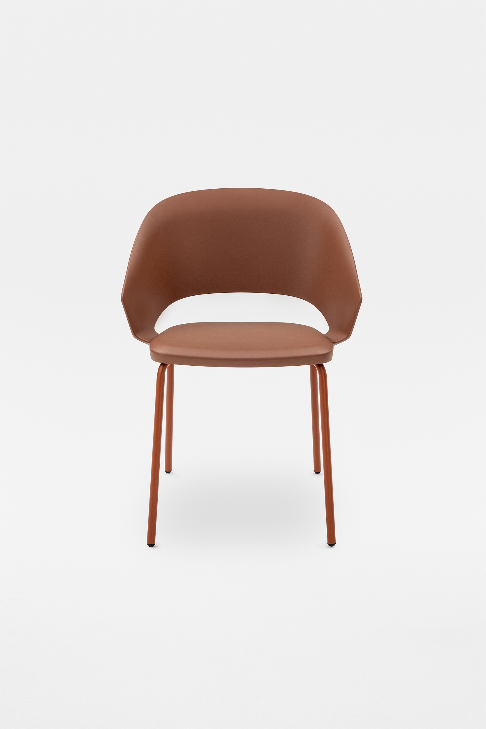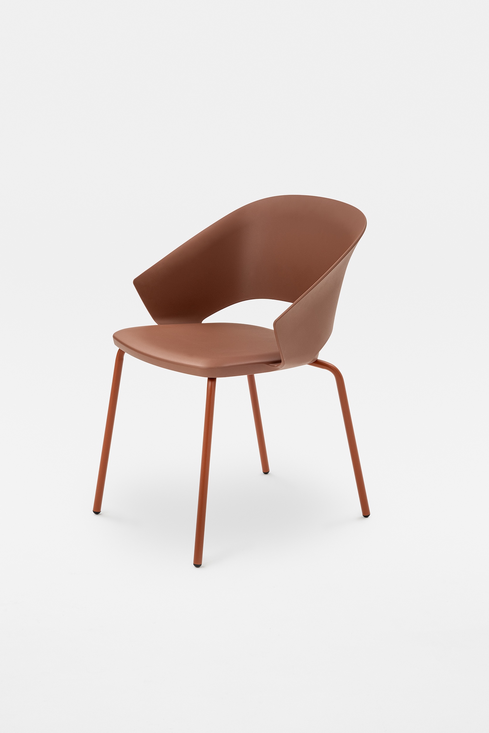 The detail of the inclined backrest is taken up from the original model to form the armrests, culminating in a moulding that literally embraces the seat. Echoing the armchair, the search for the same ergonomics is concealed in the controlled movement that supports the posture and enhances the comfort of the chair.