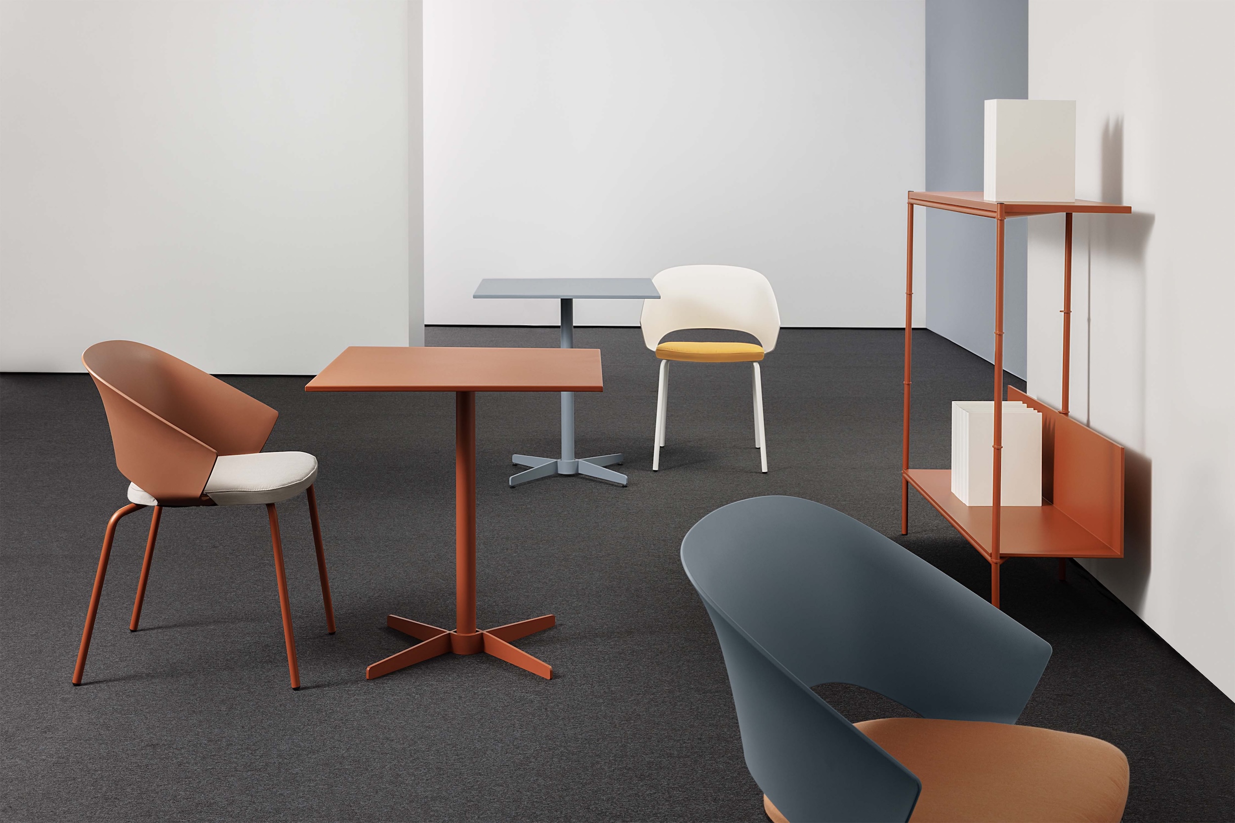Collections of tables, seating and complements distributed all over the world to furnish stimulating environments in which to live and work, improving the well-being and comfort of people.