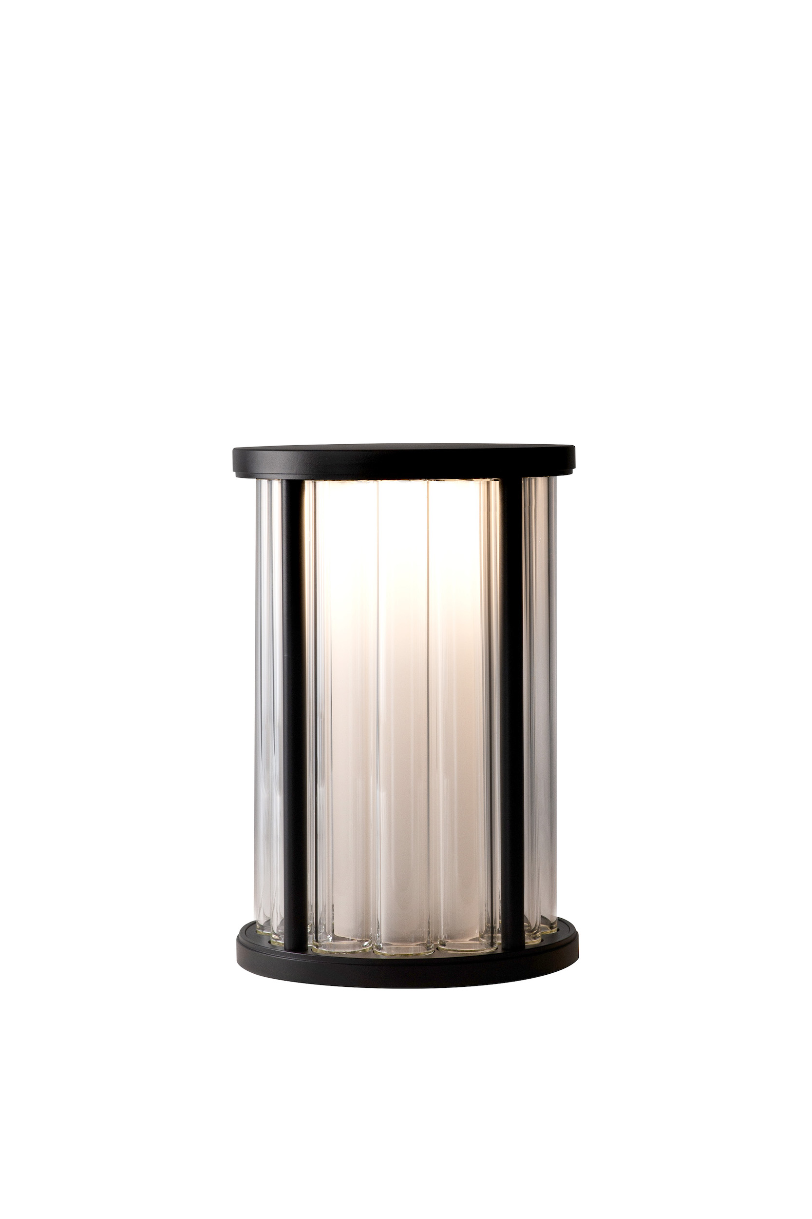 An option to interchange outer glass tubes with opaque columns allows control over lighting directionality.