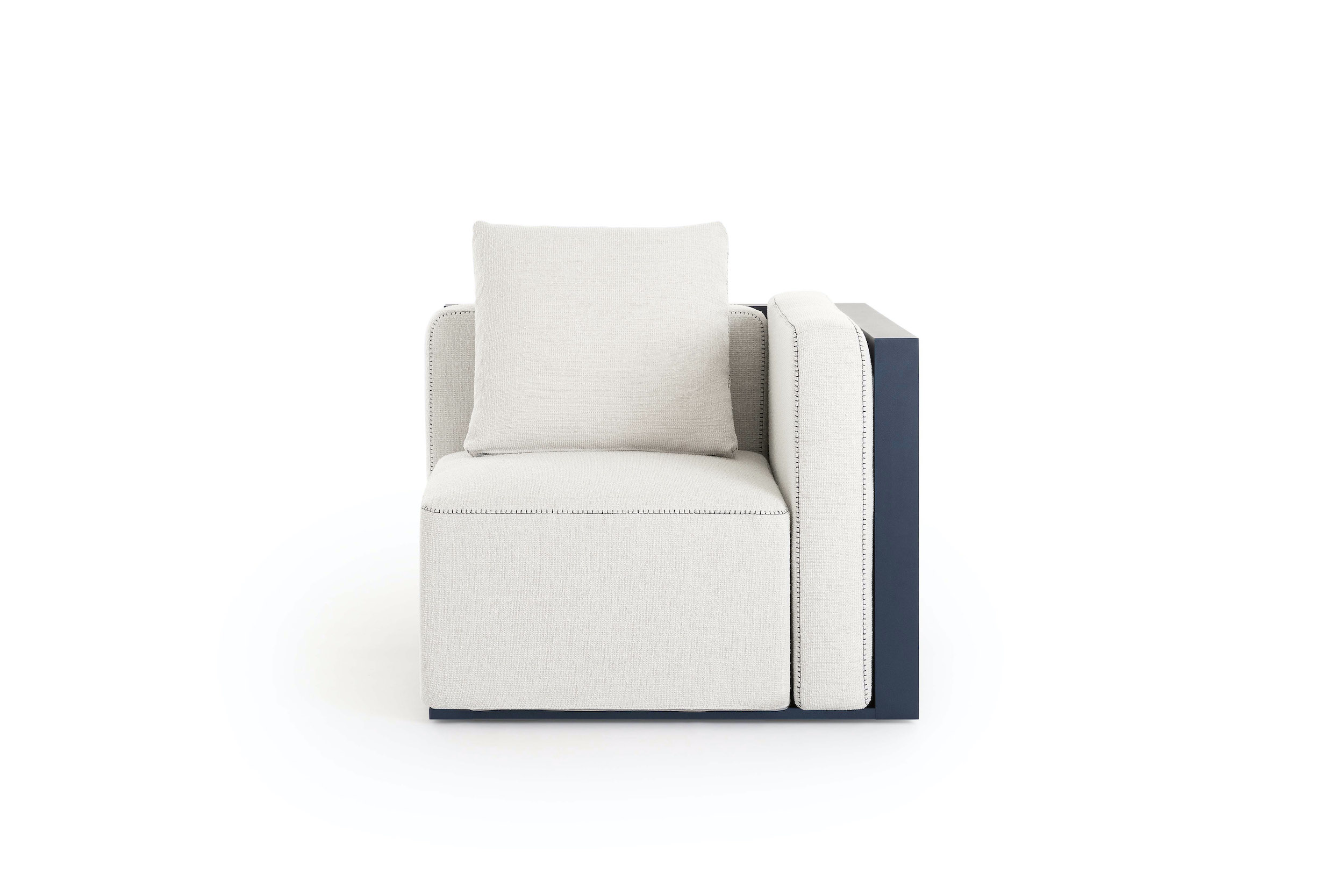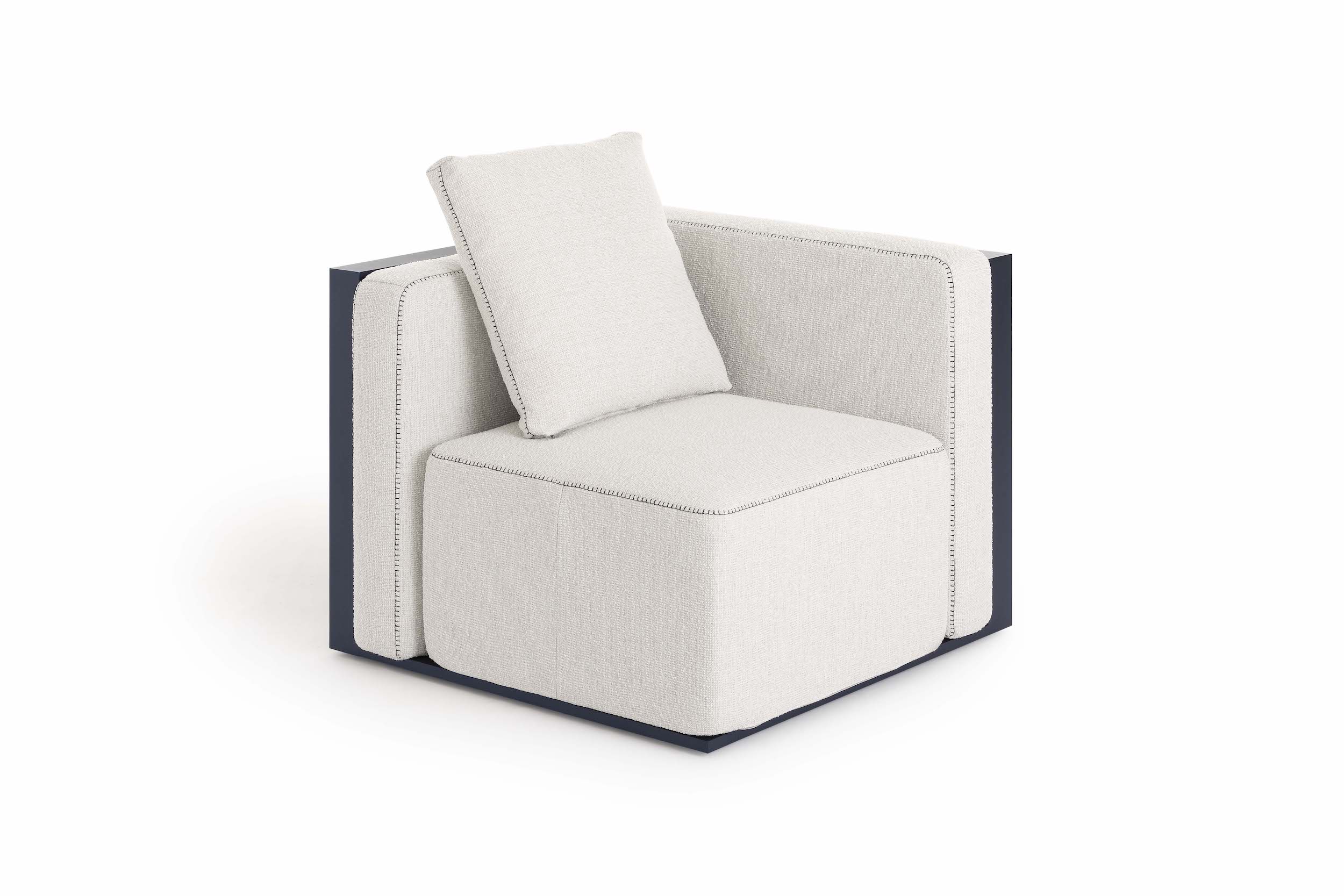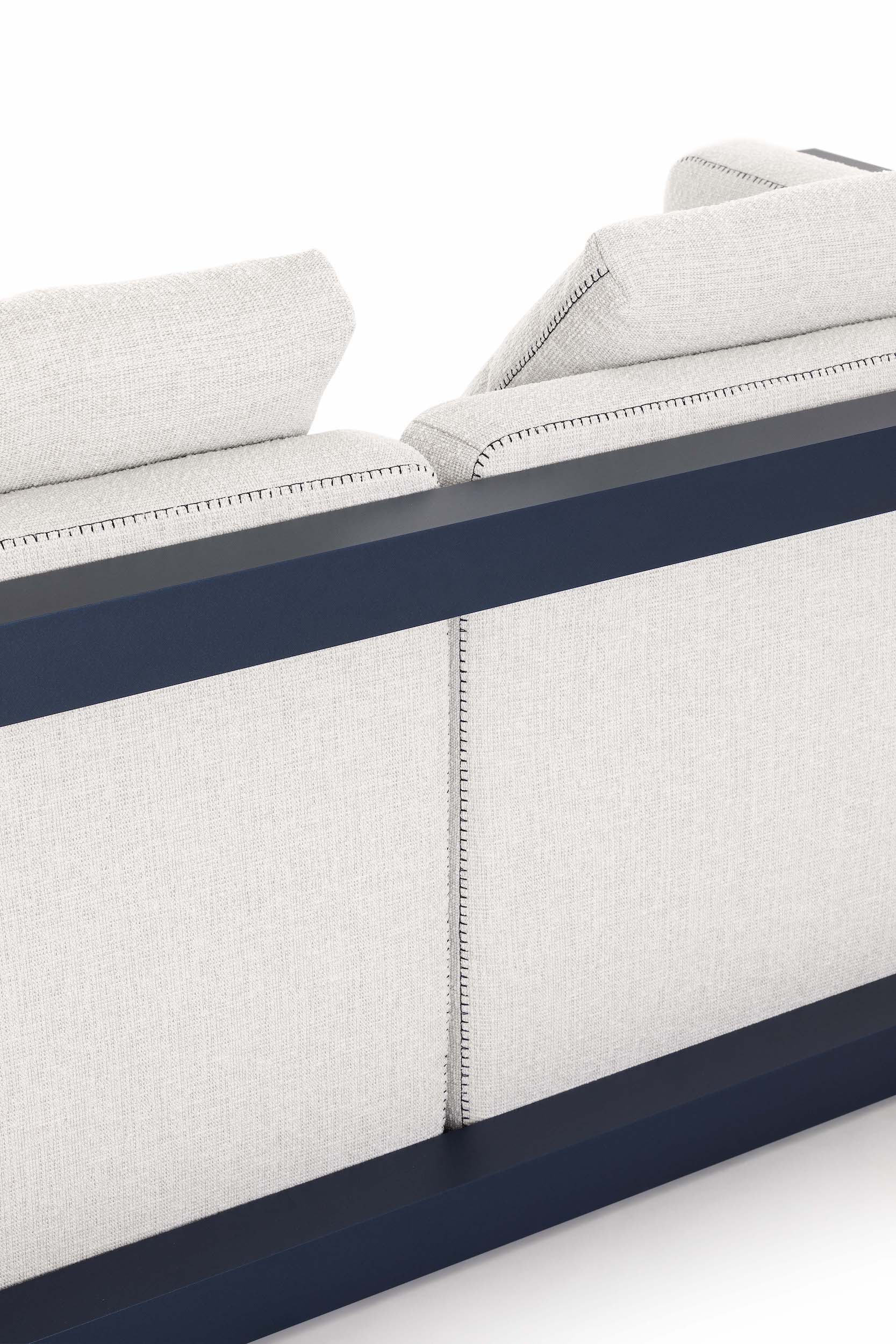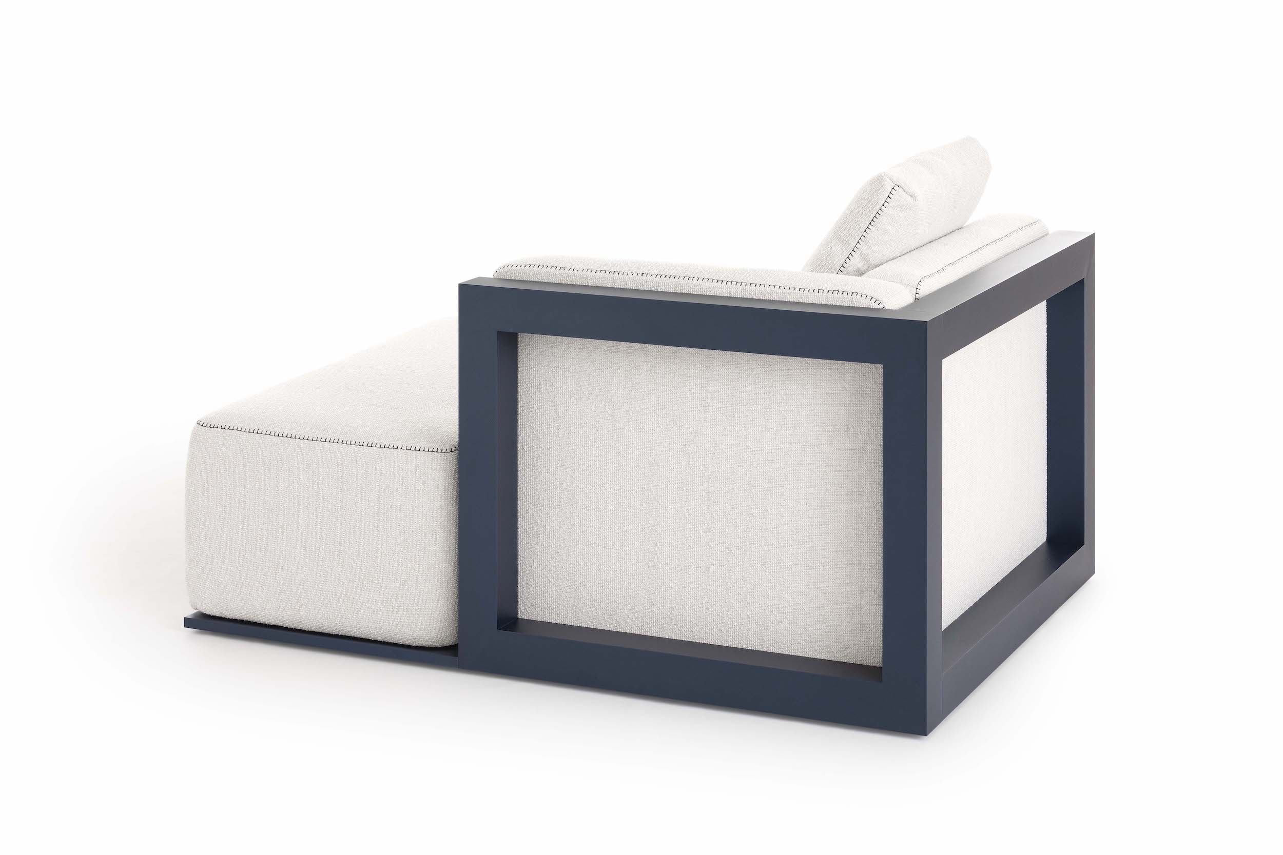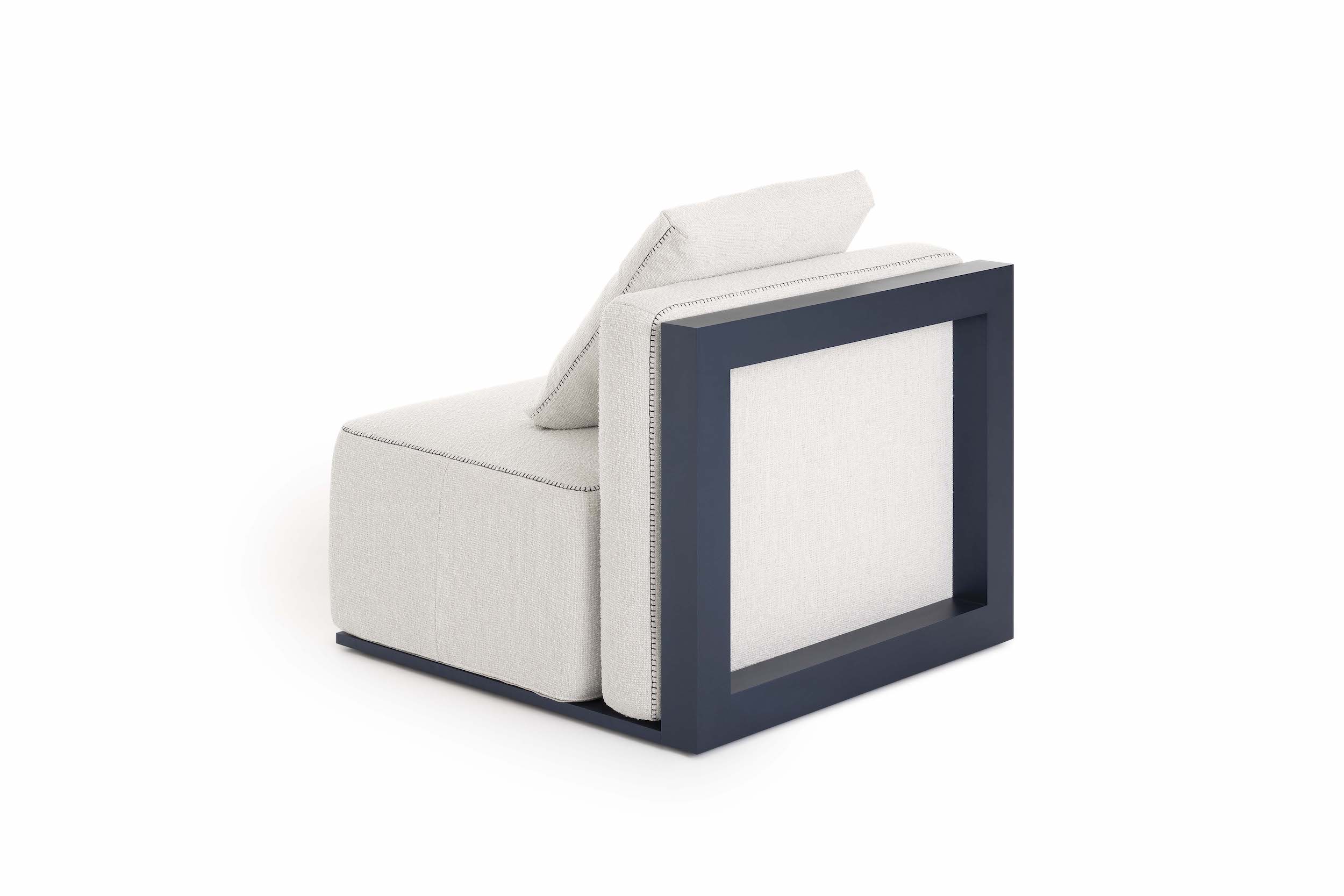 The Islablanca modular sofa is the ideal piece of furniture that adapts to any environment, from private interiors to large contract surfaces. Its upholstery has an original decorative stitching and its aluminium structure is also available in a midnight blue tone that gives it great personality.