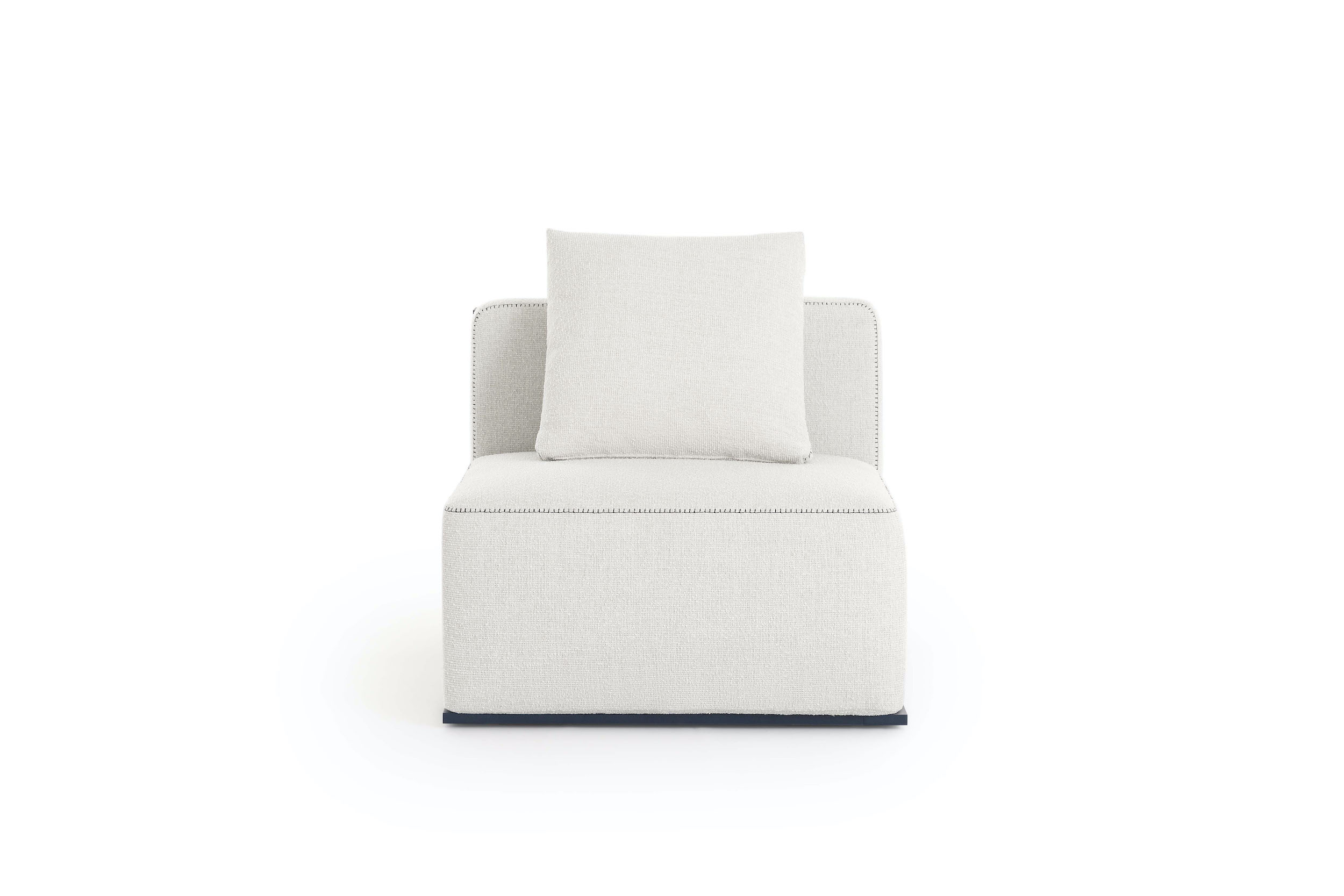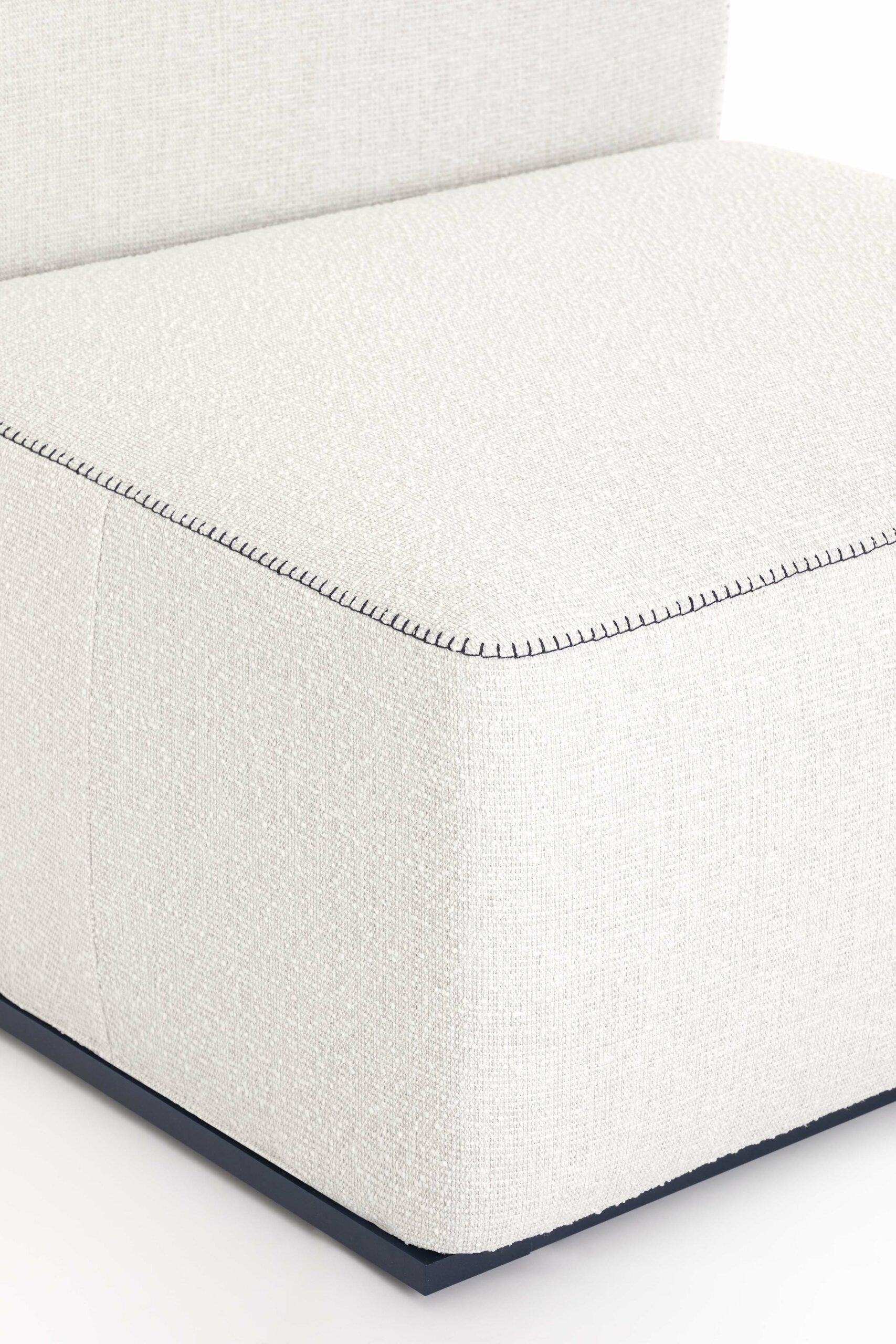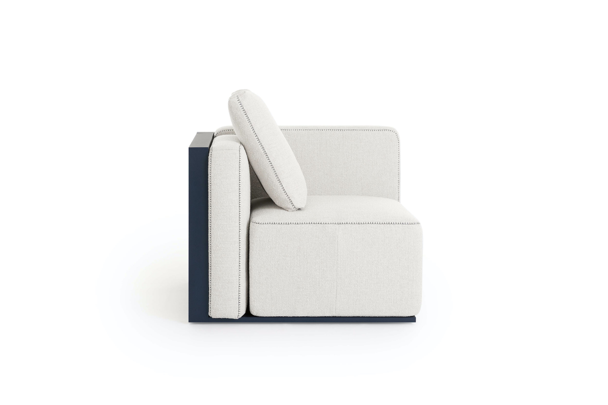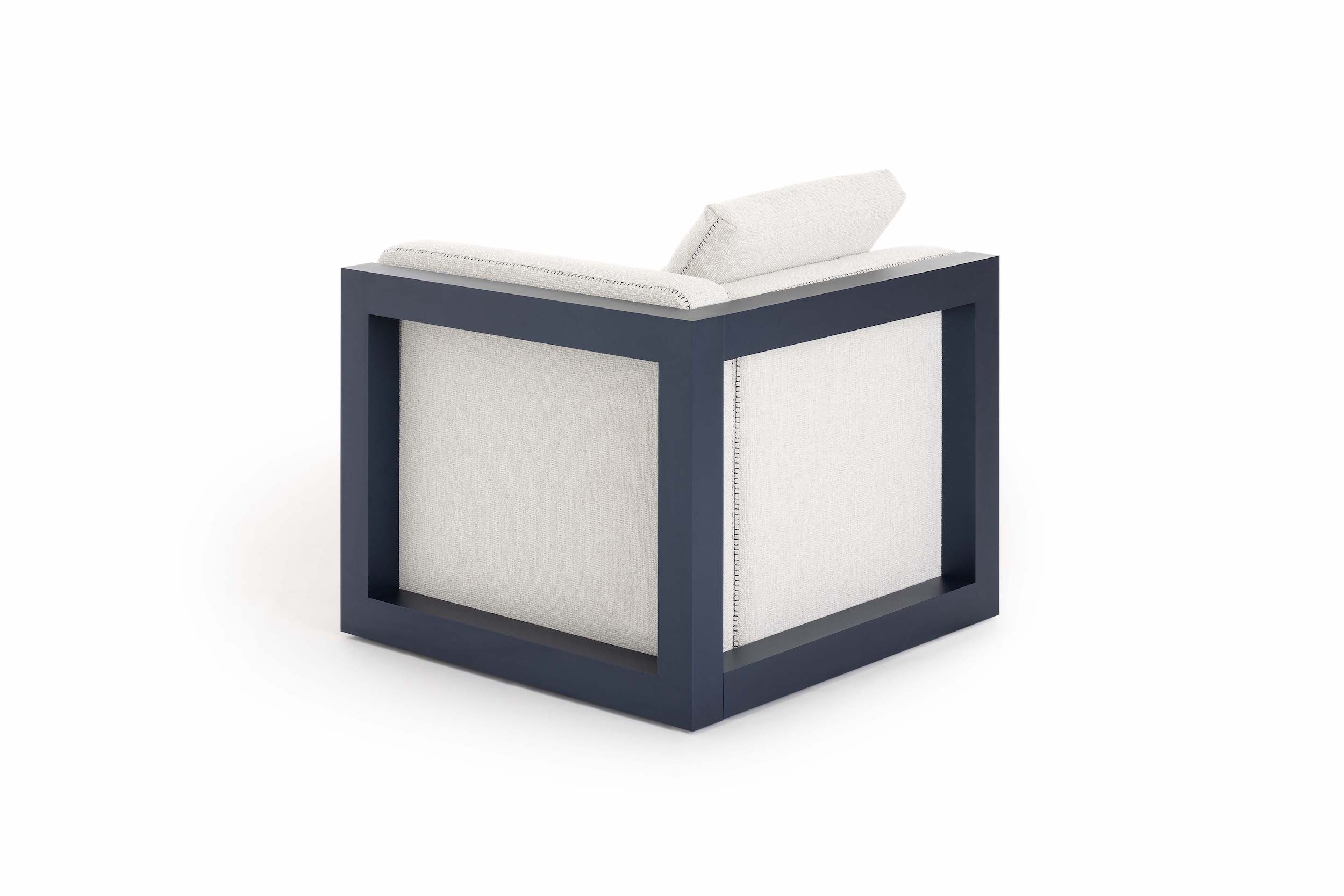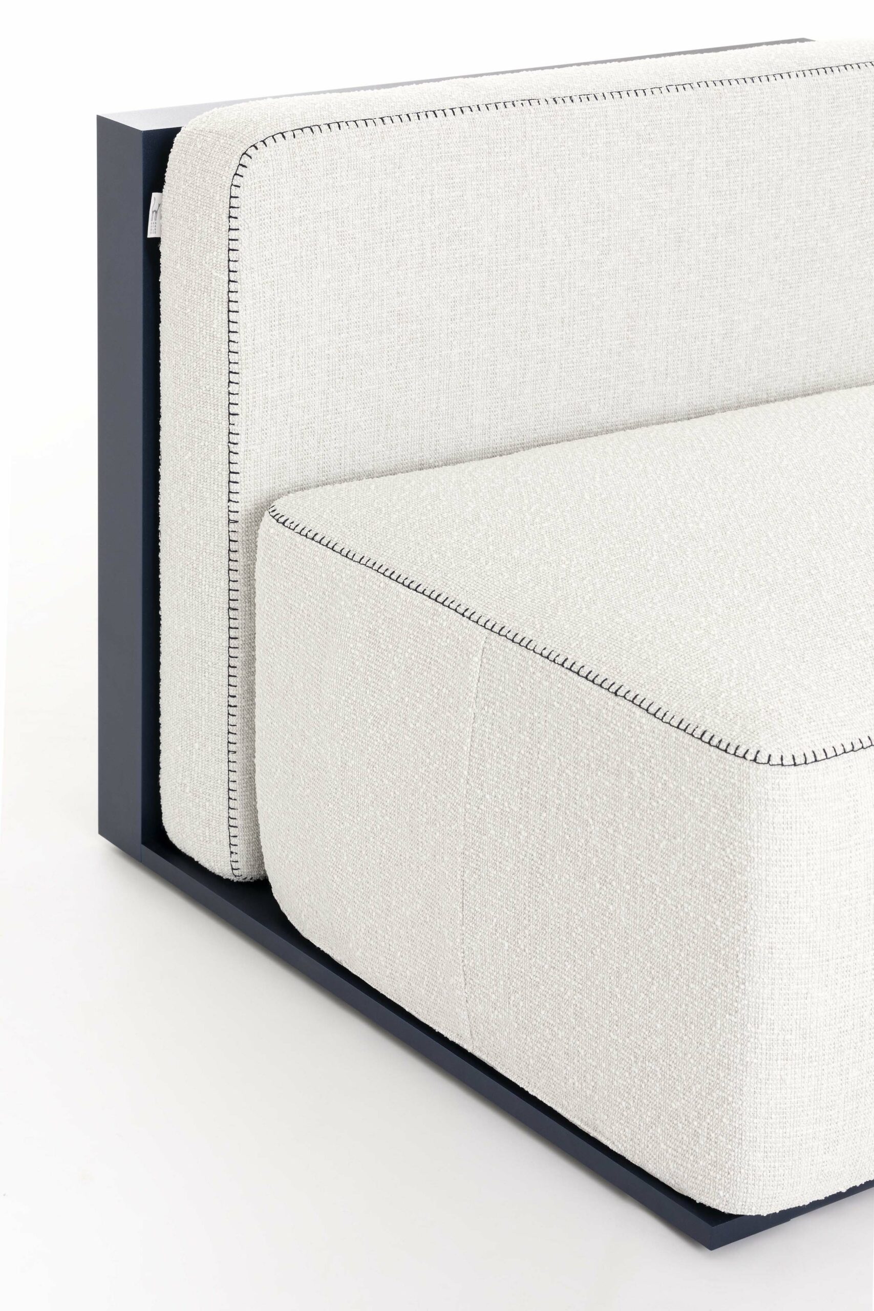 The Islablanca modular sofa is the ideal piece of furniture that adapts to any environment, from private interiors to large contract surfaces. Its upholstery has an original decorative stitching and its aluminium structure is also available in a midnight blue tone that gives it great personality.