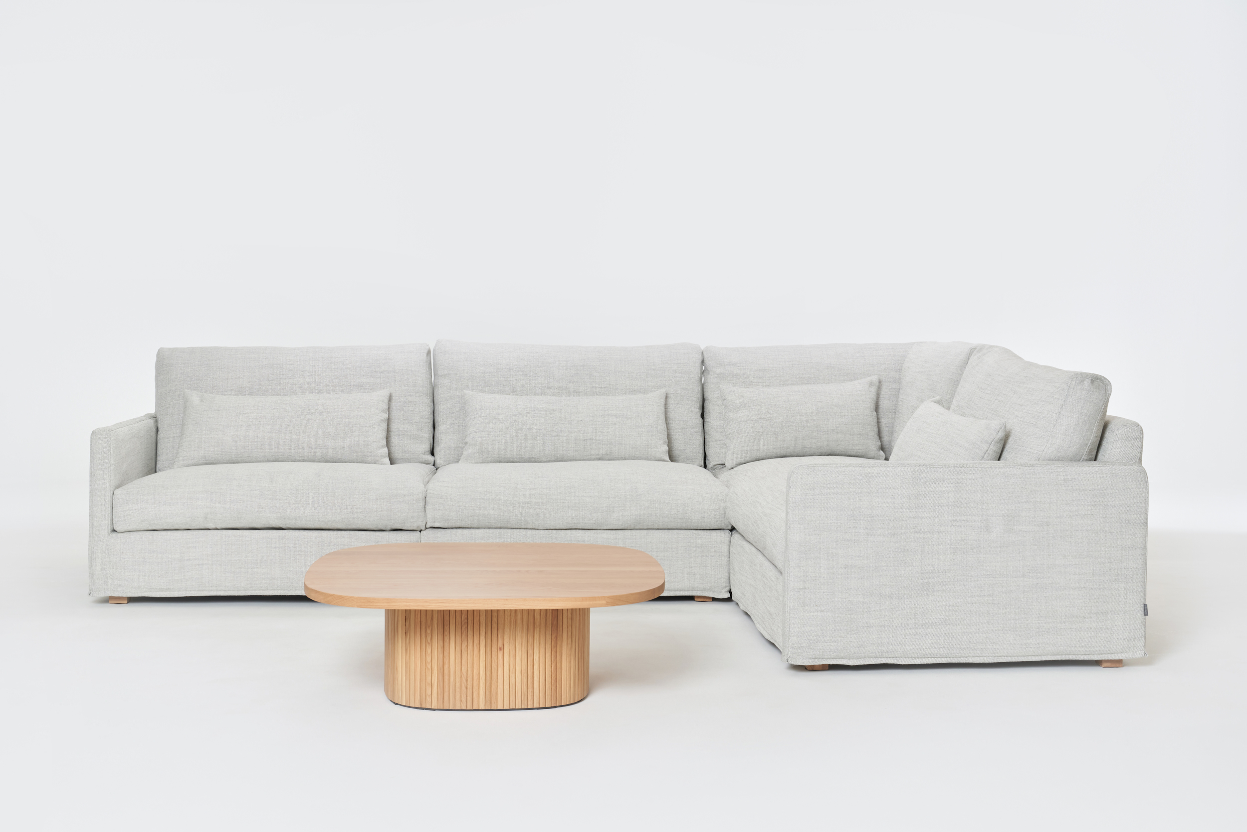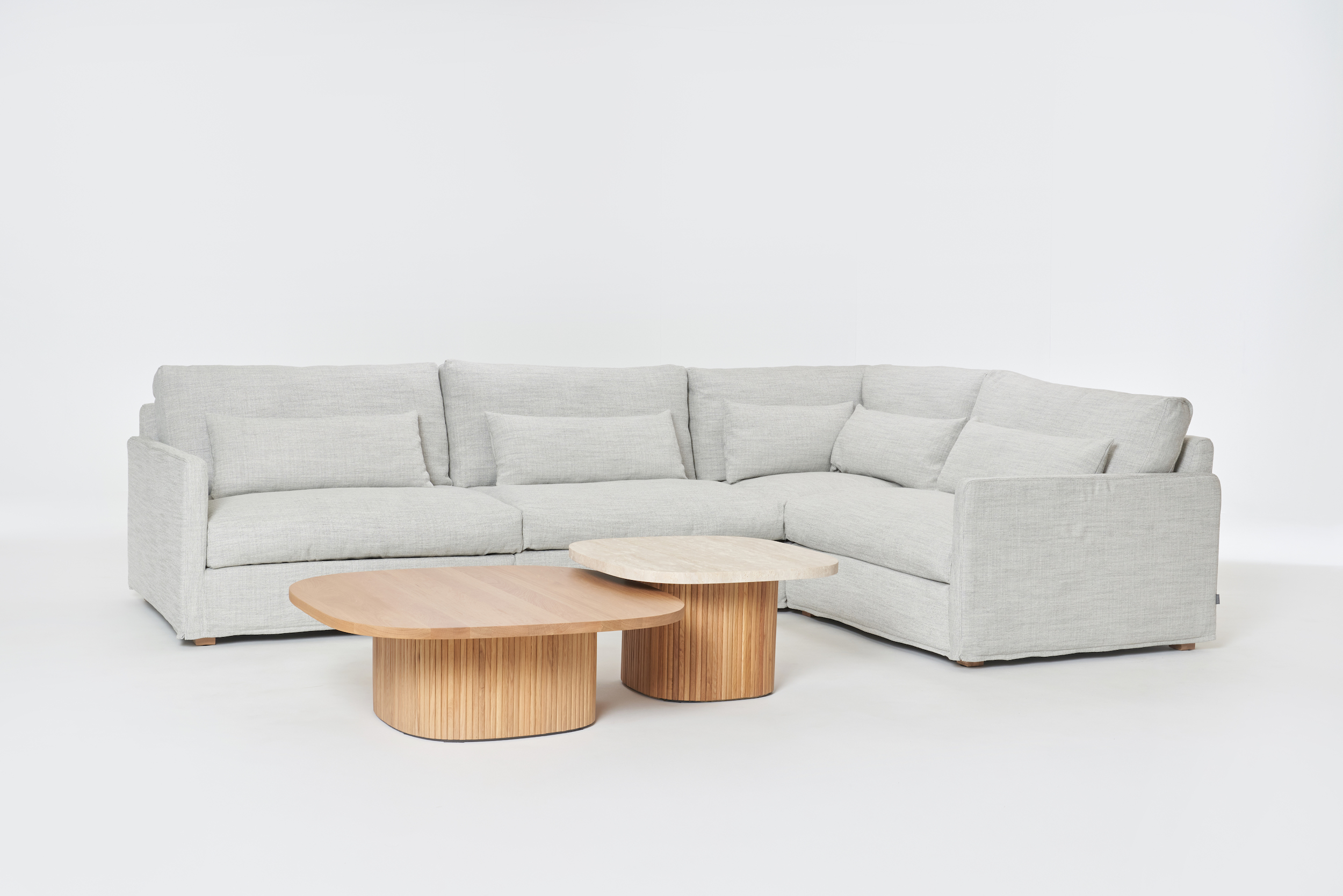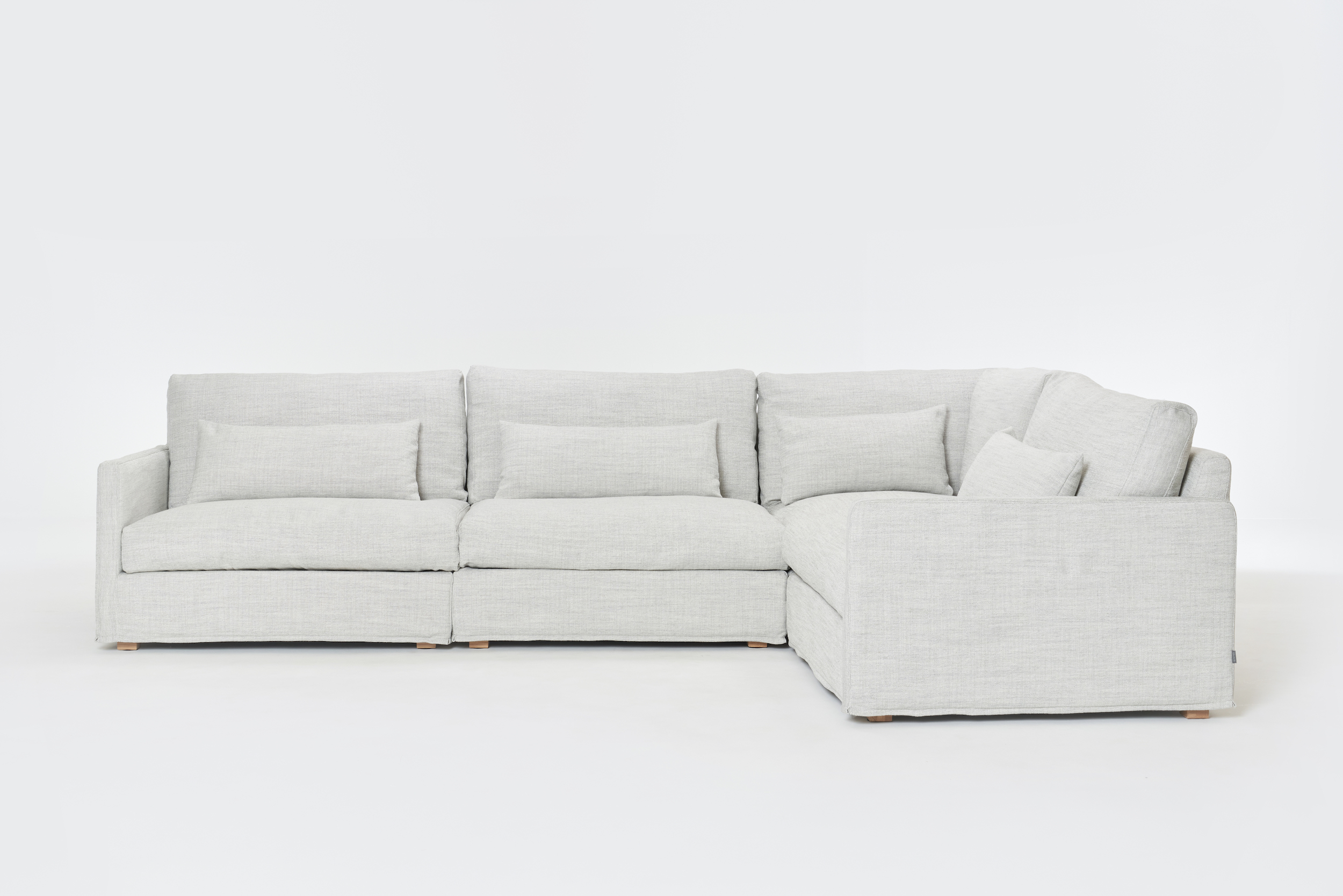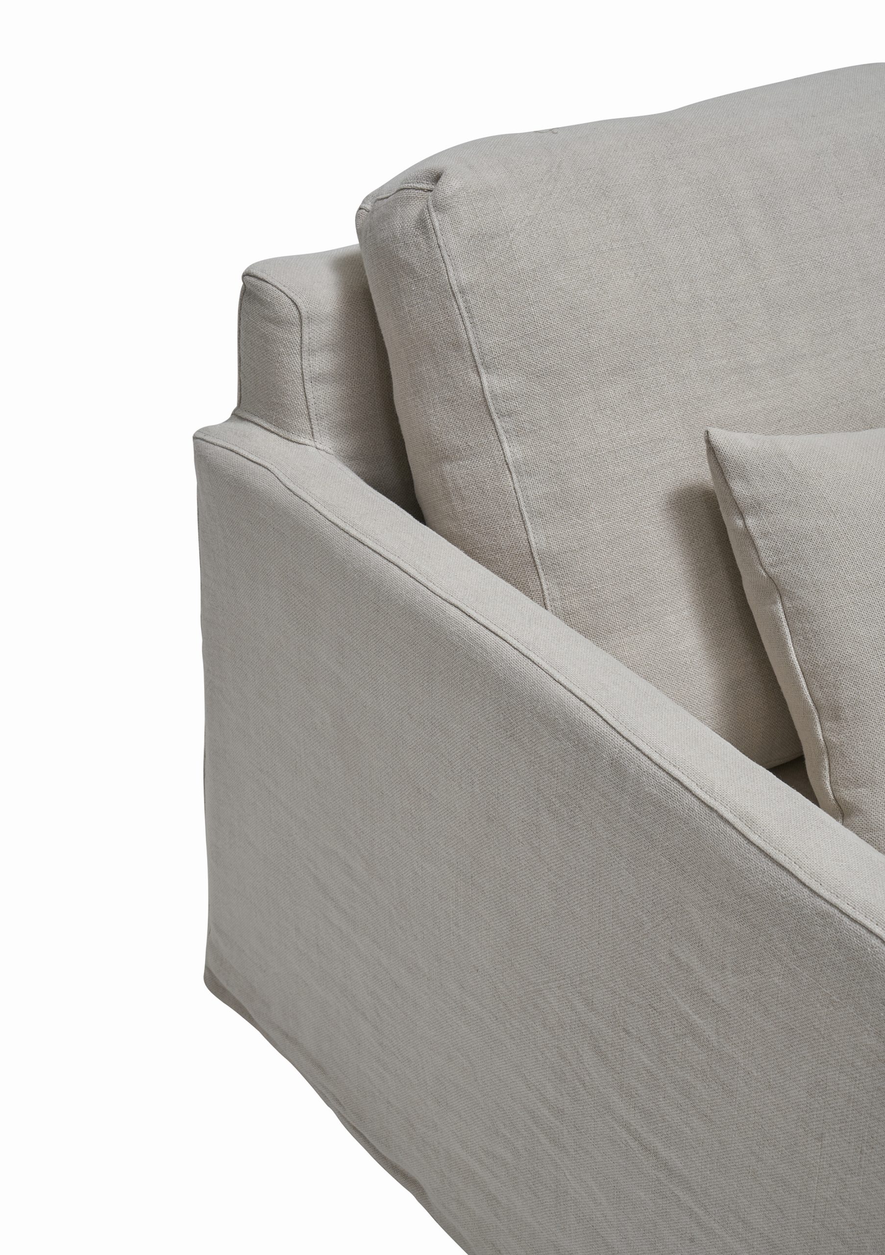 Its modular design includes various components—armless, corner, and arm units, plus an ottoman allowing you to create personalised configurations to suit any space. The five modules can be combined together to make unlimited configurations. The fully removable linen slipcovers available in a range of natural tones, make it easy to clean or update over time.