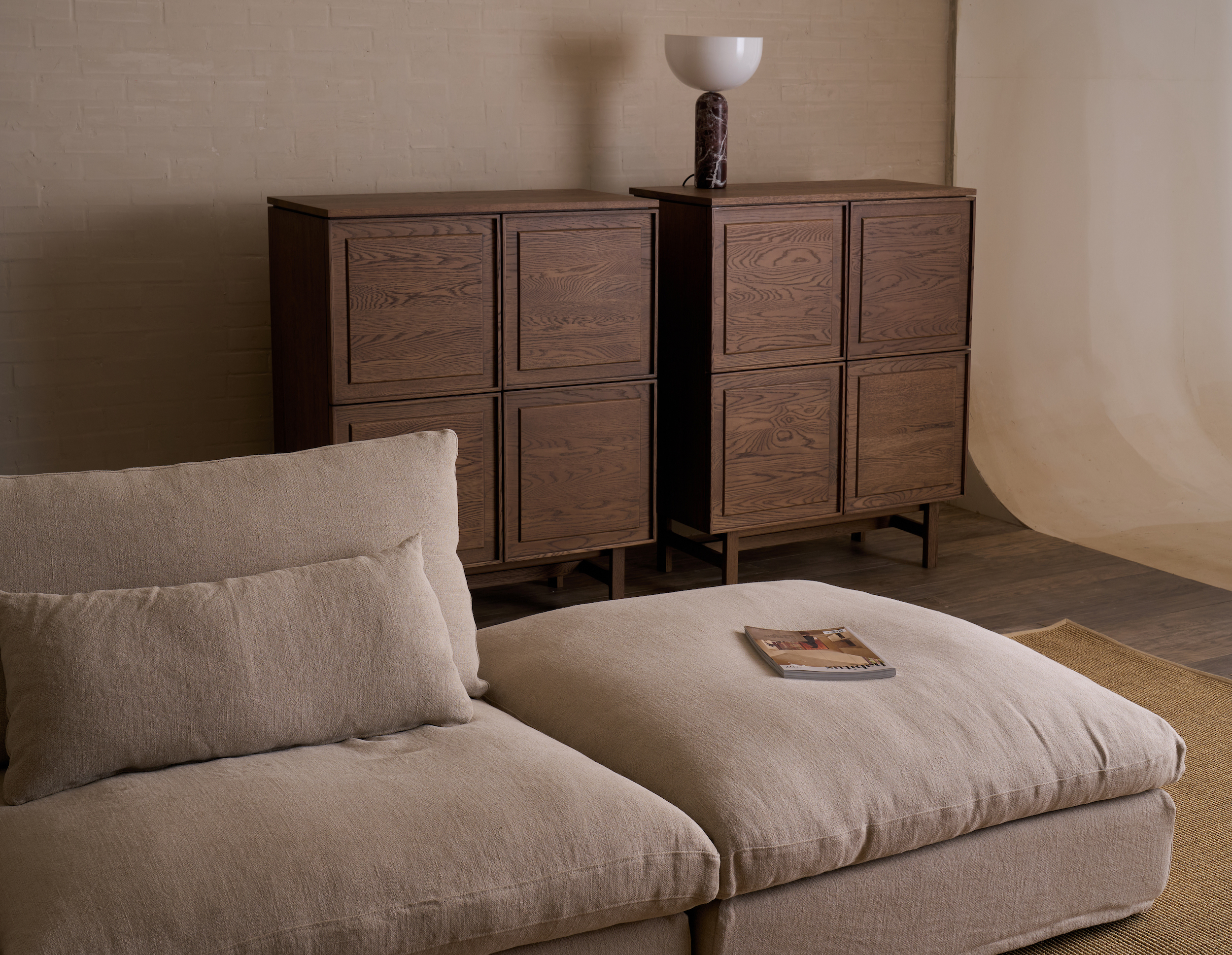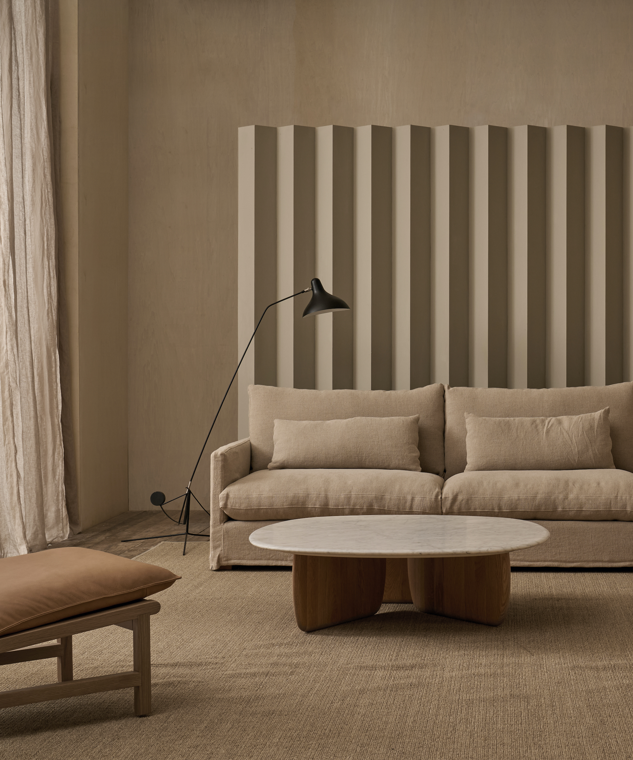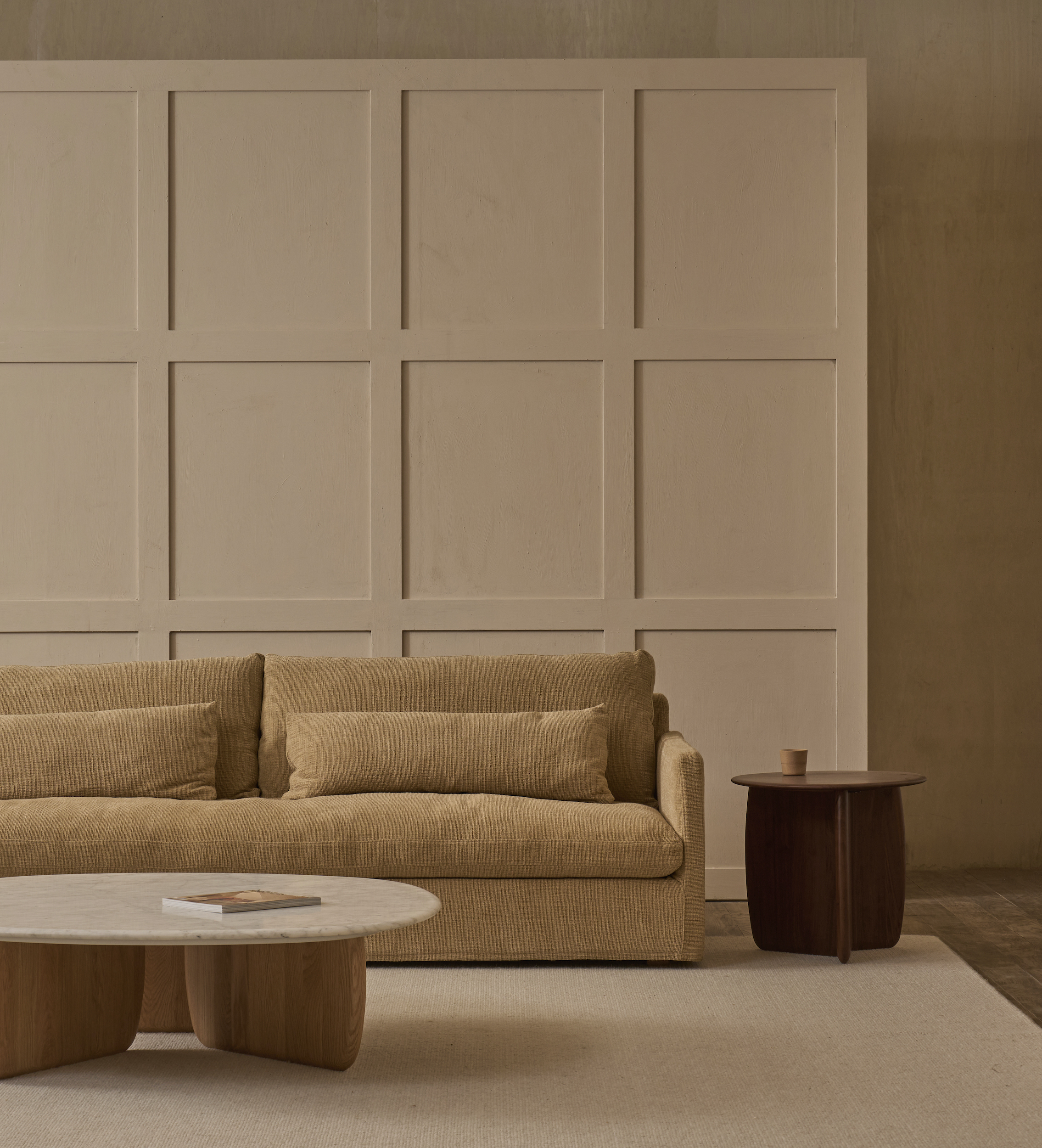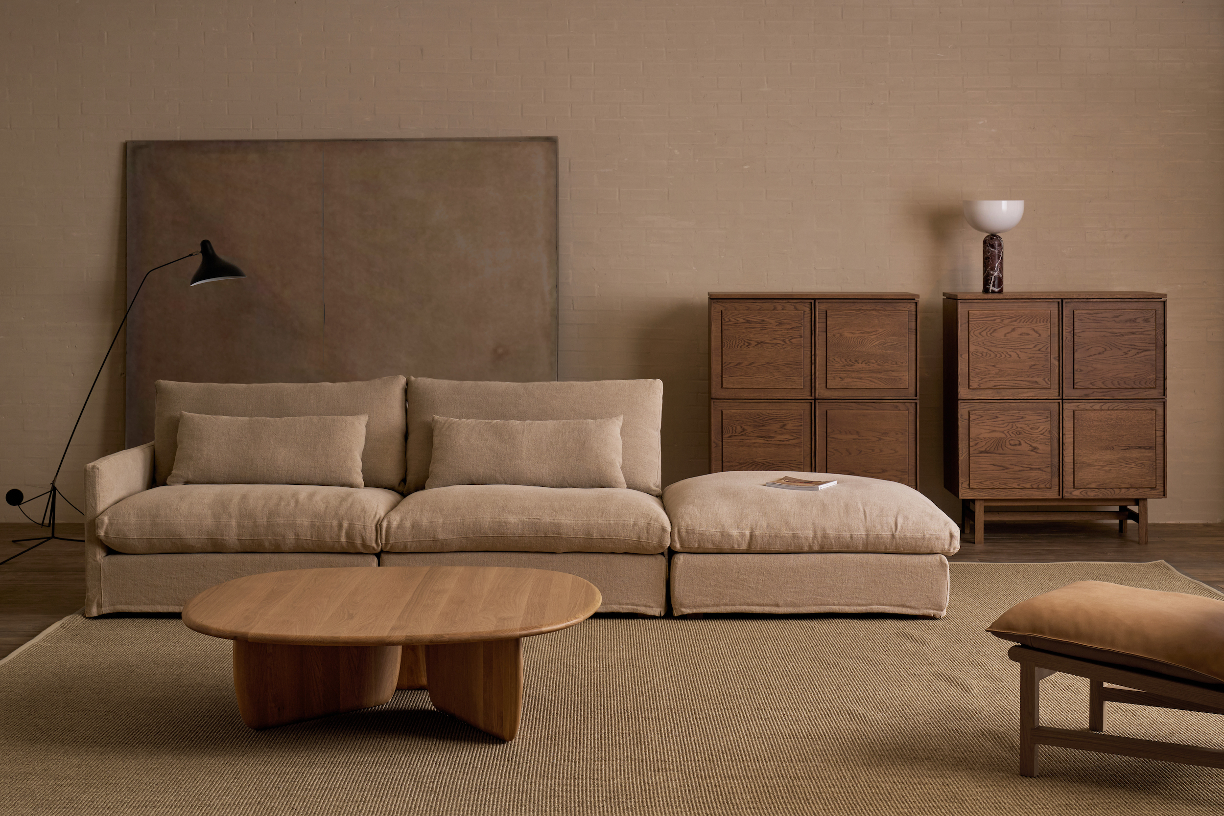 With its generous proportions and low, wide profile, it invites relaxed lounging while maintaining a clean Scandinavian aesthetic. It offers both support and sink-in softness combining ultimate comfort with flexibility.