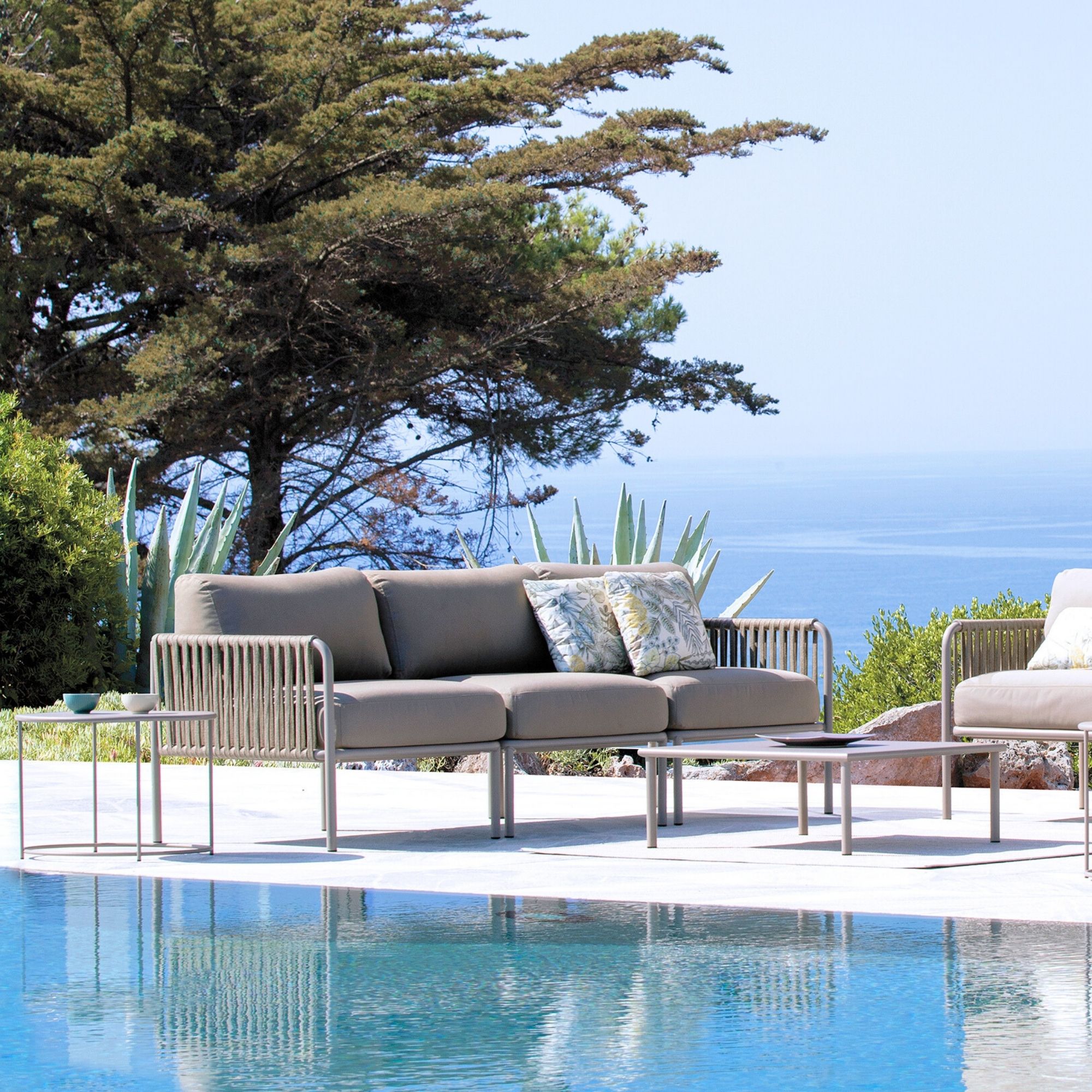 The Key West Modular Sofa by Vermobil combines modern versatility with timeless outdoor comfort. Crafted with a powder coated metal frame, each module features plush seat and back cushions with removable covers for easy cleaning. The system includes both single and corner modules, allowing for flexible configurations to suit any outdoor living or hospitality space.