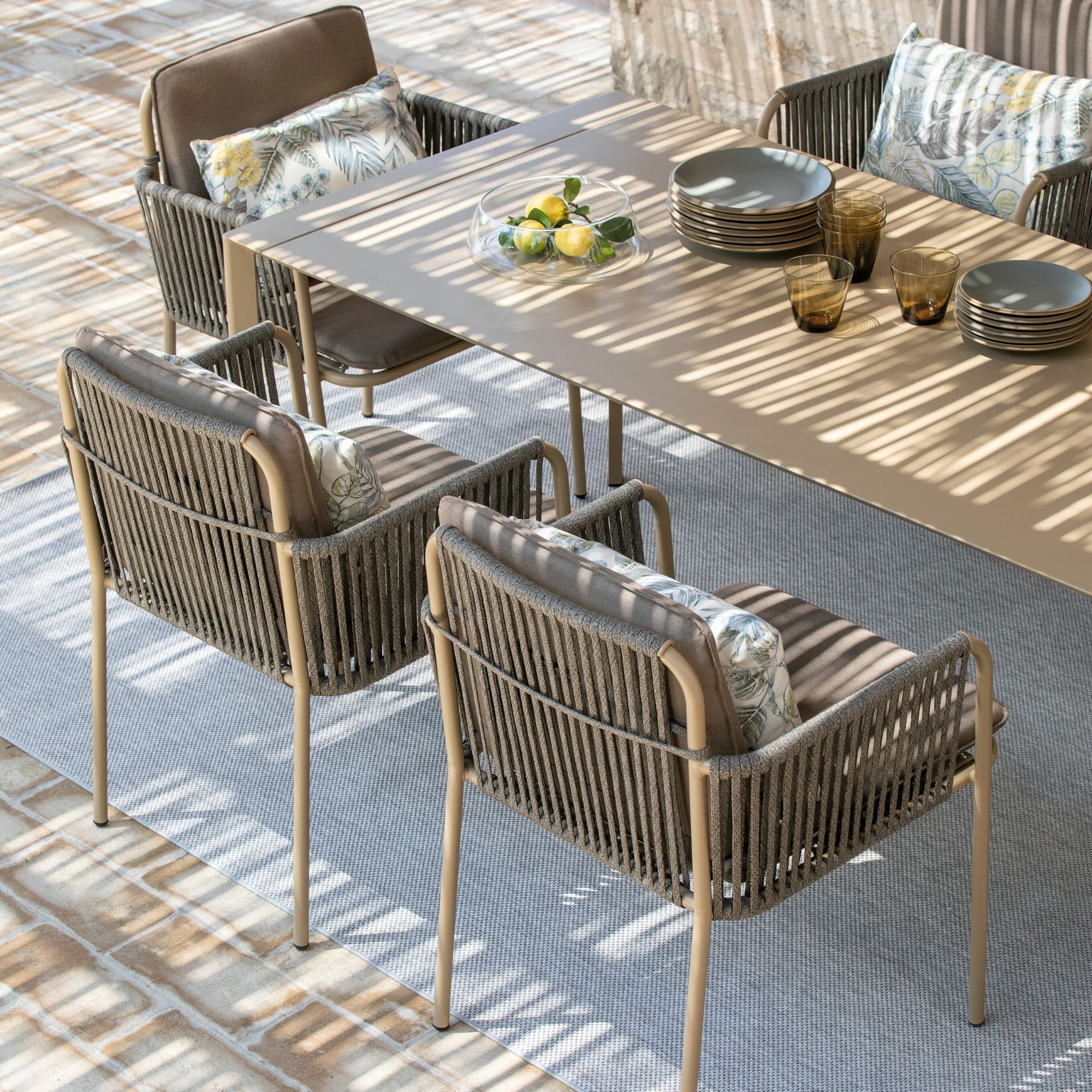 The Key West XL Armchair by Vermobil is a generously proportioned outdoor dining armchair offering exceptional comfort and a refined contemporary look. Built with a strong powder coated metal frame and a wider seating profile, it includes a padded seat cushion with a removable cover for easy care. Rope detailing along the back and sides adds texture and visual interest, making it suitable for residential and commercial outdoor environments.