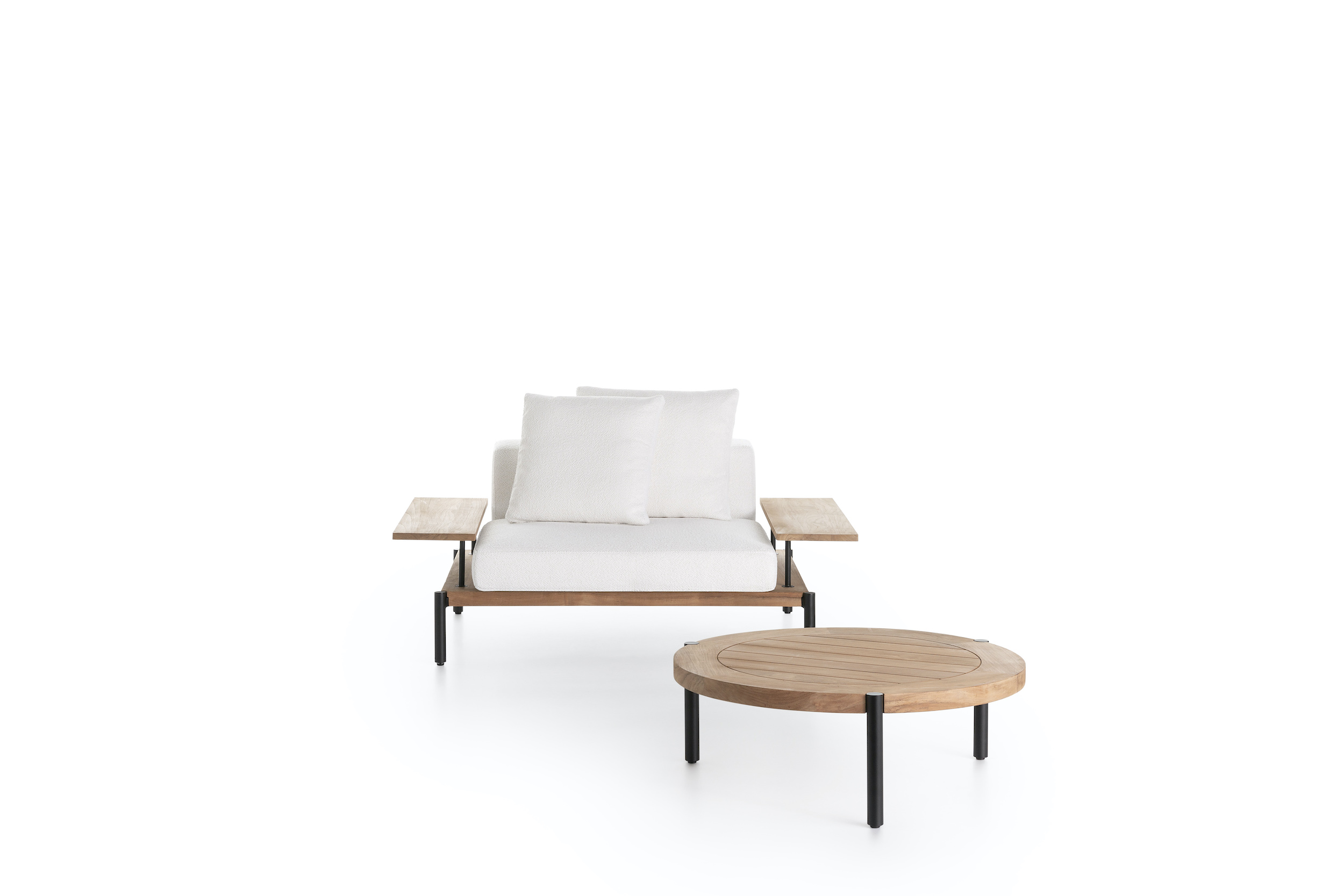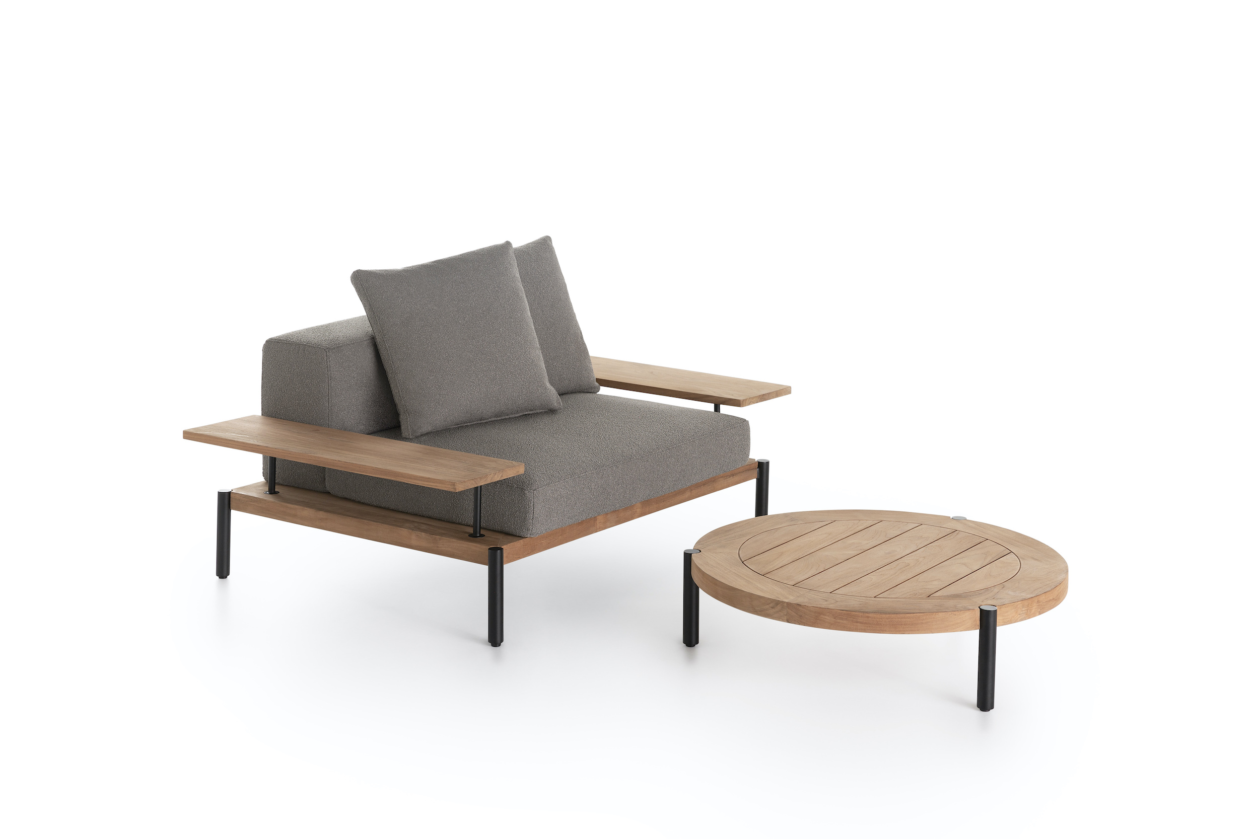 Thanks to its timeless design and its availability in a wide range of fabrics – this outdoor lounge chair easily integrates into any environment.