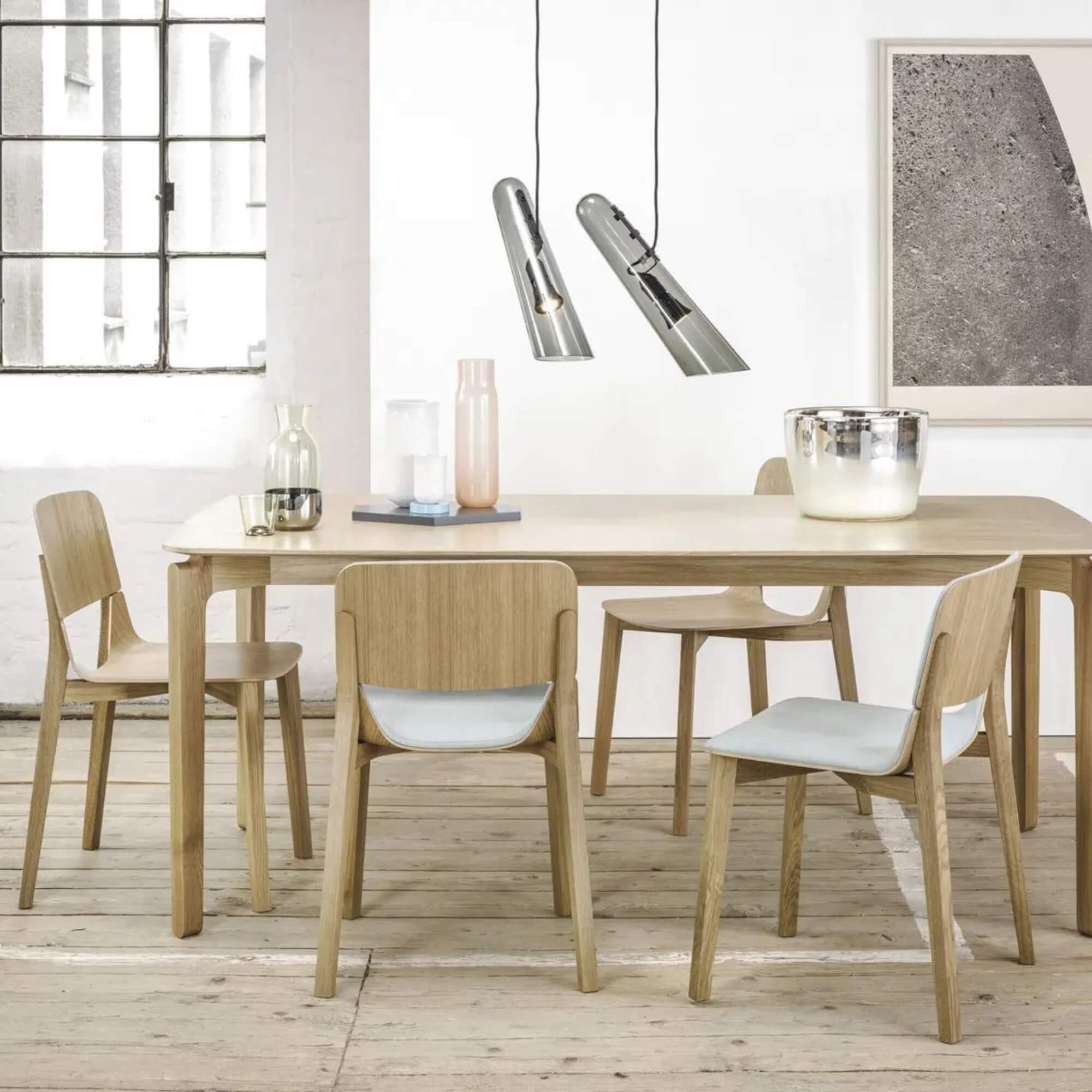 Apart from the veneer seat made of beech or oak, an upholstered version is also available.