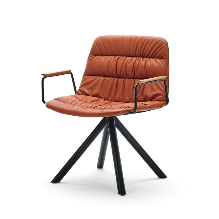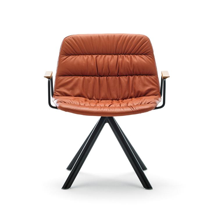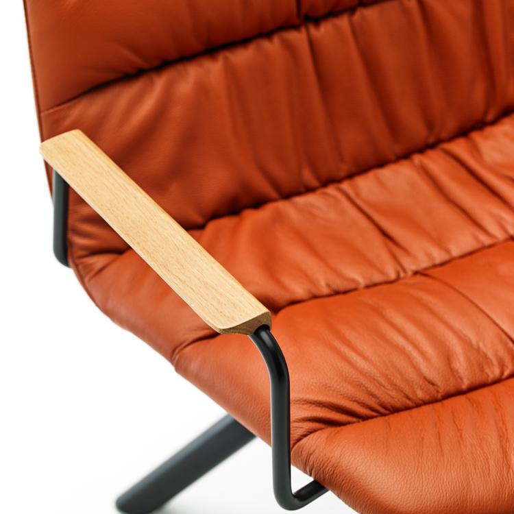 Maarten Lounge by Viccarbe is crafted from injected polypropylene with a choice of smooth or soft upholstery, combining tactile comfort with durable resilience. Its refined form is complemented by a selection of powder-coated steel or solid oak bases, offering versatility across residential and commercial interiors.