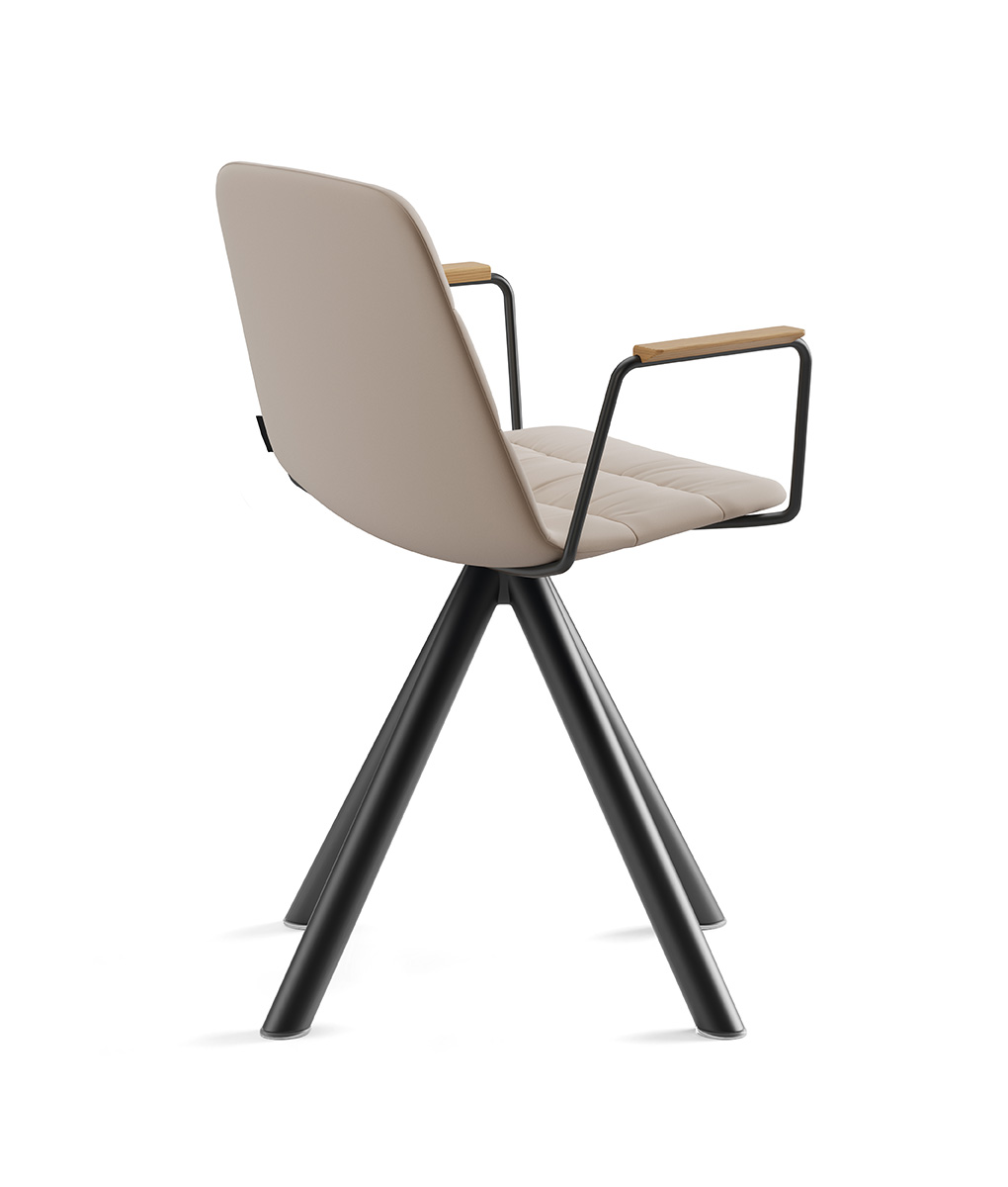 Multiple base types – 4 leg in metal or timber, 4-star swivel base, 5-star caster base, 4-star flat swivel, 4-star pyramid base in metal or timber, or 4-star pyramid casters with fixed or swivel base options. Solid oak wood, Powder-coated steel options