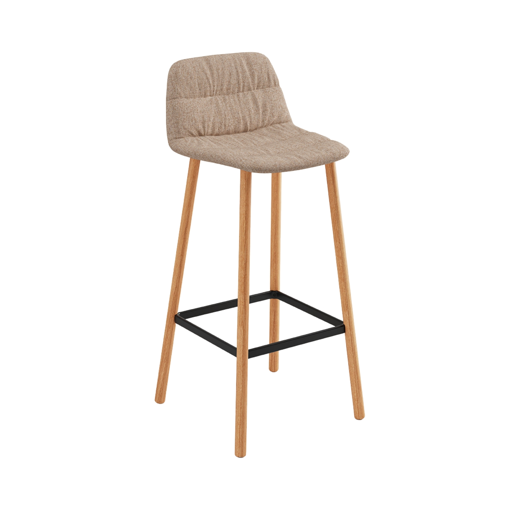 Maarten Upholstered Stool by Viccarbe is crafted with a refined polypropylene shell enveloped in expanded polyurethane foam, offering a choice between smooth or soft upholstery finishes. Its design balances comfort and durability through a slender yet robust base, inspired by contemporary architectural forms and versatile for various interiors.