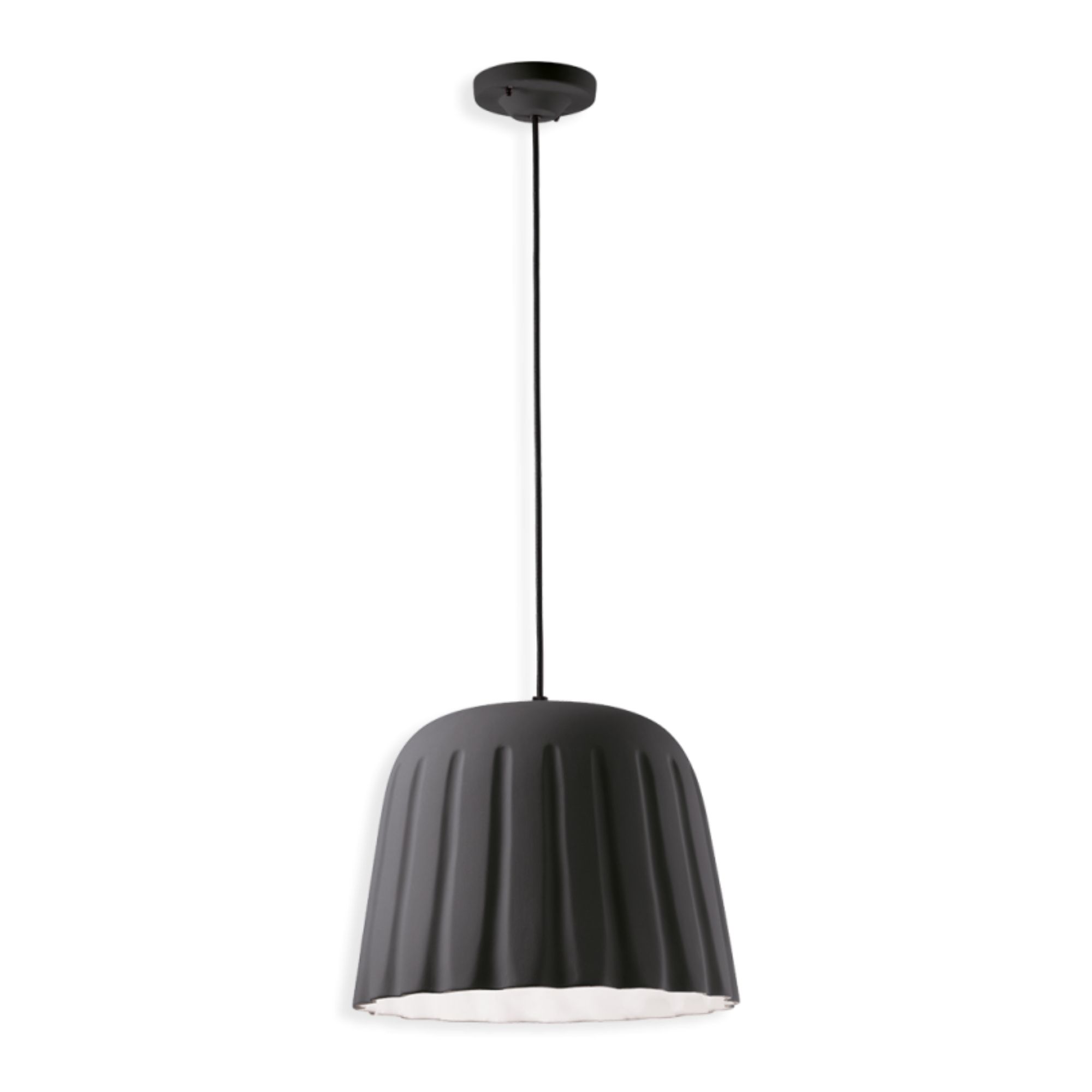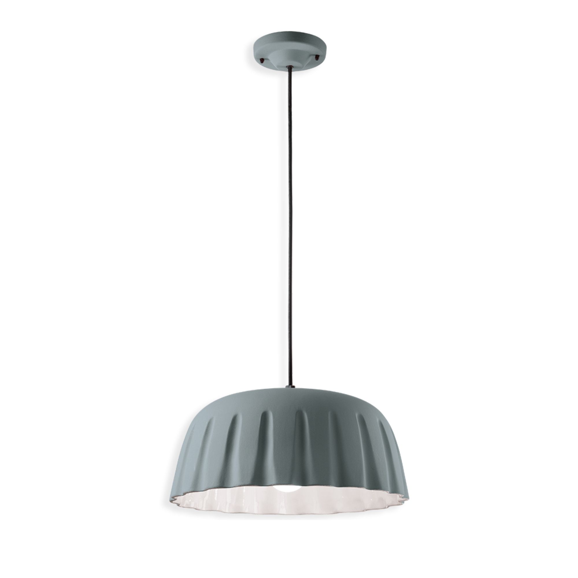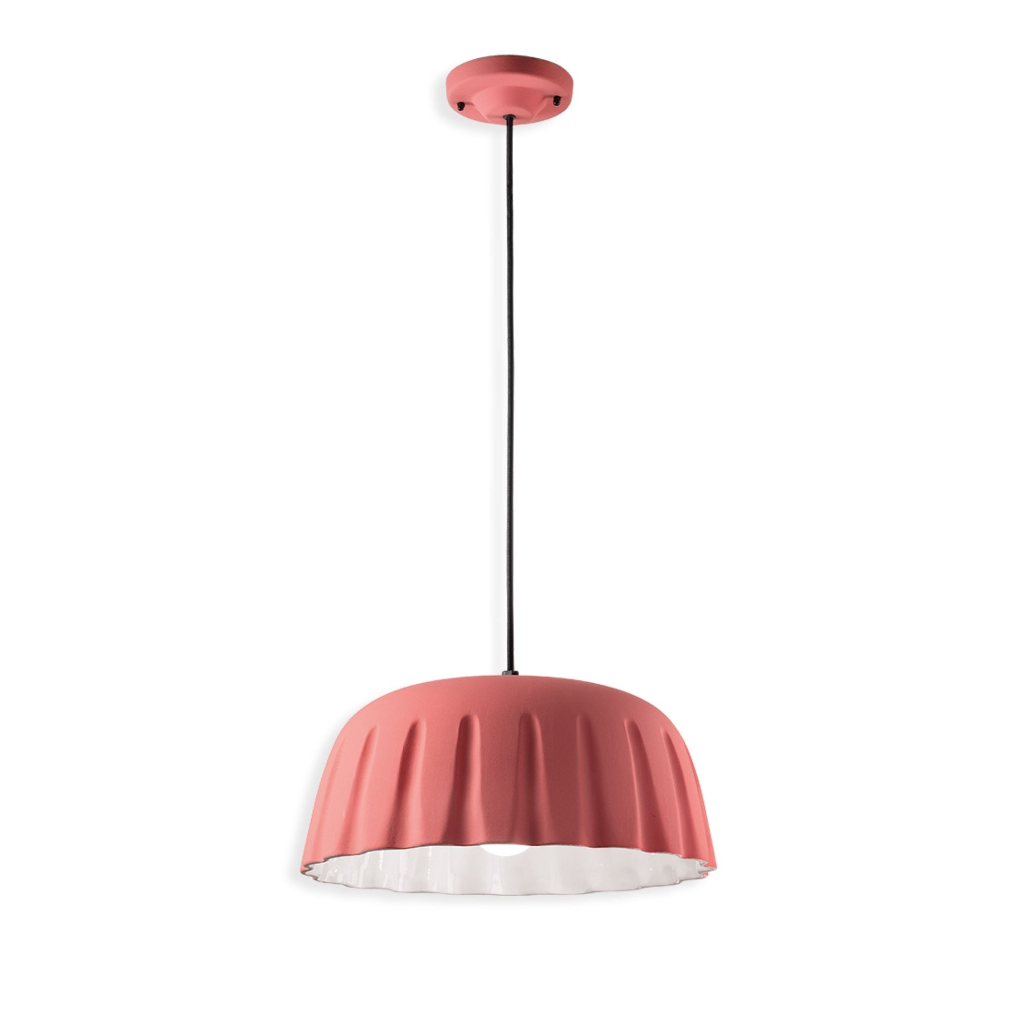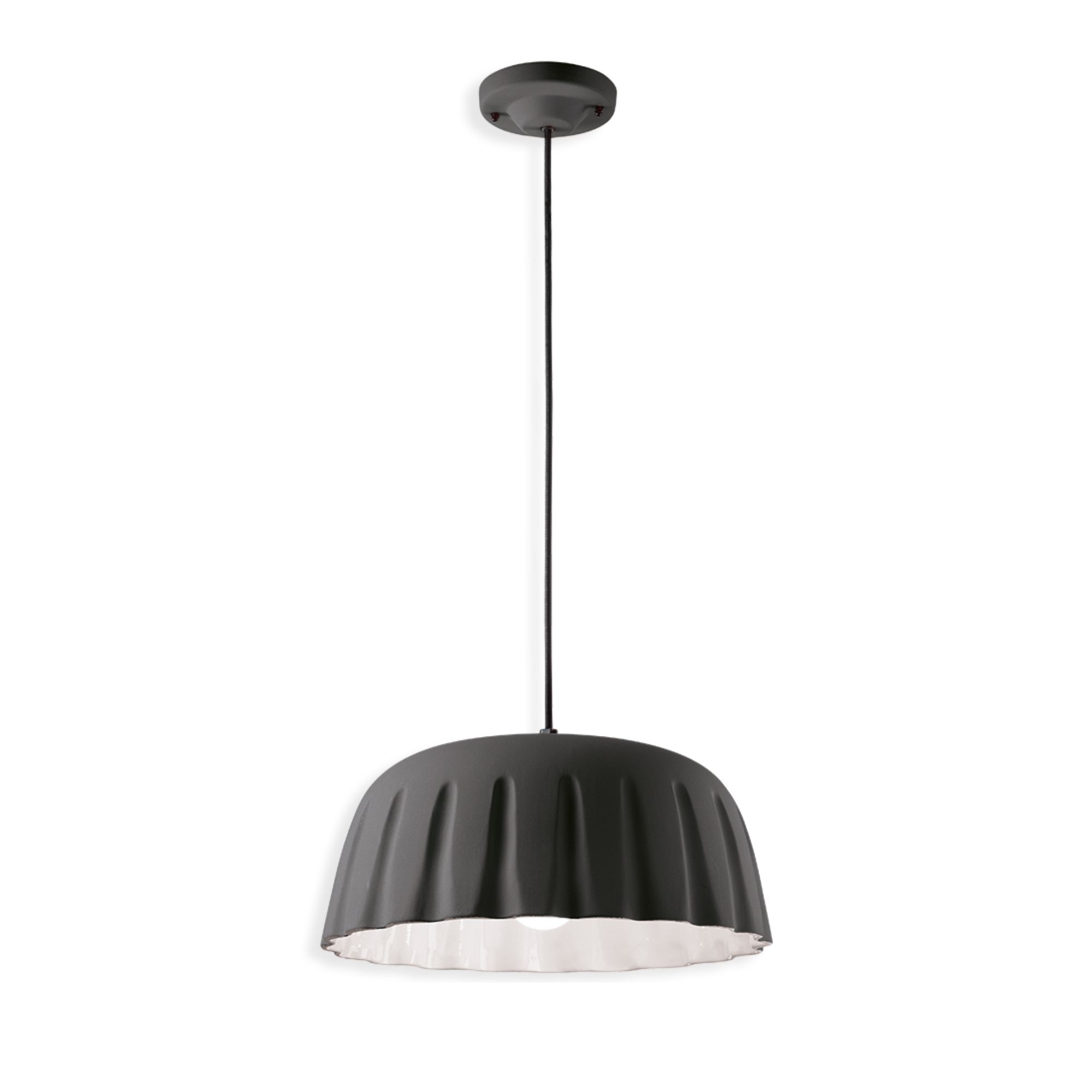 Madame Grès Pendant by Ferroluce draws inspiration from haute couture, with ceramic diffusers that resemble pleated garments rather than rigid elements. Vertical inlays ripple along the surface, enhanced by engobe finishes that soften contours and add a silky texture. The diffuser opens around the light source to cast a wide, even beam, blending elegance with functionality.