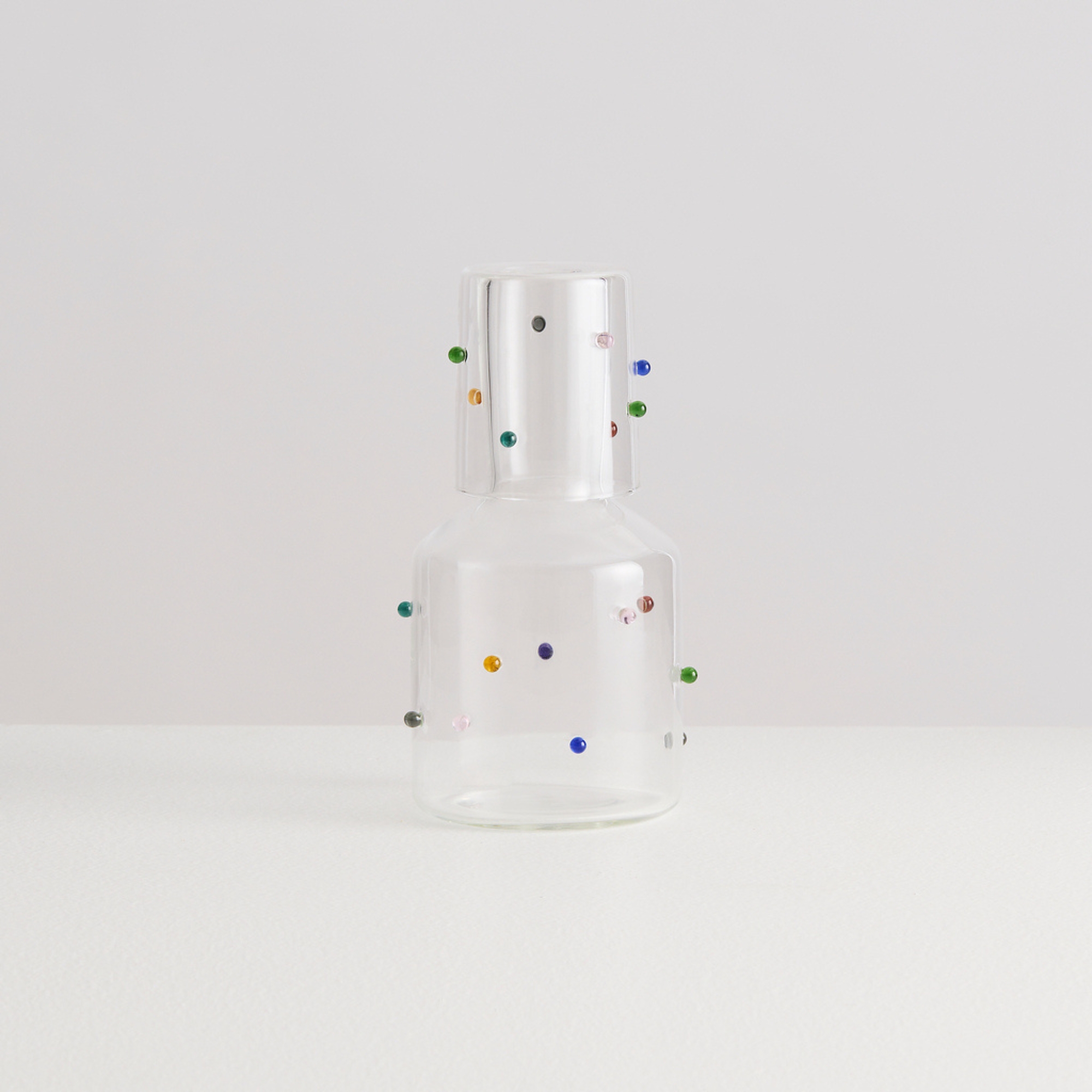 Madame Pomponette by Maison Balzac is the queen of all carafes: a classic silhouette adorned with their signature colourful glass bubbles. Expertly hand-blown from borosilicate glass, it transforms the simple act of drinking water into an extraordinary pleasure.