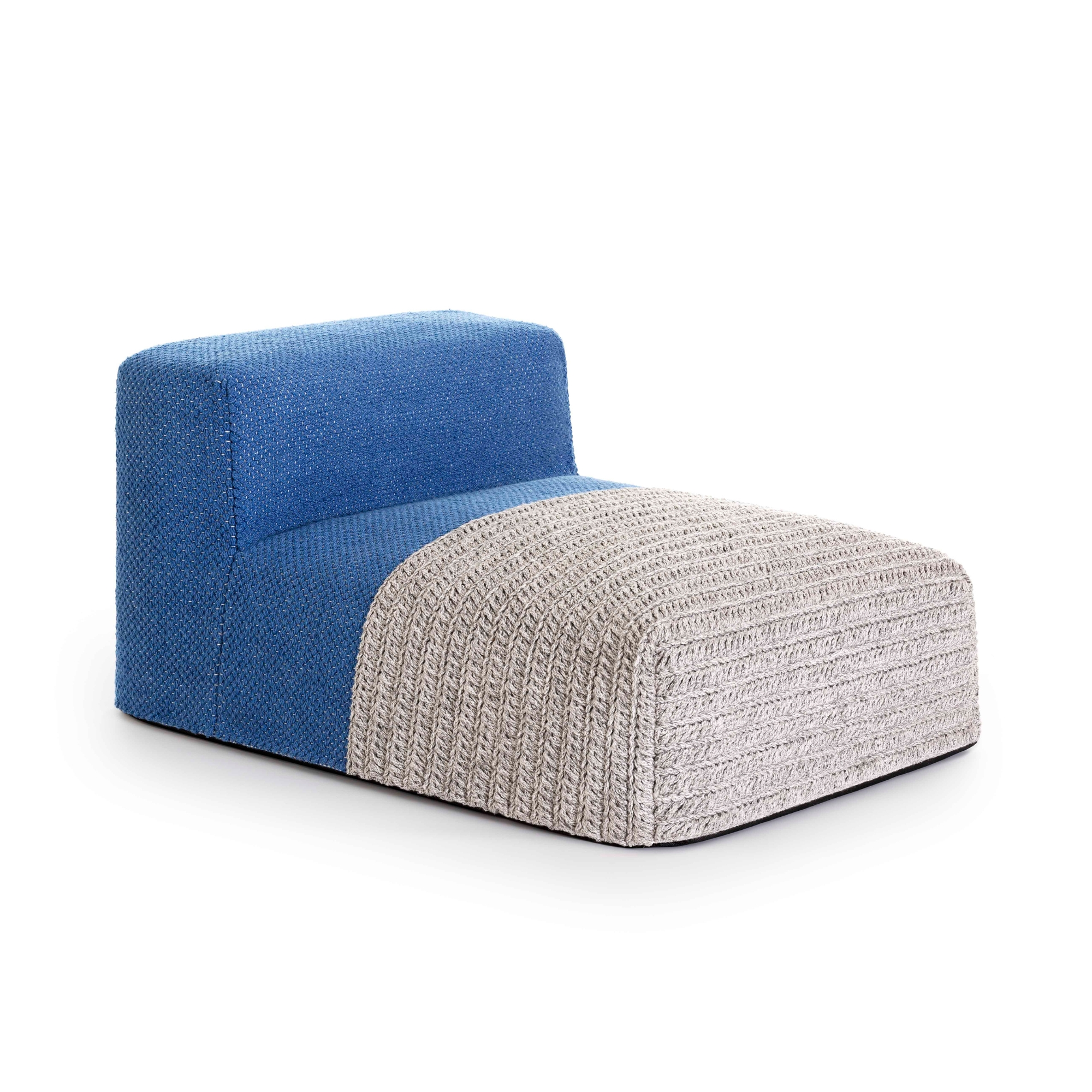 Mangas Outdoor lounge by GAN reflects volume, texture and comfort with materials specially designed for outdoor use, including rugs and covers made by hand with 100% recycled PET.