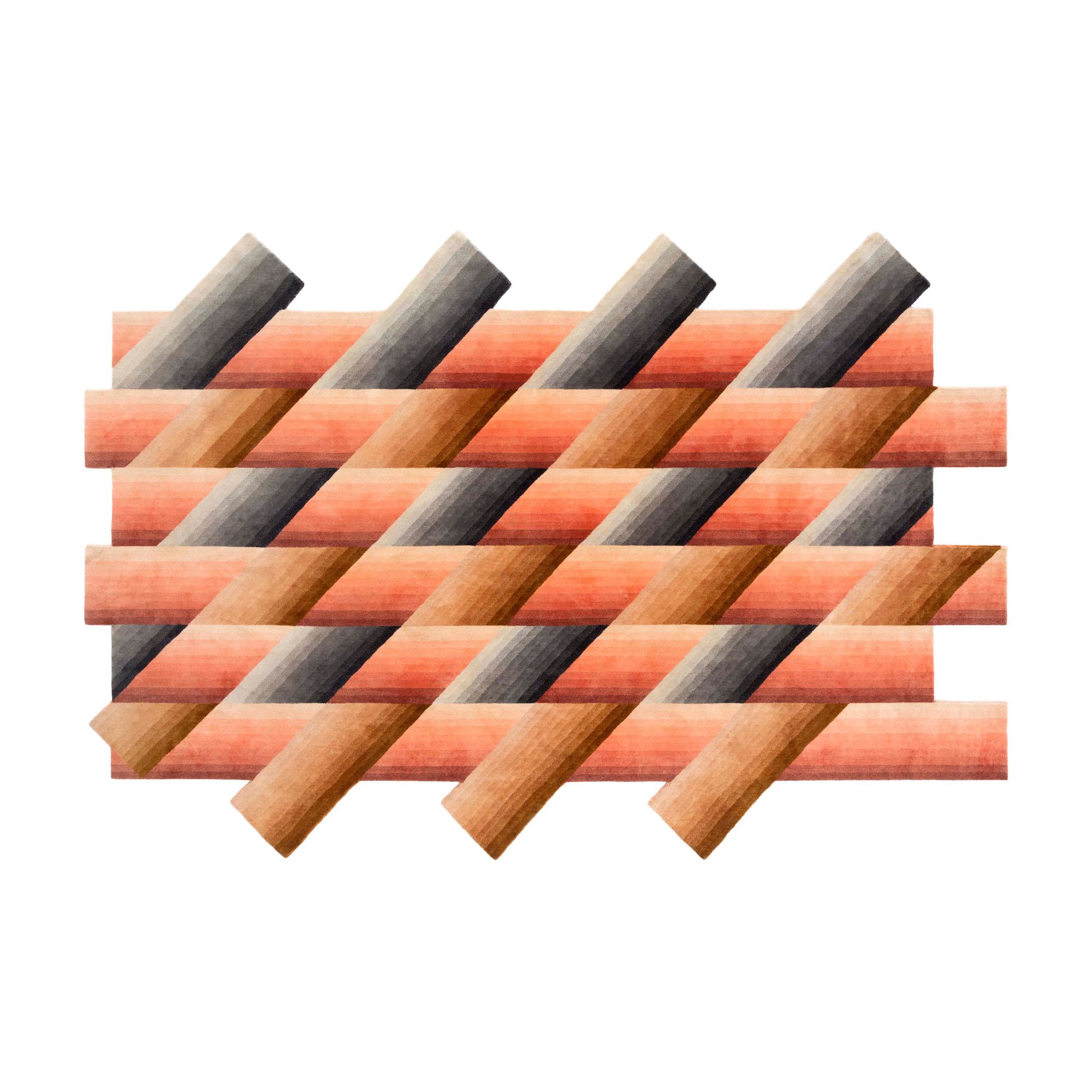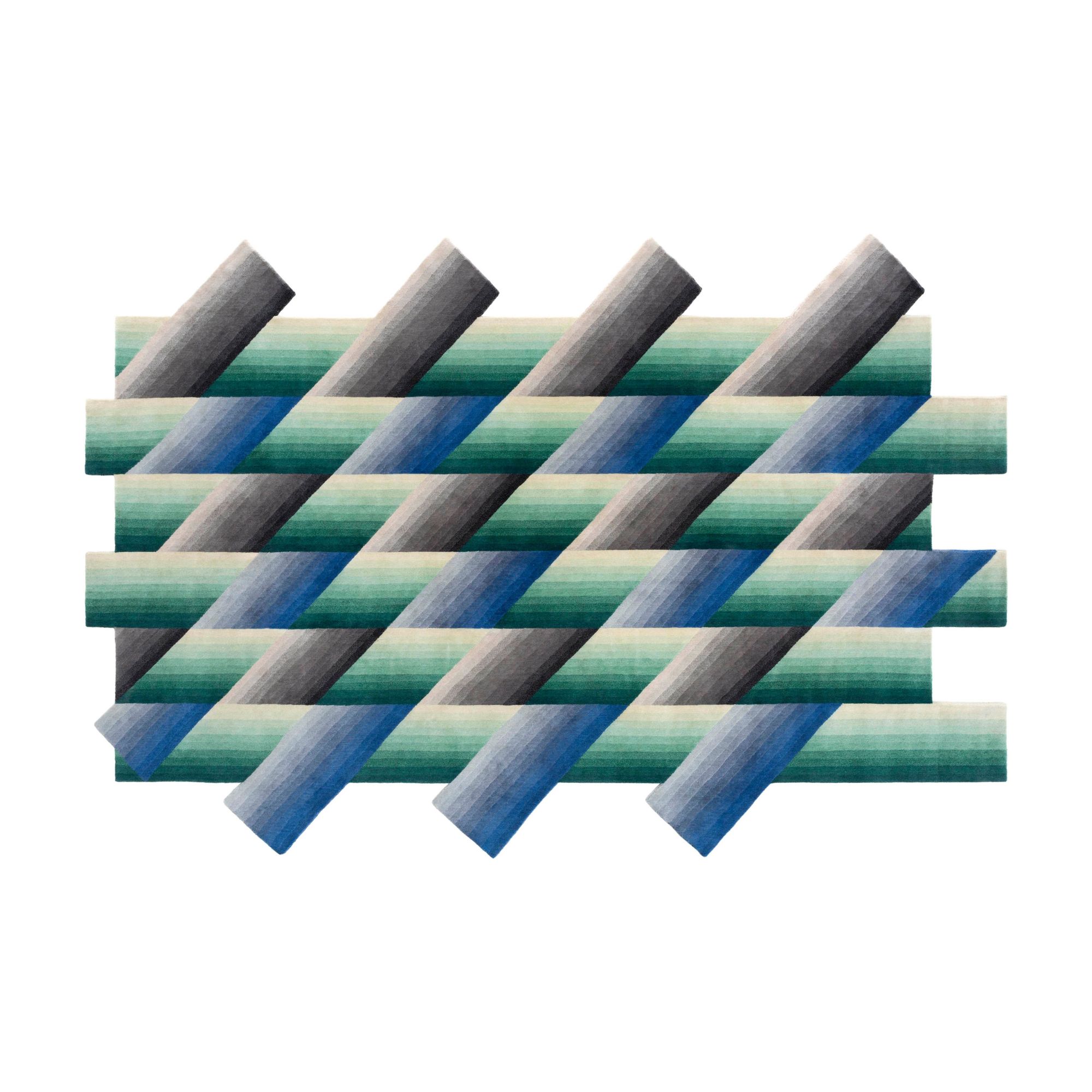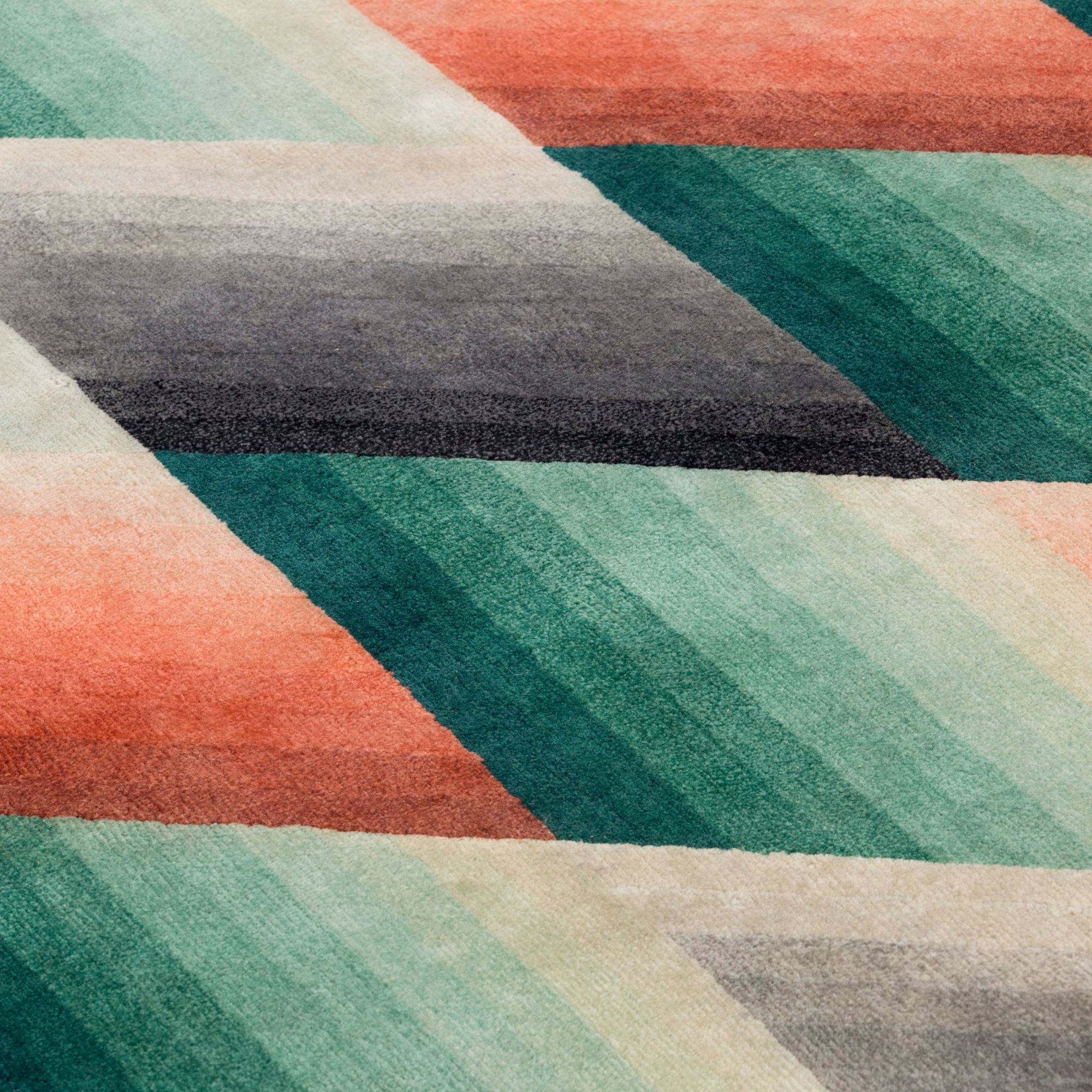 The alternation of colours and the different orientation of the gradients generate an attractive visual game, all made with New Zealand wool.