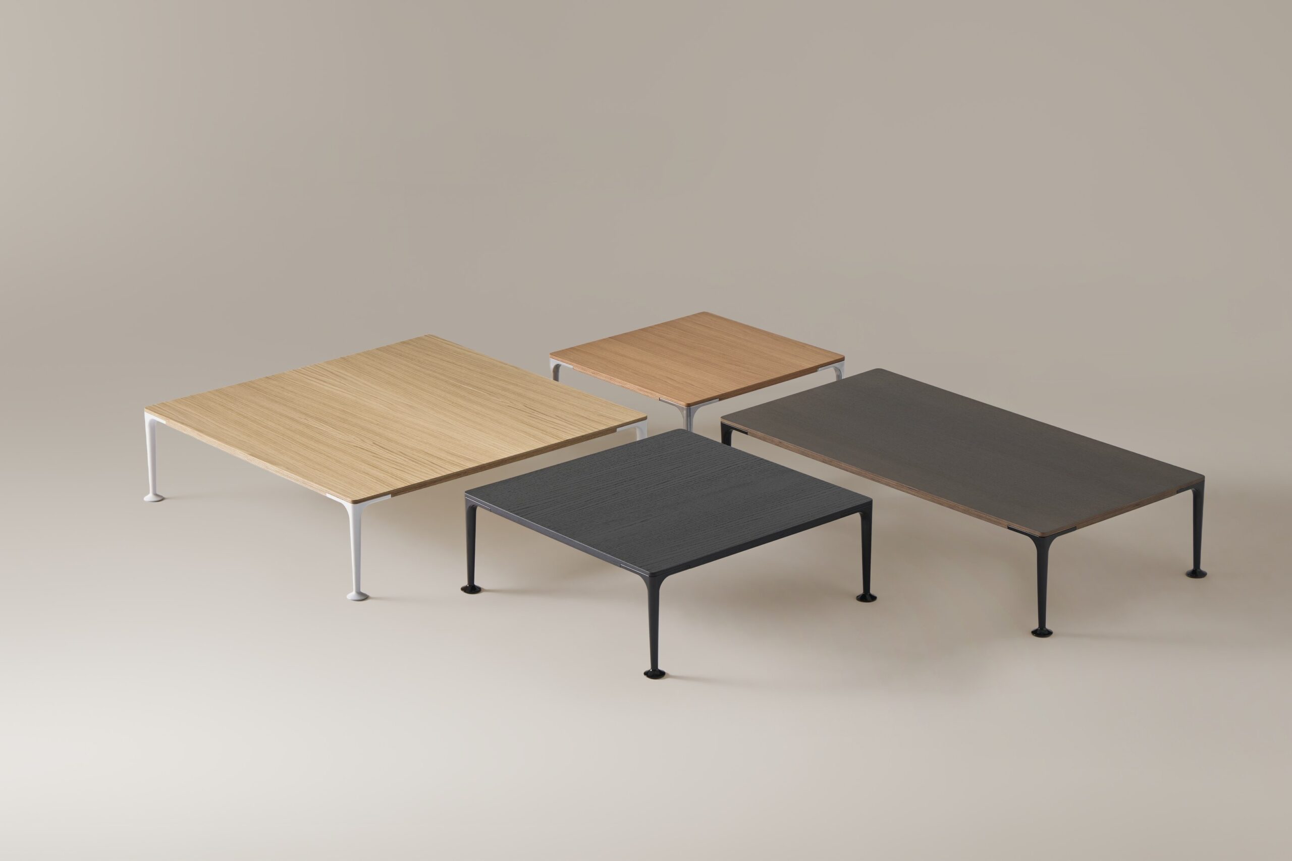 Missiva Coffee Table by Viccarbe is a refined low table that balances the natural warmth of stained oak plywood with the sleekness of aluminium legs. Its minimalist form and precise proportions create a subtle architectural presence, ideal for sophisticated living environments.